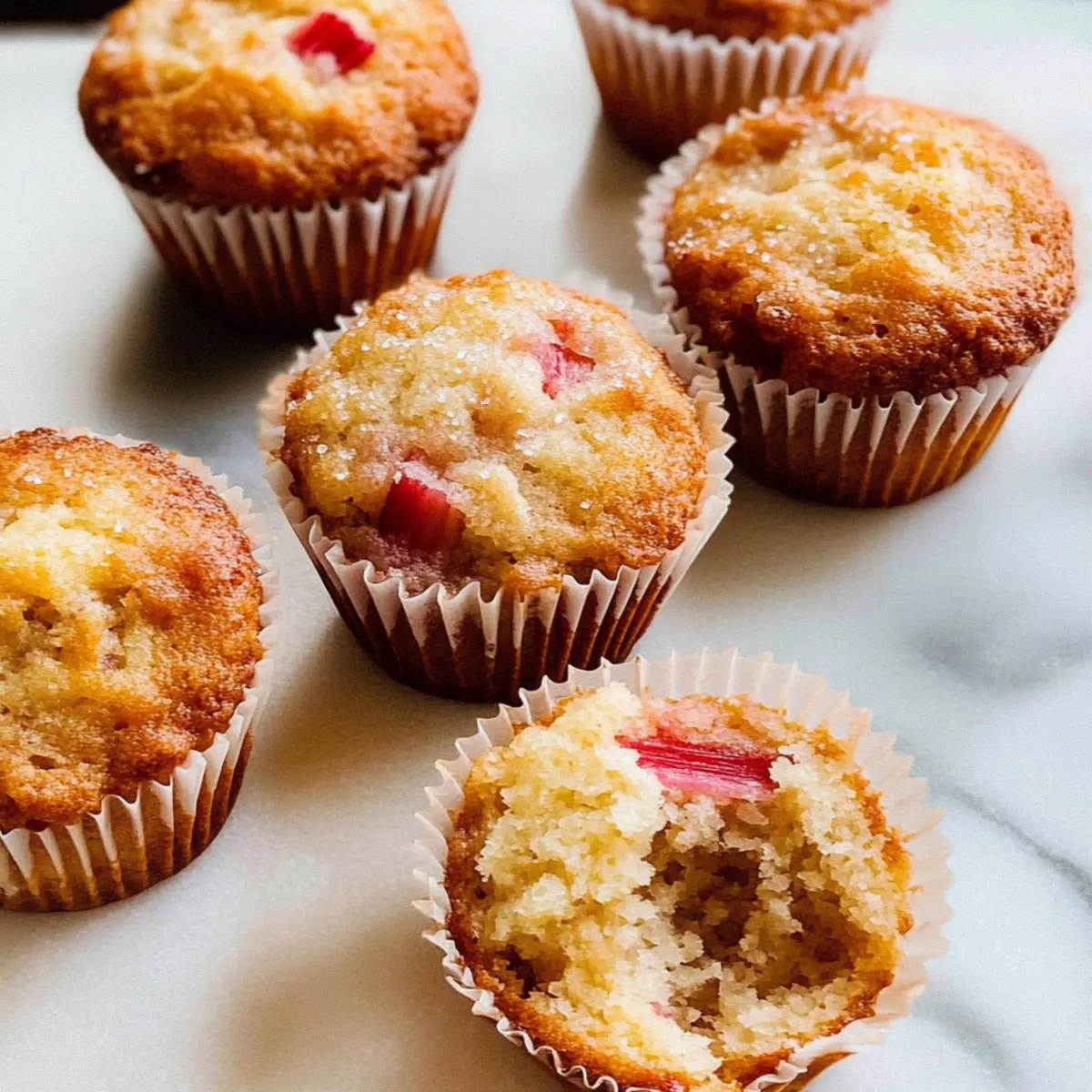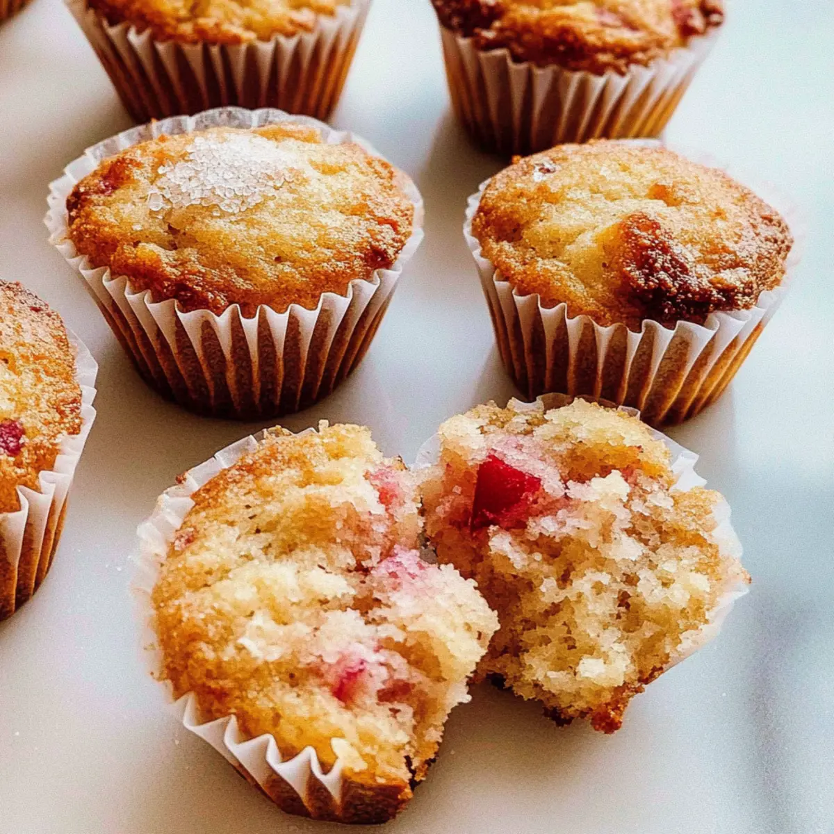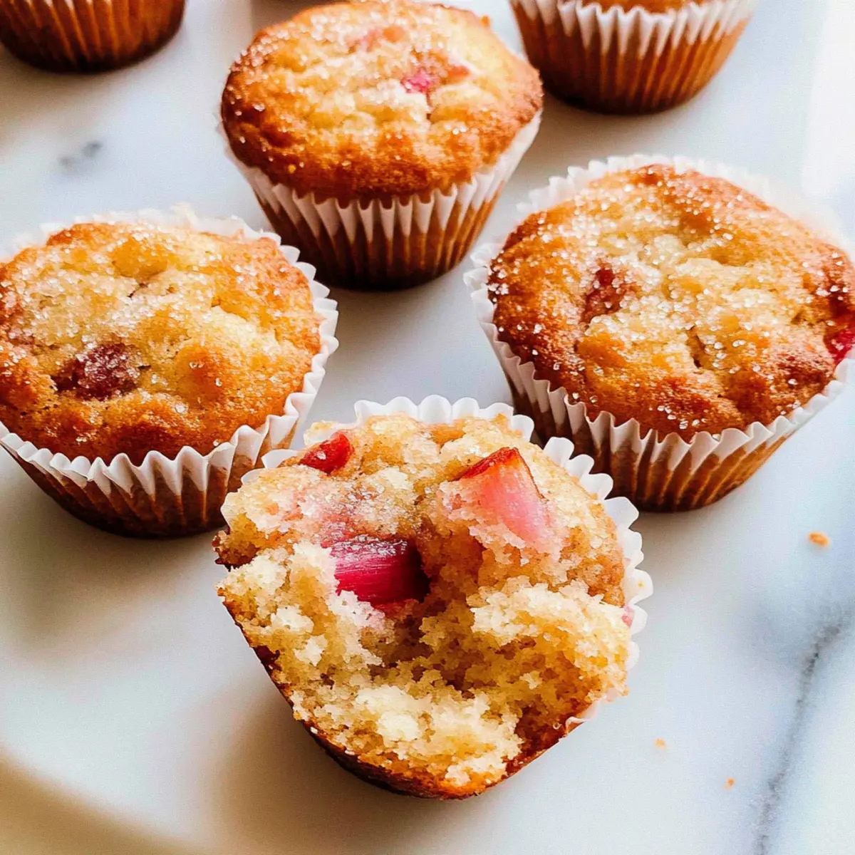 Jump to Recipe Print RecipeAs I strolled through the local farmer’s market, the vibrant colors and aromas beckoned me, but it was the tangy scent of fresh rhubarb that truly stole my heart. That encounter inspired me to whip up these Healthy Greek Yogurt Rhubarb Muffins, and let me tell you, they are every bit as delightful as they sound! Packed with 1½ cups of creamy Greek yogurt, these muffins offer a fantastic protein boost, making them not just delicious but a wholesome breakfast option. Plus, they’re incredibly easy to prepare, perfect for a busy morning or a leisurely baking session. Whether you’re a lifelong rhubarb fan or just curious about incorporating a new twist into your breakfasts, these muffins are sure to satisfy your cravings. Ready to indulge in a delightful and nutritious treat? Let’s dive into this recipe! Why Choose Rhubarb Muffins with Greek Yogurt? Nutritious and Delicious: These muffins strike the perfect balance between health and flavor, thanks to the creamy Greek yogurt that provides a protein boost. Simple Preparation: Whipping up a batch requires minimal effort—ideal for busy mornings or spontaneous baking weekends. Unique Flavor: The tartness of rhubarb combined with just the right amount of sweetness creates a delightful taste sensation that sets these muffins apart. Versatile Options: Let your creativity flow! Consider adding spices or even swapping in strawberries to customize your muffins. Ideal for Any Meal: Serve them as a wholesome breakfast, a satisfying snack, or even a guilt-free dessert that your family will love! If you enjoy rhubarb, you might also want to try out my Rustic Rhubarb Cinnamon pie for a delightful twist! Rhubarb Muffins with Greek Yogurt Ingredients Transform your breakfast game with these delightful Rhubarb Muffins with Greek Yogurt! For the Muffin Batter All-Purpose Flour – Provides structure; substitute with whole wheat for extra fiber. Granulated Sugar – Adds a touch of sweetness; consider using brown sugar for a richer flavor. Baking Soda – Essential for the muffins to rise; no substitutions recommended. Baking Powder – Another leavening agent; make sure it’s fresh for optimal results. Sea Salt – Enhances overall flavor; fine sea salt integrates well into the batter. Full-Fat Greek Yogurt – Adds moisture and protein; plain kefir can also be a good substitute. Avocado Oil – Delivers healthy fats and moisture; can be replaced with canola or melted coconut oil. Milk – Provides additional moisture; oat milk is a great dairy-free option. Large Egg – Binds ingredients and adds richness; for a vegan option, use a flax egg. Vanilla Extract – Brings depth of flavor; almond extract can be added for an extra twist. Chopped Rhubarb – The star ingredient that offers a tangy punch; feel free to use fresh or frozen. For the Topping Raw Demerara Sugar (optional) – Sprinkled on top for a delightful sweet crunch. Now that you have all the ingredients ready, get excited to whip up a batch of these luscious Rhubarb Muffins with Greek Yogurt for breakfast bliss! Step‑by‑Step Instructions for Healthy Rhubarb Muffins with Greek Yogurt Step 1: Preheat the Oven Begin by preheating your oven to 375°F (190°C). While it warms up, line a 12-cup muffin pan with paper liners to prevent sticking and make for easy cleanup later. This initial step sets the stage for perfectly baked Healthy Rhubarb Muffins with Greek Yogurt that will rise beautifully as they cook. Step 2: Combine Dry Ingredients In a large mixing bowl, whisk together the all-purpose flour, granulated sugar, baking soda, baking powder, and sea salt. Ensure that these dry ingredients are well combined, as this will help your muffins achieve a light and airy texture. The mixture should appear uniform without any clumps, ready for the next stage. Step 3: Mix Wet Ingredients In a separate bowl, take the creamy Greek yogurt, avocado oil, milk, egg, vanilla extract, and any optional almond extract, whisking them together until smooth and consistent. This mixture should have a silky texture, adding moisture and richness to your Healthy Rhubarb Muffins once incorporated with the dry ingredients. Step 4: Combine Wet and Dry Ingredients Gently add the wet mixture to the bowl of dry ingredients. Using a spatula, fold the batters together, taking care not to overmix. Aim to combine until you see just a few streaks of flour remaining, achieving about 80% integration. This method will ensure fluffy muffins rather than dense ones. Step 5: Incorporate the Rhubarb Next, carefully fold in the chopped rhubarb, which is the star of these muffins! If you’d like, you can reserve a bit of rhubarb to sprinkle on top before baking for an extra burst of flavor and visual appeal. Handle the mixture gently to keep the batter light and fluffy. Step 6: Fill the Muffin Tin Spoon the muffin batter into the prepared muffin tin, filling each liner about three-quarters of the way full. Top each muffin with the reserved rhubarb and, if desired, sprinkle raw demerara sugar on top for added sweetness and crunch. This will give your Healthy Rhubarb Muffins a delightful finishing touch. Step 7: Bake the Muffins Place the muffin tin in the preheated oven and bake for 18 to 22 minutes. Keep an eye out for doneness: the tops should be golden brown and spring back when lightly pressed. This visual cue will help ensure that your Healthy Rhubarb Muffins with Greek Yogurt turn out perfectly every time. Step 8: Cool and Serve Once baked, remove the muffins from the oven and let them cool in the tin for about 5 minutes. Then transfer them to a wire rack to cool completely. This step allows them to set and makes for easier serving. Enjoy these scrumptious muffins warm or at room temperature, perfect for a delightful breakfast treat! Rhubarb Muffins with Greek Yogurt Variations Feel free to mix and match these variations to craft your perfect batch of muffins! Strawberry Twist: Swap half of the rhubar