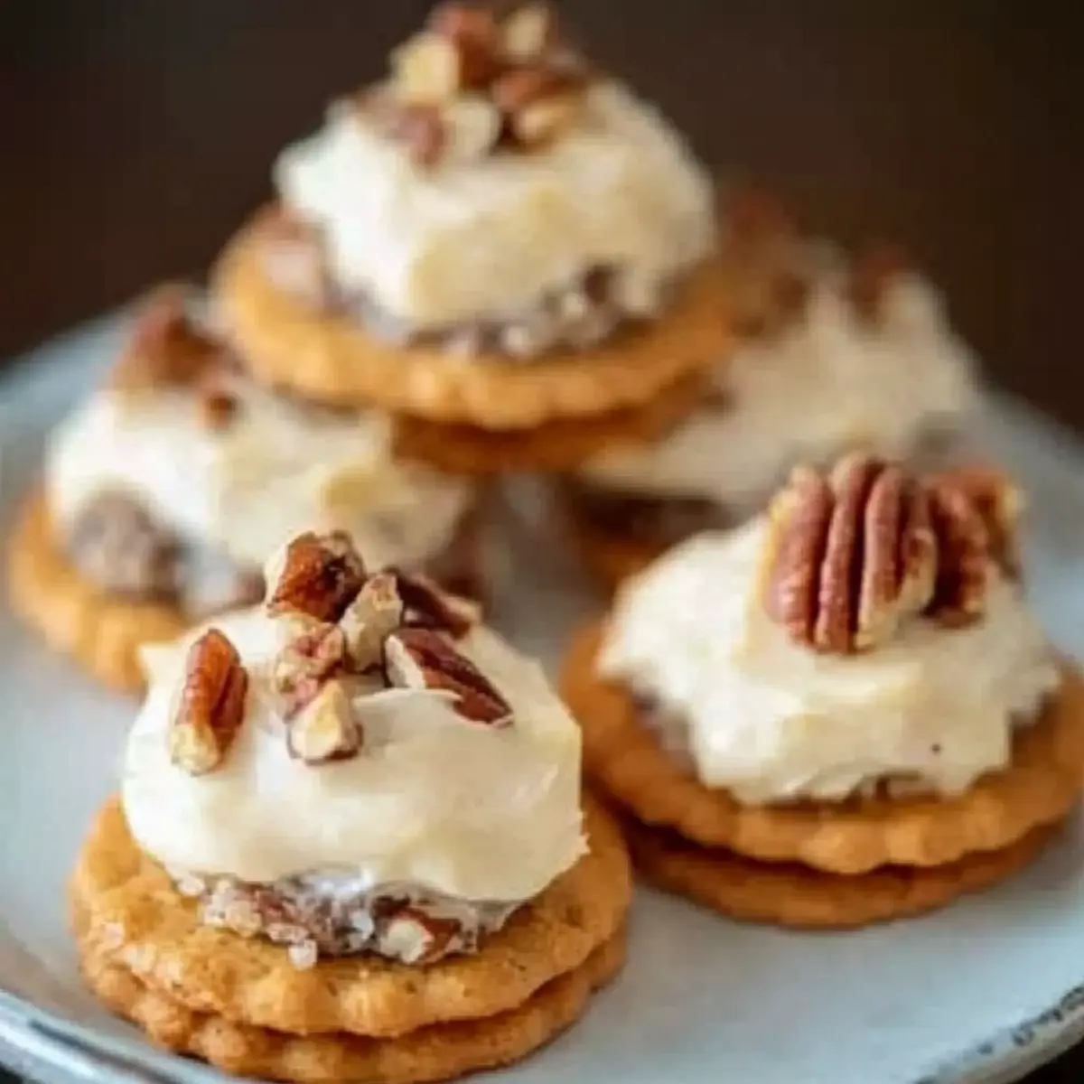Jump to Recipe Print RecipeIn the rush of everyday life, there’s something incredibly satisfying about creating a dessert that feels both familiar and unique. Enter my No-Bake Ritz Cracker Cookies! This easy treat combines the satisfying crunch of Ritz crackers with a luscious, creamy frosting, making it the perfect no-bake dessert for any occasion. Not only are these cookies a delightful addition to your next gathering, but they also offer a customizable canvas for your favorite mix-ins like pecans or dried fruits, allowing you to tailor each batch to your taste. Whether you’re looking for a quick indulgence or a festive holiday delight, these Ritz Cracker Cookies will have everyone coming back for seconds. What flavors will you choose to make them your own? Why are Ritz Cracker Cookies a Must-Try? Irresistible Crunch: The combination of Ritz crackers and a creamy frosting creates a delightful contrast that keeps you reaching for more. No-Bake Convenience: Who doesn’t love an easy dessert? These no-bake cookies come together in no time, making them a quick solution for unexpected guests. Easily Customizable: Tailor this recipe to your taste by swapping in different nuts or dried fruits. With options like adding raisins or walnuts, you’ll create an entirely new flavor profile each time! Crowd-Pleaser: These cookies are not just a treat; they’re perfect for gatherings, parties, or even as a simple afternoon indulgence. Pair them with coffee or tea to impress your friends. Comforting Nostalgia: They evoke a sense of nostalgia that everyone can appreciate, making them a hit at family gatherings or holiday celebrations. Don’t miss out on these delicious Ritz Cracker Cookies that are sure to be a new favorite! Ritz Cracker Cookies Ingredients For the Base • Ritz Crackers – The star of the show, offering a satisfying crunch to these delightful cookies. Substitution: Try similar crackers for a different twist. • Chopped Pecans – Adds a wonderful nuttiness and extra texture. Substitution: Walnuts or almonds can be used for variation. • Dried Dates – Infuses natural sweetness and chewiness into each bite. Substitution: Raisins or cranberries also work beautifully for a unique flavor. • Sweetened Condensed Milk – A vital ingredient that serves as both a sweetener and binding agent. Note: For a dairy-free option, unsweetened condensed coconut milk may be used. For the Frosting • Cream Cheese – The creamy base for the frosting that makes these Ritz Cracker Cookies oh-so-delicious. Substitution: Use Neufchâtel cheese for a lower-fat version. • Butter – Ensures the frosting is rich and silky. Substitution: Margarine or vegan butter can help for a dairy-free alternative. • Vanilla Extract – Enhances the overall flavor profile. Optional: Almond extract can provide a delightful twist. • Powdered Sugar – Sweetens and thickens the frosting for that perfect consistency. Optional: For a healthier option, reduce the sugar or opt for a sugar substitute. Step‑by‑Step Instructions for Ritz Cracker Cookies Step 1: Prepare the Base Start by laying out a single layer of Ritz crackers on a large cookie sheet. Make sure they are evenly spaced to allow easy access when you add the toppings later. This base provides that perfect crunch, setting the stage for your Ritz Cracker Cookies. Step 2: Cook Toppings In a medium saucepan, combine chopped pecans, diced dried dates, and sweetened condensed milk. Set over medium heat and stir constantly for about 5 minutes, watching closely as the mixture thickens. You’ll know it’s ready when it starts to pull away from the sides of the pan and resembles a thick, sticky paste. Step 3: Spread Mixture Once thickened, quickly remove the pan from heat. Using a spoon or spatula, generously spread the pecan-date mixture over each Ritz cracker. Ensure that they are fully covered for optimal flavor. Allow the cookies to cool slightly at room temperature, giving the mixture a chance to set before frosting. Step 4: Make Frosting In a mixing bowl, combine softened cream cheese, room temperature butter, vanilla extract, and powdered sugar. Using an electric mixer, beat the ingredients on medium speed for 2-3 minutes until smooth and creamy. The frosting should be velvety and spreadable, perfect for your Ritz Cracker Cookies. Step 5: Frost Cookies Take the cooled Ritz cracker base with toppings and spread a generous layer of frosting over each one. Smooth it out evenly to create a deliciously creamy topping. Allow the frosted cookies to set for about 15 minutes at room temperature or chill in the refrigerator for a firmer consistency before serving. What to Serve with No-Bake Ritz Cracker Cookies? These playful no-bake treats transform any gathering into a memorable occasion, inviting you to explore delightful pairings. Coffee: A warm cup of coffee balances the sweetness, making your cookies even more indulgent during a cozy gathering. Hot Tea: Complement the creamy frosting with a soothing herbal or chai tea for a calming afternoon snack that warms the heart. Ice Cream: Serve these cookies alongside scoops of vanilla or caramel ice cream, bringing that delightful sweet-salty contrast to life. Fresh Berries: The tartness of strawberries or raspberries adds a refreshing burst to every bite, enhancing flavor and appeal. Whipped Cream: A dollop of freshly whipped cream elevates these cookies into a chic dessert, perfect for special occasions or gatherings with friends. Chocolate Drizzle: Add a drizzle of melted chocolate on top for a decadent touch that will have everyone swooning with delight. Cheese Plate: Pair with a selection of soft cheeses like Brie or goat cheese; the creaminess beautifully contrasts with the crunchy cookies. Sparkling Water: Add some sophistication with flavored sparkling water, making for a refreshing palate cleanser between those layered flavors. Mini Fruit Tarts: For a whimsical dessert table, serve alongside mini frui