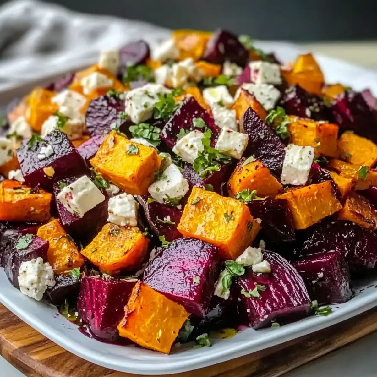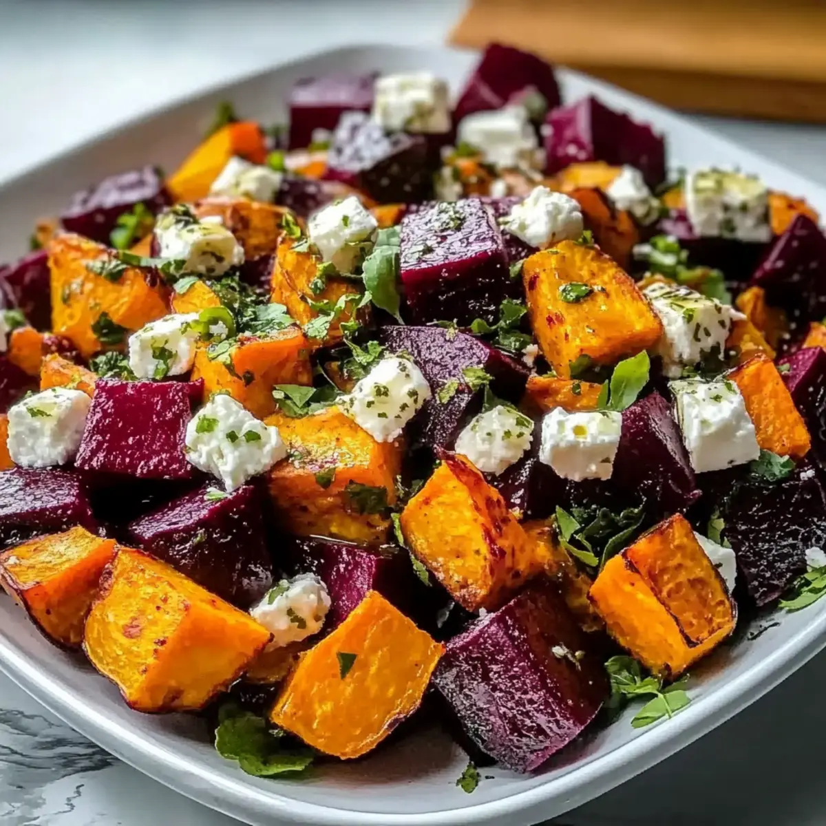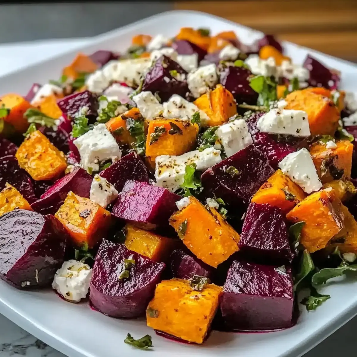 Jump to Recipe Print RecipeAs I reached into the crisper drawer, a bright burst of color caught my eye—glorious roasted beets and sweet potatoes, the perfect duo to create a vibrant Roasted Beet and Sweet Potato Salad. This dish isn’t just a meal; it’s a symphony of comforting flavors that transforms any lunch or dinner into a celebration. The earthy sweetness of roasted beets harmonizes with creamy sweet potatoes and fresh greens, making it an irresistibly healthy option that’s gluten-free and vegetarian. Plus, it’s a delightful centerpiece for gatherings that will leave your friends and family wanting more. Are you ready to dive into a stunning salad that tastes as good as it looks? Why is this salad a must-try? Vibrant Colors: The Roasted Beet and Sweet Potato Salad dazzles with its vivid hues, making every plate not only appetizing but also visually pleasing. Nutrition-Packed: Each serving is loaded with fiber and essential nutrients, making it a health-conscious choice without sacrificing flavor. Quick and Simple: Preparation is a breeze—just roast, mix, and dress! Perfect for busy weeknights or impressing guests at a gathering. Versatile Delight: Serve it as a main dish, side, or even in a wrap! This salad pairs beautifully with grilled meats or alongside a delicious Crunchy Broccoli Salad for a vibrant meal spread. Flavor Harmony: The blend of earthy beets, creamy sweet potatoes, and zesty dressing creates a mouthwatering explosion of flavors in every bite. Roasted Beet and Sweet Potato Salad Ingredients For the Salad • Beets – Earthy sweetness and vibrant color; fresh or pre-cooked can be used for convenience. • Sweet Potatoes – Adds creaminess and sweetness; peeled and diced, they roast beautifully alongside the beets. • Mixed Greens – Freshness and texture; feel free to mix arugula, spinach, or your favorite leafy greens. For the Dressing • Olive Oil – Essential for roasting and dressing; it brings moisture and flavor to the dish. • Balsamic Vinegar – Provides a tangy kick; you can substitute it with lemon vinaigrette if desired. • Honey or Maple Syrup – Adds a hint of sweetness to the dressing; adjust the amount to taste. • Salt & Pepper – Essential seasonings to enhance and balance flavors. Optional Toppings • Feta Cheese (or Goat Cheese) – Adds creaminess and tang; feel free to omit if preferred. • Nuts (such as walnuts or pecans) – For added crunch and a tasty textural contrast. This delightful Roasted Beet and Sweet Potato Salad is not only a feast for the eyes but also a wholesome option packed with nutrition! Step‑by‑Step Instructions for Roasted Beet and Sweet Potato Salad Step 1: Roast the Beets Preheat your oven to 400°F (200°C) and wrap the beets in aluminum foil, ensuring they are securely sealed. Place them on a baking sheet and roast for about 1 hour, or until they can be easily pierced with a fork. Once cooked, allow them to cool for a few minutes before peeling off the skin, revealing the vibrant, earthy flavor perfect for your Roasted Beet and Sweet Potato Salad. Step 2: Cook the Sweet Potatoes While the beets are roasting, peel and dice the sweet potatoes into evenly sized cubes. Toss them in a bowl with olive oil, salt, and pepper until fully coated. Spread the sweet potatoes in a single layer on a baking sheet and roast in the same oven for 25-30 minutes. They should turn golden and become tender, making them a delightful addition to the salad. Step 3: Prep the Greens While the vegetables are roasting, wash and thoroughly dry your mixed greens of choice. Choose a vibrant mix like arugula and spinach for added flavor and nutrition. Place the washed greens in a large serving bowl, ready to be adorned with the roasted beets and sweet potatoes for your beautiful Roasted Beet and Sweet Potato Salad. Step 4: Make the Dressing In a small bowl, whisk together olive oil, balsamic vinegar, honey or maple syrup, salt, and pepper. Taste the dressing and adjust the sweetness to your liking—adding more honey or vinegar if necessary. This zesty dressing will elevate the flavors of your Roasted Beet and Sweet Potato Salad, providing a delicious tangy kick. Step 5: Combine Salad Ingredients Once the beets and sweet potatoes have cooled, chop the roasted beets into bite-sized pieces. Add the chopped beets and roasted sweet potatoes to the bowl with your mixed greens, creating a colorful medley. These earthy and sweet components together will form the heart of your Roasted Beet and Sweet Potato Salad. Step 6: Finish and Serve Drizzle the prepared dressing over the salad and gently toss to combine all ingredients without bruising the greens. If desired, sprinkle crumbled feta cheese or goat cheese on top for a creamy finish. Serve the salad immediately or keep it chilled until ready, but don’t dress it until just before serving to maintain freshness. Expert Tips for Roasted Beet and Sweet Potato Salad Prep Ahead: Roast the beets a day in advance to save time on the day of serving. This convenience reduces cooking stress and allows flavors to deepen. Dress Wisely: Never dress the salad until just before serving; this prevents soggy greens and maintains the salad’s vibrant crunch. Temperature Matters: Allow the roasted vegetables to cool slightly before adding them to the greens. This helps preserve the freshness of the mixed greens in your Roasted Beet and Sweet Potato Salad. Taste the Dressing: Always taste your dressing as you whip it up. Adjust sweetness with honey or maple syrup to suit your palate perfectly. Mix It Up: Feel free to experiment! Try adding proteins like grilled chicken or chickpeas for an extra filling meal while keeping it healthy and gluten-free. What to Serve with Roasted Beet and Sweet Potato Salad Elevate your mealtime experience with delightful accompaniments that complement this colorful salad perfectly. Creamy Mashed Potatoes: Their smooth, buttery texture contrasts beautifully with the crunc
