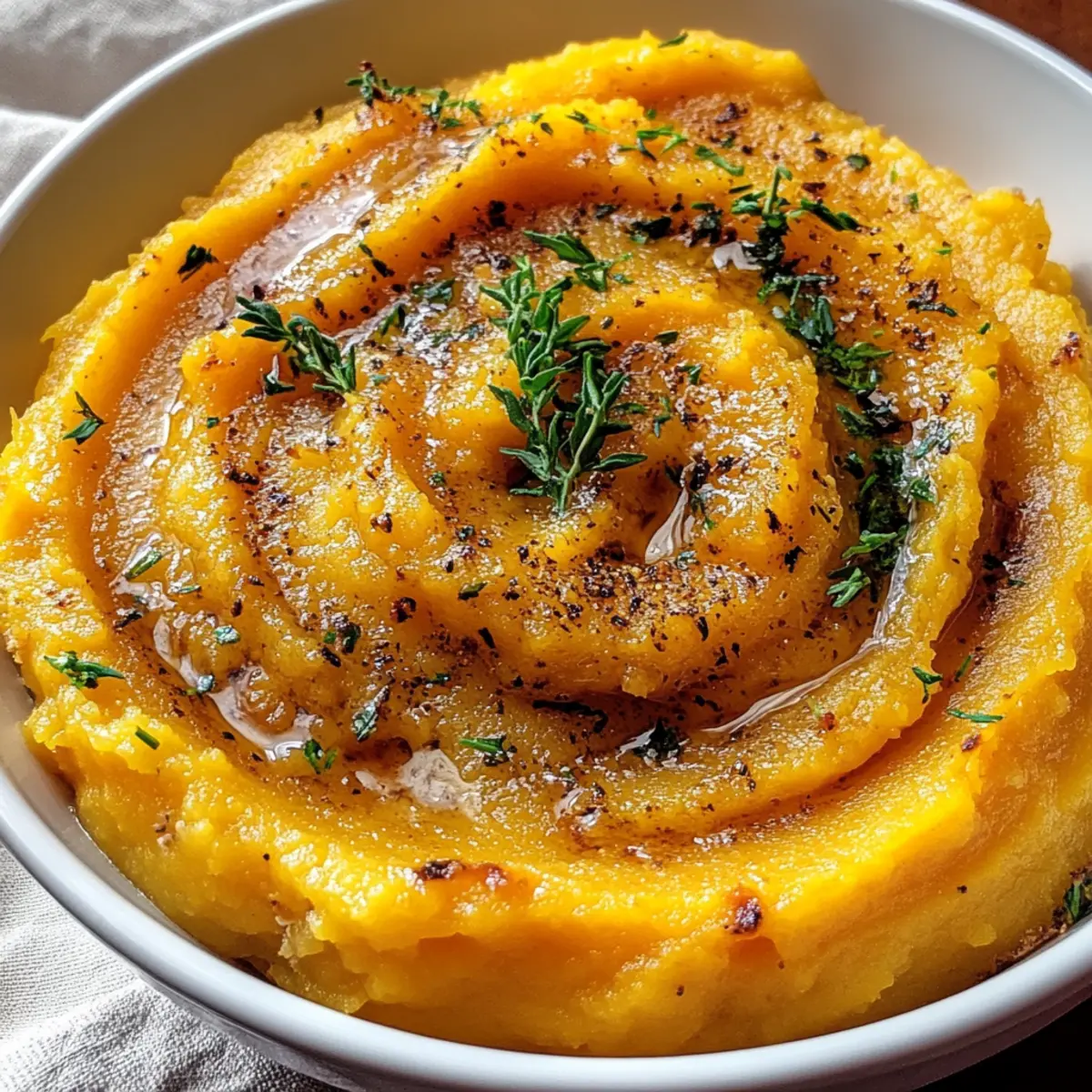 Jump to Recipe Print RecipeAs the crisp air of fall settles in, I find myself gravitating towards comforting flavors that warm the soul. Enter Roasted Garlic Mashed Butternut Squash—a delightful twist on the traditional mashed potatoes that adds both sweetness and savory depth. This creamy side dish comes together quickly and is not only gluten-free but also offers a vegan option for those looking to embrace plant-based eating. With the sweet notes of butternut squash harmonizing perfectly with the rich, caramelized garlic, it’s a side dish that makes any meal feel special. Trust me, this luscious mash will be the crown jewel of your dinner table and a fantastic alternative to heavier sides. Are you ready to dive into the cozy world of roasted goodness? Let’s get cooking! Why is this dish a must-try? Comforting and Savory: This Roasted Garlic Mashed Butternut Squash combines the sweet, creamy essence of squash with caramelized garlic, making it the ultimate comfort food. Healthy Alternative: With a gluten-free and optional vegan twist, it’s a nutritious replacement for traditional mashed potatoes without sacrificing flavor. Easy to Make: Its simple roasting technique allows even beginner cooks to achieve a delightful dish with minimal effort. Versatile: Perfect as a side for holiday feasts or casual weeknight dinners, it pairs beautifully with everything from roasted meats to hearty vegetarian mains. Crowd-Pleasing: Impress family and friends while satisfying those seeking healthier meal options, just like with Garlic Lemon Butter Salmon! Transform your table with this unique mash that’s sure to be a new favorite. Roasted Garlic Mashed Butternut Squash Ingredients For the Mash • Butternut Squash – Provides natural sweetness and a creamy texture when roasted; you can substitute with pumpkin if needed. • Garlic (5-6 cloves) – Adds depth and sweetness once caramelized; pre-roasted garlic works great too! • Olive Oil (2 tablespoons) – Aids in roasting and adds a fruity richness; avocado oil is an excellent substitute. • Salt (½ teaspoon, to taste) – Enhances and balances the flavors; don’t be shy to adjust based on your palate. • Black Pepper (¼ teaspoon, to taste) – Adds a mild heat and aromatic kick for complexity. • Ground Nutmeg (¼ teaspoon) – Provides a cozy, spicy note that complements the squash; try cinnamon for a different vibe! • Almond Milk (¼ cup) – Lightens the mash, keeping it creamy without overpowering the squash; soy or oat milk can work too. • Butter (2 tablespoons or vegan alternative) – Adds richness and a luxurious finish, enhancing the overall flavor. For Garnish • Fresh Parsley or Chives – Brightens and adds a pop of color, making your dish visually appealing. Now that you have all the ingredients ready, you’re just steps away from preparing the heavenly Roasted Garlic Mashed Butternut Squash that will warm your heart and impress your guests! Step‑by‑Step Instructions for Roasted Garlic Mashed Butternut Squash Step 1: Preheat the Oven Begin by preheating your oven to 400°F (200°C). This temperature ensures that your butternut squash will roast evenly, enhancing its natural sweetness. While the oven heats, gather your baking sheet and parchment paper for easy cleanup later. Step 2: Prepare the Squash Carefully halve the butternut squash from stem to base and scoop out the seeds using a spoon. Place the squash cut-side up on the prepared baking sheet, allowing plenty of space for even roasting. The vibrant orange flesh should be easily visible and inviting. Step 3: Add Garlic Peel the garlic cloves and arrange them alongside the squash on the baking sheet. Drizzle the entire surface with olive oil, ensuring everything is lightly coated for maximum flavor. The garlic should be nestled next to the squash, ready to caramelize as they roast together. Step 4: Season & Roast Sprinkle the squash and garlic with salt and black pepper according to your taste. Place the baking sheet in the preheated oven and roast for 35 to 40 minutes. You’ll know it’s done when the squash is fork-tender and the garlic is golden and fragrant, filling your kitchen with warmth. Step 5: Cool & Scoop Once roasted, remove the baking sheet from the oven and allow the squash to cool for about 10 minutes. This cooling time will make it easier to handle. Then, scoop out the soft squash flesh into a large mixing bowl, ensuring you leave the skin behind. Step 6: Mix Ingredients Add the roasted garlic, ground nutmeg, remaining olive oil, almond milk, and butter to the bowl with the squash. Using a fork or potato masher, gently combine these ingredients, creating a rich, flavorful base for your Roasted Garlic Mashed Butternut Squash. Step 7: Mash & Season Continue mashing the mixture until smooth and creamy. Taste your mash and adjust the salt and pepper as needed, ensuring every bite is seasoned perfectly. The mash should be velvety and satisfyingly creamy, showcasing the delicious roasted ingredients. Step 8: Serve Transfer your Roasted Garlic Mashed Butternut Squash to a serving dish, shaping it into a beautiful mound. Garnish with fresh parsley or chives for a pop of color, and serve warm alongside your favorite mains. This dish promises to be a delightful centerpiece on any table. What to Serve with Roasted Garlic Mashed Butternut Squash Create a cozy, delightful meal that warms the heart and soul with perfect pairings. Herb-Roasted Chicken: The savory, fragrant notes of roasted chicken elevate the comforting sweetness of the squash, making for a harmonious plate. Sautéed Green Beans: Bright, crisp green beans add a fresh crunch, offering a textural contrast that complements the creamy squash beautifully. Quinoa Salad: A hearty quinoa salad packed with fresh vegetables provides a nutritious balance and flavorful element that rounds out the meal. Mushroom Stroganoff: Rich and creamy, this vegetarian dish pairs wonderfully with the roasted squ