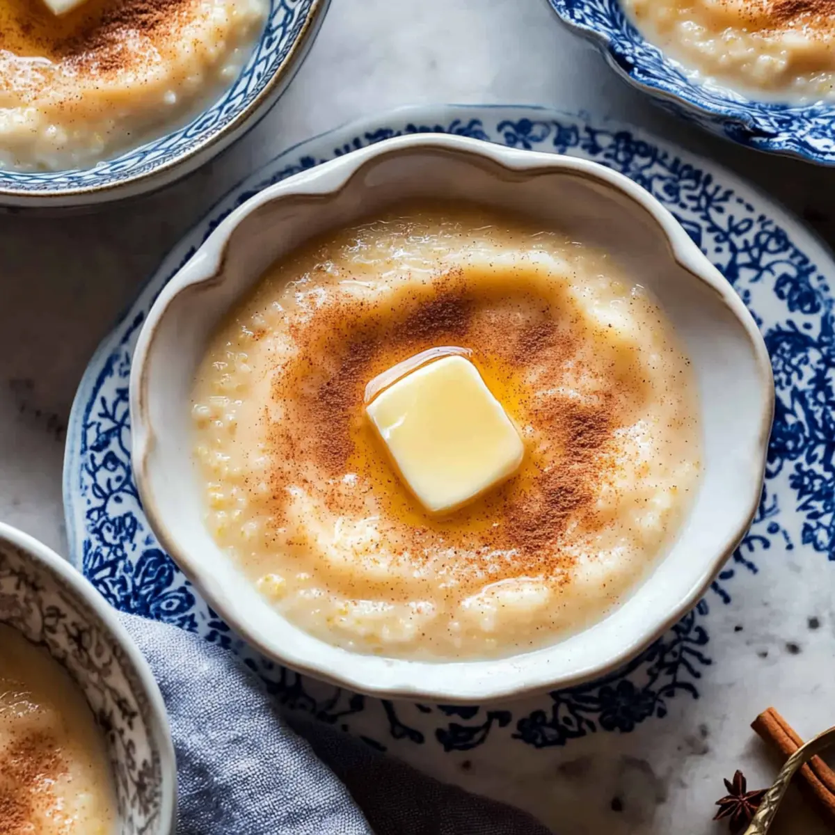Jump to Recipe Print RecipeSavoring the aroma of warm spices and creamy richness wafting through the kitchen, I find myself immediately transported to a cozy Norwegian winter. This is the magic of Rømmegrøt, a traditional sour cream porridge that has warmed hearts and bellies for generations. Whether enjoyed as a delightful breakfast or a comforting dessert after a festive meal, this dish embodies simplicity and warmth. One of the many reasons I adore Rømmegrøt is its quick preparation—ideal for those busy mornings or impromptu gatherings. Plus, it’s a fabulous way to elevate your holiday feasts, bringing a taste of heritage right to your table. Curious about the perfect way to enjoy this creamy delight? Let me guide you through creating this comforting dish that’ll become a cherished favorite in your home. Why Rømmegrøt Will Steal Your Heart? Comforting, this creamy porridge offers a warm embrace on chilly days, instantly brightening your mood. Cultural heritage shines through with every spoonful, making it a beautiful addition to family traditions and festive feasts. Easy to make, even novice cooks will find joy in its straightforward preparation. Versatile toppings like fruit compote or nuts invite you to get creative and personalize your experience. Plus, this dish saves time on busy mornings, providing a satisfying meal in minutes. You’ll quickly see why Rømmegrøt is a beloved favorite—perfect for anyone seeking homemade goodness! Rømmegrøt Ingredients • To create this delicious Norwegian porridge, gather these essential ingredients! For the Base Whole Milk – Provides the creamy base; substitute with heavy cream for a richer flavor. All-Purpose Flour – Acts as a thickening agent for that delightful pudding-like consistency. Granulated Sugar – Sweetens the dish beautifully; reduce for a less sweet version. Kosher Salt – Balances the sweetness and enhances overall flavor, essential for this recipe. For the Topping Salted Butter – Adds a richness when melted over the porridge; unsalted can be used if preferred. Cinnamon-Sugar – A classic topping that adds warmth and sweetness; adjust to your taste! With these simple yet wholesome ingredients, you’ll be well on your way to crafting the perfect bowl of Rømmegrøt! Step‑by‑Step Instructions for Rømmegrøt Step 1: Heat the Milk In a heavy-bottomed saucepan, pour in the whole milk and slowly heat it over medium-low heat. Use a cooking thermometer to monitor the temperature, stirring continuously to reach 195°F. This prevents any scorching on the bottom, ensuring a smooth base for your Rømmegrøt. You’ll know it’s ready when you see small bubbles forming around the edges. Step 2: Prepare the Dry Ingredients While the milk is heating, combine the all-purpose flour, granulated sugar, and kosher salt in a small bowl. Whisk them together until evenly mixed, ensuring there are no lumps. Set this flour-sugar mixture aside; it will create the thick, creamy texture characteristic of Rømmegrøt when combined with the heated milk. Step 3: Melt the Butter In a separate small saucepan, melt the salted butter over medium heat. Keep an eye on it, stirring occasionally, until melted and bubbly. Once the butter is fully melted, remove it from the heat and let it cool slightly. This will serve as the base for mixing with the dry ingredients for our Rømmegrøt. Step 4: Combine Dry Ingredients with Butter Once the milk has reached the desired temperature, add the flour-sugar mixture into the melted butter. Stir them together to form a thick paste, ensuring it’s smooth and well combined. This paste will be added to the heated milk, thickening the Rømmegrøt and giving it that delightful pudding-like consistency. Step 5: Mix the Paste with the Milk Gradually add the butter-flour paste to the heated milk, stirring constantly to combine. This step is crucial, so ensure there are no lumps. Continue stirring until the mixture comes to a gentle boil, which should take about 2-3 minutes. Watch for a creamy, bubbling texture, indicating it’s time to lower the heat. Step 6: Simmer and Thicken Reduce the heat to low and let the mixture simmer for another 5 minutes. Stir frequently during this time to prevent sticking. You’ll notice the Rømmegrøt thickening beautifully; it should resemble a rich, creamy porridge and will continue to thicken as it cools slightly off the heat. Step 7: Serve Your Delicious Rømmegrøt Ladle the warm Rømmegrøt into bowls, creating a cozy serving for friends and family. Drizzle the melted butter generously over the top, allowing it to pool slightly for that traditional touch. Finish with a sprinkle of cinnamon-sugar to enhance the flavor and visual appeal, and enjoy this comforting dish warm and inviting. Rømmegrøt Variations & Substitutions Feel free to get creative and make this delightful porridge your own with these exciting variations! Rich & Creamy: Substitute whole milk with heavy cream for an ultra-luxurious texture. This twist elevates each bite, making it even more satisfying. Dairy-Free Delight: Use coconut milk or almond milk for a lighter, plant-based version. The subtle flavors add an exciting twist that still brings comfort. Sweetness Adjustments: Decrease the sugar for a less sweet treat, or try using honey or maple syrup for a natural sweetness. This flexibility accommodates various taste preferences beautifully. Fun Toppings: Add a homemade fruit compote or chopped nuts for an added layer of flavor and texture. Fresh berries create a lovely contrast, while toasted almonds bring a lovely crunch that will surprise your palate. Spiced Up: Experiment with flavors like cardamom or nutmeg in addition to cinnamon for a warm, spiced twist that’s perfect for cozy nights. Each spice brings a unique warmth that complements this dish beautifully. A Touch of Heat: For those who enjoy a little warmth, sprinkle in some chili powder or serve with a spicy chutney. This unexpecte