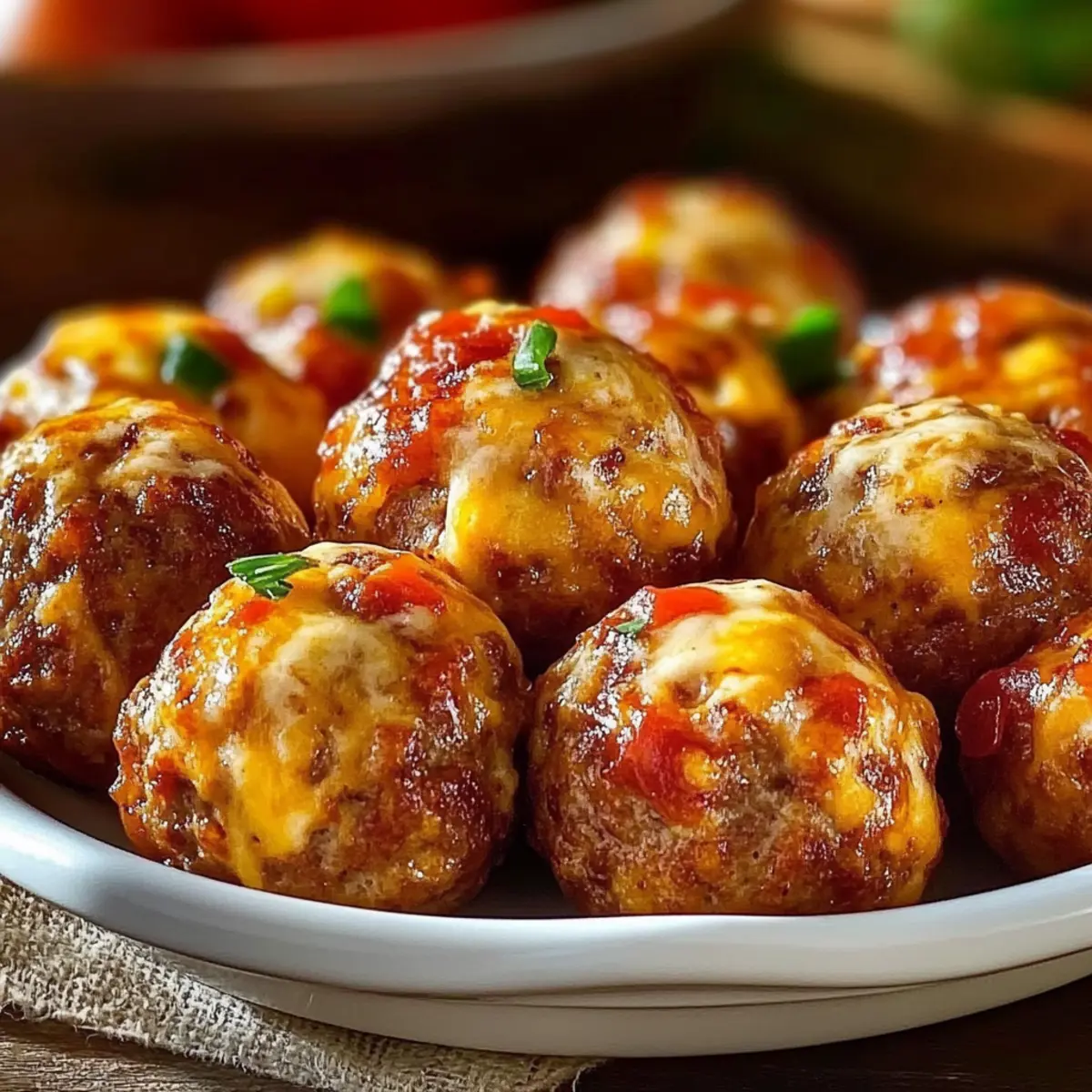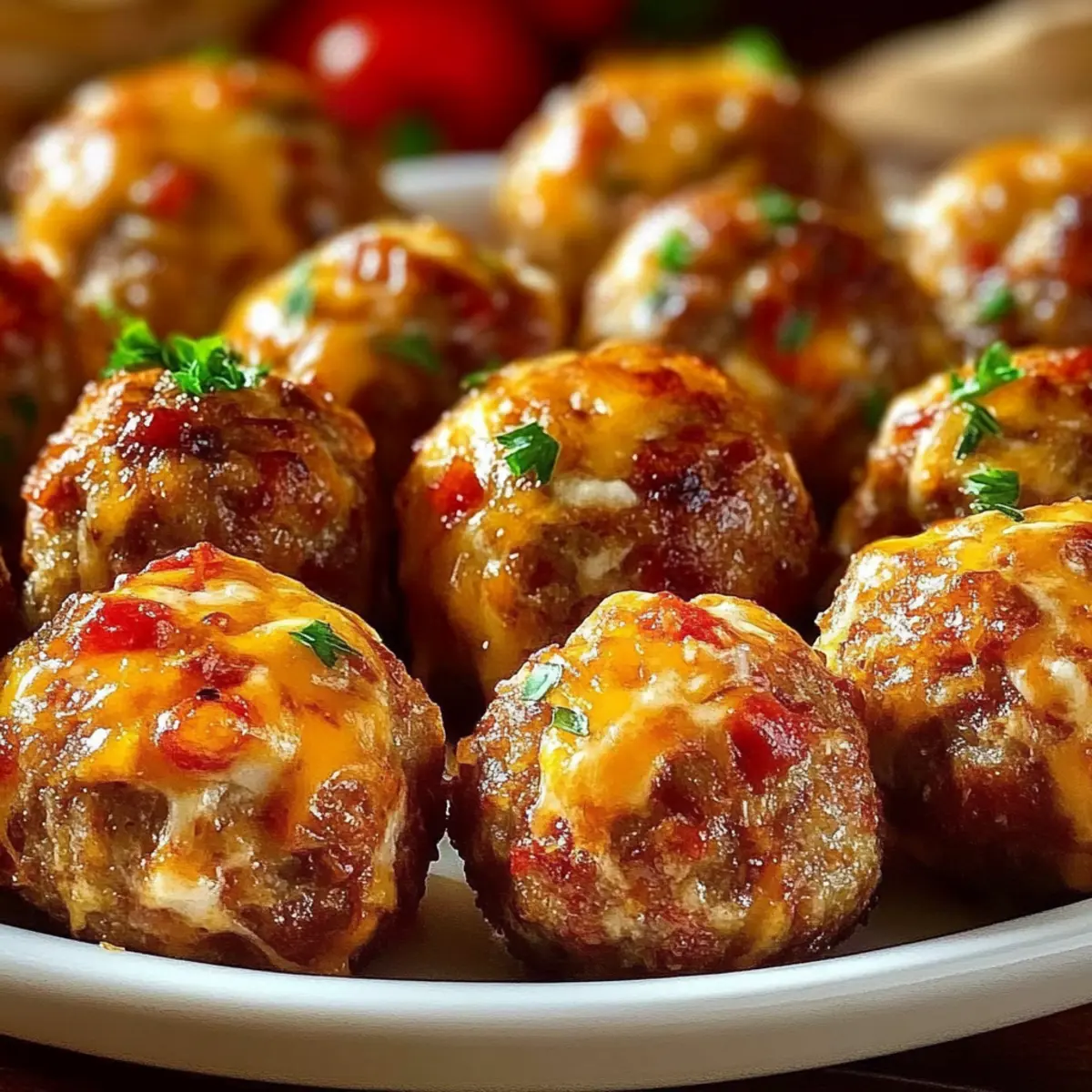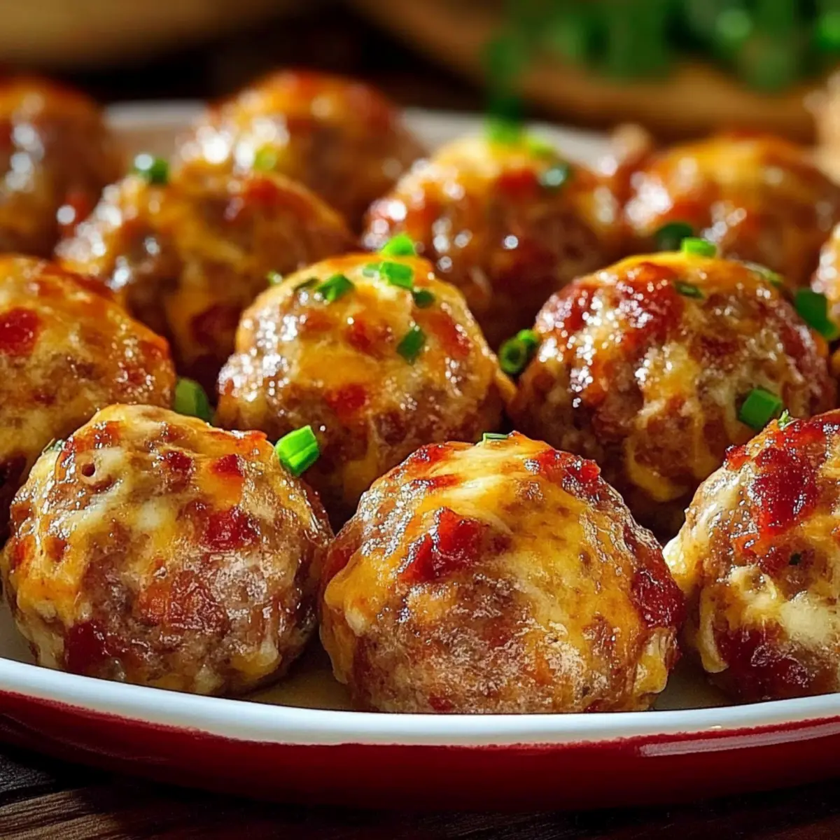 Jump to Recipe Print RecipeAs I stood in my kitchen, the enticing aroma of sizzling sausage filled the air, instantly transporting me to a cozy Southern gathering. That’s when I knew I was onto something big—these Spicy Rotel Cream Cheese Sausage Balls were about to steal the show! With their crispy exterior and creamy, cheesy center, they deliver a taste experience that’s downright addictive. Not only are these crowd-pleasers incredibly easy to whip up, but they also offer the flexibility to customize flavors—whether you crave extra spice or a milder touch. Perfect for game day or a casual get-together, these delightful bites are sure to impress your family and friends. Are you ready to discover how to make this irresistible appetizer? Let’s dive in! Why Are These Sausage Balls a Must-Try? Flavor-Packed: The combination of zesty Rotel and creamy cheese creates a tantalizing taste explosion that bursts with every bite. Customizable Perfection: Whether you prefer mild or spicy, you can easily adjust the heat level to suit everyone’s taste. Quick and Easy: With simple ingredients and straightforward steps, these sausage balls can be prepared in just a flash, making them an ideal option for last-minute gatherings. Crowd-Approved: They disappear quickly at parties, making them a guaranteed hit among guests—trust me, they’ll ask for the recipe! Versatile Serving Options: Pair them with your favorite dips, like ranch or spicy sriracha mayo, to elevate the experience even more. Need more snack ideas? Try Coconut Bliss Balls or enjoy a classic Bacon Grilled Cheese for a delightful twist. Enjoy these delicious bites warm, or make them ahead for an effortless appetizer that’s always a winner! Rotel Cream Cheese Sausage Balls Ingredients For the Sausage Mix • Ground Sausage – Provides hearty, savory flavor; choose spicy for extra kick or mild for a softer taste. • Cream Cheese – Adds rich creaminess; full-fat is ideal for flavor, but low-fat can work too. • Rotel Diced Tomatoes and Green Chilies – Infuses spice and moisture; ensure they’re well-drained to maintain consistency in the mixture. For the Cheese & Binding • Shredded Cheddar Cheese – Enhances flavor and binds the mixture; consider using pepper jack for more heat or Monterey jack for a milder touch. • All-Purpose Flour – Crucial for structure; alternative flours can be used, but textures will vary. For Extra Flavor • Garlic Powder – Adds depth of flavor; you may swap in fresh garlic, adjusting the quantity. • Onion Powder – Elevates overall taste; fresh onions can also be used when finely chopped and sautéed. • Salt, Black Pepper, and Cayenne Pepper – Essential for seasoning; cayenne can be reduced or replaced with mild chili powder for less heat. For Preparation • Cooking Spray or Oil – Helps grease the baking sheet for easy release of those delicious sausage balls. Step‑by‑Step Instructions for Rotel Cream Cheese Sausage Balls Step 1: Mix Ingredients In a large mixing bowl, combine the softened cream cheese and ground sausage. Use a sturdy spatula or your hands to blend the two ingredients thoroughly until they form a cohesive mixture, which should take about 2-3 minutes. This creamy and savory base will set the foundation for your Rotel Cream Cheese Sausage Balls. Step 2: Add Rotel Carefully fold in the well-drained Rotel diced tomatoes and green chilies, making sure that they are evenly distributed throughout the sausage mixture. This step infuses the mix with a zesty flavor and moisture, taking about 1-2 minutes. Ensure no excess liquid remains to maintain the right consistency for forming the balls. Step 3: Cheese Addition Next, gently fold in the shredded cheddar cheese. This will add a rich flavor and help bind the mixture together. Take care not to overmix at this stage; a couple of minutes should suffice to incorporate the cheese without compromising the texture of your Rotel Cream Cheese Sausage Balls. Step 4: Mix Dry Ingredients In a separate bowl, whisk together the all-purpose flour, garlic powder, onion powder, salt, black pepper, and cayenne pepper, if using. This step will only take about 2 minutes, but it’s crucial to evenly combine the dry ingredients for optimum flavor in your sausage balls. Step 5: Combine Mixtures Gradually add the dry mixture to the sausage mixture, using a spatula to gently fold them together. Continue until the ingredients are just combined, which should take around 2-3 minutes. If the mixture appears too wet, you can adjust by adding a bit more flour to achieve the right consistency for forming balls. Step 6: Preheat Oven Preheat your oven to 375°F (190°C) and prepare a baking sheet by greasing it lightly with cooking spray or oil. This ensures your Rotel Cream Cheese Sausage Balls won’t stick and will achieve that beautiful golden brown color during baking, which will take about 20-25 minutes. Step 7: Form Balls Scoop about 1 tablespoon of the mixture and roll it into a ball shape using your hands. Place each ball on the prepared baking sheet, ensuring there is space between them to allow for even cooking. This process will take around 5-10 minutes depending on how many you make, resulting in about 24-30 sausage balls. Step 8: Bake Place the baking sheet in the preheated oven and bake the sausage balls for 20-25 minutes, or until they are golden brown and cooked through. To enhance their crispiness, you can broil them for an additional 2-3 minutes at the end of baking, keeping a close eye to prevent burning. Step 9: Cool and Serve Once baked, remove the tray from the oven and let the Rotel Cream Cheese Sausage Balls cool slightly for about 5 minutes. Serve them warm or at room temperature, paired with your favorite dipping sauces for a delicious appetizer that’s perfect for any gathering. Expert Tips for Rotel Cream Cheese Sausage Balls Soften Your Cream Cheese: Ensure your cream cheese is at room temperature to mix easily and a