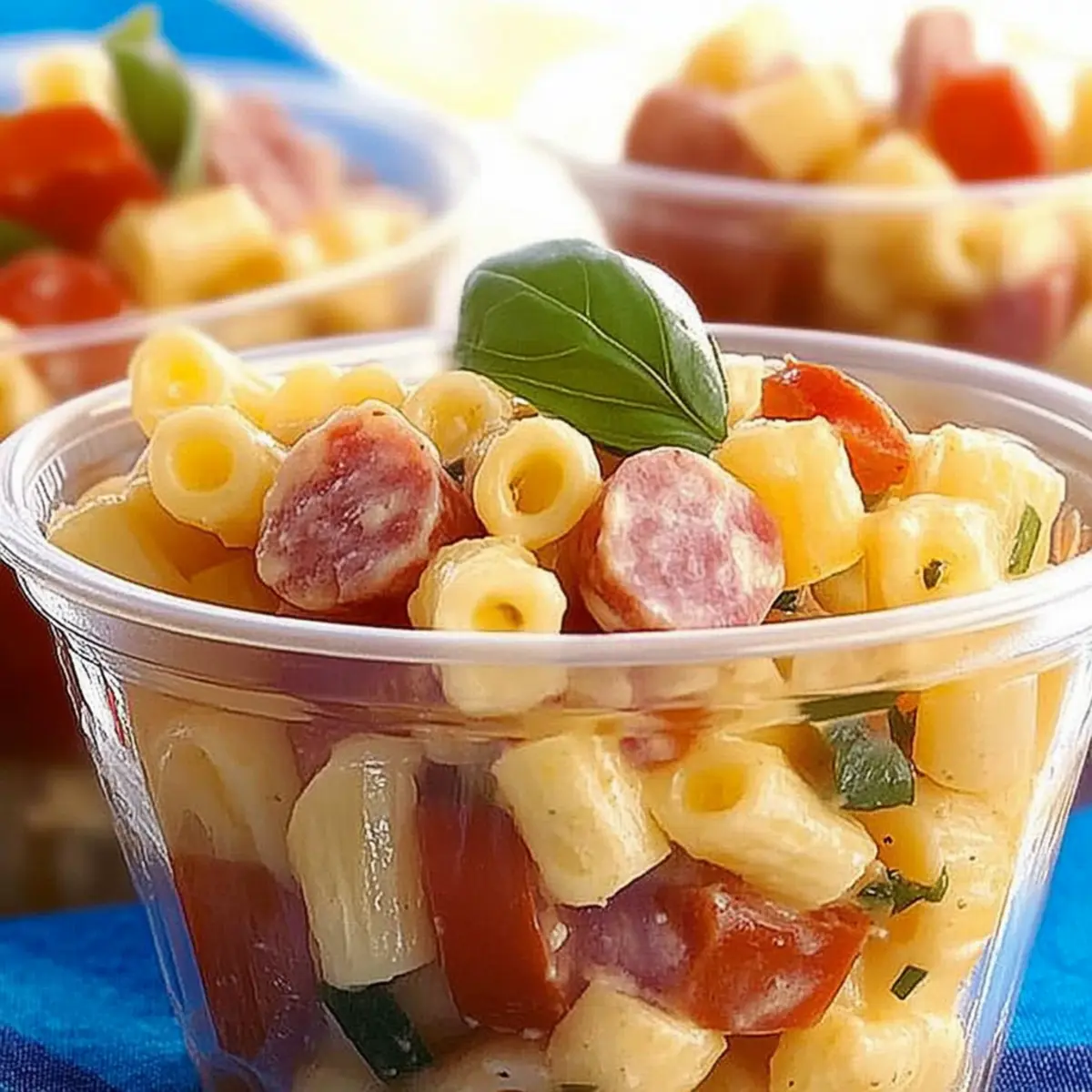 Jump to Recipe Print RecipeThere I was, overwhelmed by a pile of takeout menus, my heart yearning for something fresh and homemade. Enter my Salami & Provolone Pasta Salad, a delightful dish that effortlessly marries hearty salami with creamy provolone, all tossed with vibrant, crunchy peppers. Preparing this pasta salad is both a breeze and a joy—it comes together in mere minutes and can be made ahead of time, making it your best friend on those hectic weeknights or when hosting friends. Whether you’re looking to impress your family or simply craving something delicious, this salad is a winner for both adults and kids alike. Eager to discover how to whip up this easy, mouthwatering dish? Let’s dive in! Why is this pasta salad a must-try? Easy Preparation: This Salami & Provolone Pasta Salad comes together in just a few simple steps, perfect for busy weeknights. Bursting with Flavor: The combination of savory salami and creamy provolone, coupled with fresh crunchy peppers, creates a dish that’s both satisfying and refreshing. Make-Ahead Magic: You can prepare it ahead of time, making it an excellent choice for gatherings or quick meals. Versatile Options: Feel free to customize with your favorite ingredients; try adding olives or even switch to a vegetarian version! Whether you’re serving it as a side or a light main dish, it’s sure to please everyone at the table. Salami & Provolone Pasta Salad Ingredients For the Pasta • Uncooked Cellentani Pasta or Elbow Macaroni – This provides the perfect base for your salad; any bite-sized pasta works as a great substitute. For the Salad • Sweet Red Pepper – Adds a crisp, fresh flavor and vibrant color; feel free to swap it with other bell peppers if desired. • Provolone Cheese – Offers a creamy, tangy element; mozzarella or another mild cheese can easily replace it. • Hard Salami – Delivers a savory, rich taste; try using pepperoni or cooked ham for a delightful twist. For the Dressing • Prepared Italian Salad Dressing – This brings all the flavors together beautifully; homemade vinaigrette or your favorite dressing can be used as an alternative. • Additional Italian Dressing (optional) – For a boost in moisture if desired. • Minced Fresh Basil (optional) – Perfect for garnishing and adding a burst of freshness. Embrace the flavor-packed goodness of this Salami & Provolone Pasta Salad and watch as it elevates your mealtime experience! Step‑by‑Step Instructions for Salami & Provolone Pasta Salad Step 1: Cook Pasta Begin by bringing a large pot of salted water to a rolling boil over high heat. Add the uncooked cellentani pasta or elbow macaroni and cook according to the package directions until al dente, usually around 8-10 minutes. Once cooked, the pasta should be firm yet tender; drain it in a colander and rinse under cold water to stop the cooking process and cool it down. Step 2: Prepare Mix While the pasta cools, take a large mixing bowl and combine the chopped sweet red pepper, cubed provolone cheese, and cubed salami. Ensure that the salami and cheese are cut into bite-sized pieces for easy eating. Toss these ingredients gently to distribute the colors and textures evenly, creating a vibrant base for your Salami & Provolone Pasta Salad. Step 3: Combine Ingredients Once the pasta is completely cool, add it to the bowl with the pepper, cheese, and salami mixture. Stir everything together gently but thoroughly, ensuring the pasta is well-coated with the other ingredients. This combination of flavors and textures will become the heart of your salad, so allow the pasta to absorb some of the freshness from the vegetables. Step 4: Add Dressing Drizzle about 1/3 cup of prepared Italian salad dressing over the pasta and other ingredients. Use a large spoon or spatula to toss the mixture gently, ensuring that the pasta is evenly coated with the dressing. The aromas of the Italian dressing mingling with the salami and provolone will fill your kitchen, hinting at the delicious salad you’re about to serve. Step 5: Chill Cover the mixing bowl with plastic wrap or transfer the salad to an airtight container. Refrigerate for at least 1 hour, allowing the flavors in your Salami & Provolone Pasta Salad to meld beautifully. Chilling not only enhances the taste but also improves the texture, making it a refreshing dish perfect for any occasion. Step 6: Serve Before serving, give the salad a gentle stir. You may want to add a splash of extra Italian dressing for added moisture, especially if the pasta has absorbed some dressing during refrigeration. Garnish with minced fresh basil if you like, and serve chilled as a delightful side or light main course, bringing smiles to every table. How to Store and Freeze Salami & Provolone Pasta Salad Fridge: Keep your Salami & Provolone Pasta Salad in an airtight container for up to 3 days. The flavors develop beautifully, but stir well before serving as the pasta may absorb the dressing. Freezer: While not recommended, you can freeze the salad for up to 1 month. However, the texture of the pasta and vegetables may change upon thawing, so enjoy it fresh if possible. Reheating: If desired, gently reheat individual portions in the microwave, adding a splash of dressing to restore moisture. Serve chilled or at room temperature for the best experience! Serving Suggestions: Pair your pasta salad with crusty bread or a light dessert for a complete meal, making it a delightful addition to any gathering or busy weeknight dinner. What to Serve with Salami & Provolone Pasta Salad Transform your mealtime with delightful accompaniments that elevate the flavors and textures of your pasta salad. Garlic Bread: The crispy, buttery goodness pairs beautifully with the creamy cheese and savory salami, making every bite a delight. Caprese Skewers: Fresh mozzarella, tomatoes, and basil on a stick add a burst of flavor that complements the salad’s Italian flair. Mixed Green Salad: A light, dressed s