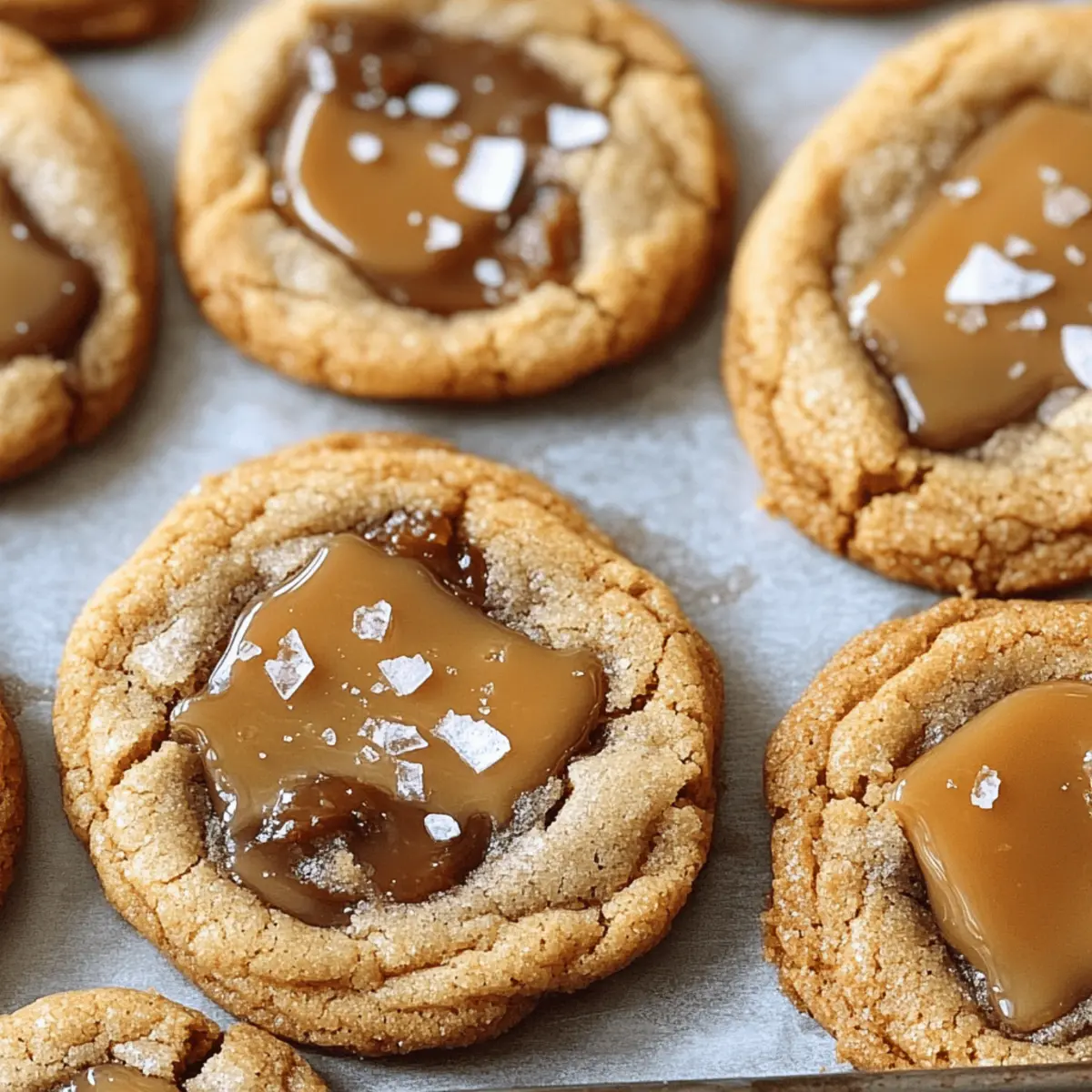 Jump to Recipe Print RecipeAs I stepped into the cozy warmth of my kitchen, the scent of melting caramel filled the air, immediately igniting my excitement for today’s adventure: baking irresistible salted caramel cookies. This easy dessert marries sweet and salty in perfect harmony, offering a chewy texture enhanced by buttery caramel and a delicate sprinkle of sea salt. Whether it’s a gathering with friends or simply a treat for yourself, these bakery-style cookies promise to impress without any fuss. With just a few simple ingredients and the option to add chocolate chips or nuts for a fun twist, you’ll find these cookies are not only a delightful indulgence but also make for a fantastic go-to recipe. Ready to bring a little sweetness into your day? Let’s get baking! Why are Salted Caramel Cookies Irresistible? Heavenly Combination: The wonderful mix of sweet caramel and a hint of salty goodness makes these cookies truly special. Easy to Master: Simple steps mean you don’t need to be a professional baker to achieve bakery-style results. Customizable Options: Feeling adventurous? Toss in some chocolate chips or your favorite nuts for a delightful twist! Perfect for Any Occasion: These cookies stand out at parties and gatherings, ensuring your baking will be the talk of the event. Pair them with a glass of milk or a scoop of ice cream for the ultimate indulgence! Whether you’re in search of a special treat or just craving a comforting dessert, this Salted Caramel Cookie recipe is sure to satisfy your sweet tooth. Salted Caramel Cookie Ingredients • For the Cookie Dough: All-Purpose Flour – Provides structure; can use a gluten-free blend for a gluten-free version. Baking Soda – Helps cookies rise; essential for texture. Salt – Balances sweetness; a crucial ingredient for enhancing flavors. Unsalted Butter – Creates a rich, creamy base; must be softened for optimal mixing. Granulated Sugar – Adds crisp texture; contributes to the cookies’ sweetness. Brown Sugar – Adds moisture and caramel flavor; light or dark brown sugar may vary the flavor slightly. Large Eggs – Binds the ingredients together; ensure they’re at room temperature for better mixing. Vanilla Extract – Enhances flavor; use pure vanilla for the best taste. • For the Sweet Add-Ins: Caramel Chips – Provide gooey caramel pockets; Kraft caramel bits are recommended for their melting quality. Chocolate Chips – Optional for added richness; can substitute with nuts for a different flavor profile. • For the Topping: Flaky Sea Salt – For a sweet-salty contrast; use sparingly on top before baking. Dive into the delightful world of salted caramel cookie flavors with these simple ingredients that create a memorable treat! Step‑by‑Step Instructions for Salted Caramel Cookie Step 1: Preheat and Prepare Begin by preheating your oven to 350°F (175°C). While the oven warms, grab two baking sheets and line them with parchment paper, ensuring easy release and cleanup later. This foundational step sets the stage for baking delicious salted caramel cookies that you and your loved ones will enjoy. Step 2: Mix Dry Ingredients In a mixing bowl, whisk together 2 cups of all-purpose flour, 1 teaspoon of baking soda, and 1/2 teaspoon of salt. This step ensures that all dry ingredients are well combined for even leavening and flavor. Once mixed, set the bowl aside so you can focus on the wet ingredients next—this will ensure your salted caramel cookies come out perfectly. Step 3: Cream the Butters and Sugars In another large mixing bowl, beat 3/4 cup of softened unsalted butter, along with 1/2 cup of granulated sugar and 3/4 cup of brown sugar. Use an electric mixer on medium speed until the mixture is light and fluffy, about 2-3 minutes. This step is key to achieving a rich, creamy base for your cookies and enhances the delicious flavors of caramel. Step 4: Incorporate Eggs and Vanilla Now, add in 2 large eggs, one at a time, mixing thoroughly after each addition. Follow with 1 teaspoon of pure vanilla extract, blending until fully incorporated. This creates a smooth and flavorful batter for your salted caramel cookies, paving the way for the perfect melding of ingredients in every chewy bite. Step 5: Combine Wet and Dry Ingredients Gradually add the dry mixture into the wet ingredients, stirring gently until just combined. Be careful not to overmix, as this will keep your salted caramel cookies pleasantly chewy. The dough should remain soft and slightly sticky, ready for the delightful caramel chips! Step 6: Fold in Sweet Add-Ins Gently fold in 1 cup of caramel chips into the cookie dough, and if you choose, 1/2 cup of chocolate chips for extra richness. This step not only adds gooey pockets of caramel but also creates a wonderful balance of flavors in your cookies, leaving everyone wanting more! Step 7: Scoop the Dough Using a cookie scoop or tablespoon, drop rounded balls of dough onto the prepared baking sheets, spacing them about 2 inches apart. This gives the salted caramel cookies room to spread while baking, ensuring a beautiful, even shape. The anticipation of those warm cookies will make your kitchen smell irresistible! Step 8: Add Flaky Sea Salt Before popping the cookie sheets into the oven, lightly sprinkle flaky sea salt on top of each dough ball. This finishing touch enhances the sweet and salty contrast that makes these salted caramel cookies so delightful. Just a pinch goes a long way to elevate the cookie experience. Step 9: Bake the Cookies Bake the salted caramel cookies in the preheated oven for 10-12 minutes, or until the edges are golden brown while keeping the centers slightly soft. Watch closely, as the cookies will continue to cook slightly once removed from the oven. The golden edges and soft centers are your cues for perfect doneness. Step 10: Cool and Enjoy Once baked, let the cookies cool on the baking sheets for about 5 minutes, allowing them to firm up before transferri