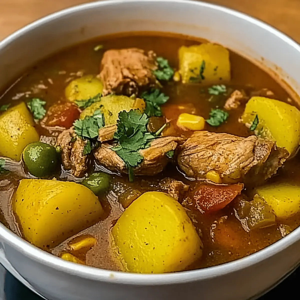 Jump to Recipe Print RecipeAs the aroma of simmering spices wafts through my kitchen, I can’t help but feel a wave of warmth and comfort. This is the essence of Sancocho Dominicano, a hearty 7-ingredient stew that has become my go-to dish for cozy gatherings and quiet family dinners alike. With its customizable nature, this nutrient-rich comfort food is not just easy to prepare; it’s a culinary embrace that nourishes both the body and soul. You can swap in your favorite meats or even create a delicious vegetarian version without losing any of its delicious charm. Are you ready to explore this vibrant taste of the Dominican Republic, and perhaps even make it your own? Why is Sancocho Dominicano unforgettable? Comforting and nourishing, each bowl of Sancocho Dominicano is a warm hug that brings people together. Customizable to suit your taste, this hearty stew easily adapts to your favorite meats or vegetarian ingredients. Hearty and rich, it’s the perfect one-pot meal for both cozy evenings and festive gatherings. Time-saving and effortless, you’ll love how this dish fills your home with mouthwatering aromas, making it a crowd-pleaser that’s sure to impress! Don’t forget to try serving it with a side of rice for an authentic touch! Sancocho Dominicano Ingredients For the Stew Chicken (1 lb) – A primary protein that adds richness; feel free to use turkey for a lighter option. Beef (1 lb) – Introduces depth and flavor; lamb can offer a unique twist if desired. Pork (1 lb) – Provides a hearty base to the stew; consider swapping it with turkey for a leaner variant. Corn (2 ears) – Brings a touch of sweetness and delightful texture; frozen corn can stand in beautifully. Potatoes (2 large) – Thickens the stew and infuses heartiness; sweet potatoes add an intriguing twist. Plantain (1 large) – Adds creamy sweetness that’s truly comforting; substitute with extra potatoes if necessary. Onion (1 medium) – Delivers a fragrant base; shallots can be used in a pinch for a milder flavor. Garlic (2 cloves) – Amplifies the flavor and aroma; garlic powder is a quick fallback if needed. Bell Pepper (1) – Infuses color and sweetness; any variety works, or switch for hotter peppers if you desire. Oregano (1 tablespoon) – Essential for creating depth; fresh herbs can replace dried for a burst of freshness. Thyme (1 tablespoon) – Complements the meat profile beautifully; try basil for a different aromatic note. Water (4 cups) – Forms the stew’s base; adjust the amount to achieve your desired thickness. Salt & Pepper – Key for seasoning; adjust to your personal taste preference. Lime wedges – Served on the side, they brighten up the flavors; lemon wedges can be used for a similar effect. This Sancocho Dominicano promises a delightful medley of flavors and warmth – the perfect dish to nourish your loved ones! Step‑by‑Step Instructions for Sancocho Dominicano Step 1: Prepare the Meat Begin by seasoning the chicken, beef, and pork with salt, pepper, oregano, and thyme to infuse flavor. Use your hands to rub the seasonings evenly over the meats, ensuring each piece is coated well. Set the seasoned meat aside for about 10 minutes to allow the flavors to meld as you prepare the aromatics. Step 2: Sauté Aromatics In a large pot or Dutch oven, heat a splash of oil over medium heat. Once the oil shimmers, add diced onion, minced garlic, and chopped bell pepper. Sauté these ingredients for about 5-7 minutes until they become translucent and fragrant, creating a cozy aroma that fills your kitchen. This fragrant base is key to your Sancocho Dominicano’s depth of flavor. Step 3: Combine Ingredients Once the aromatics are ready, gently stir in the seasoned meats to the pot. Cook for an additional 5-8 minutes, turning the meat occasionally until it’s lightly browned on all sides. This step helps build a rich flavor base while ensuring the meats begin to cook through before adding more liquid. Step 4: Add Water Pour in 4 cups of water, ensuring all the meats are submerged. Increase the heat to high and bring the mixture to a vigorous boil. Once boiling, reduce the heat slightly and skim off any foam that rises to the surface. This process will take about 5 minutes and helps create a cleaner broth for your Sancocho Dominicano. Step 5: Simmer Reduce the heat to low and cover the pot. Allow the stew to simmer gently for about 45 minutes. The meats should become tender and develop their deepest flavors during this time. You’ll know it’s done when they easily shred apart with a fork, creating a foundation of deliciousness for your Sancocho. Step 6: Add Vegetables Stir in the chopped potatoes, sliced plantain, and corn into the pot. These vegetables will add heartiness and texture to your stew. Ensure everything is mixed well and submerged in the broth. Continue to simmer uncovered for an additional 30-40 minutes, until the vegetables have softened beautifully. Step 7: Adjust Seasoning Once the vegetables are tender, it’s time to taste and adjust. Add more salt and pepper to suit your preference. You’ll want to ensure the flavors are balanced, enhancing the overall richness of your Sancocho Dominicano. Take a moment to savor the aroma before moving to the final step. Step 8: Serve Hot After the final adjustments, let your Sancocho Dominicano sit for a few minutes before serving. Ladle into bowls and garnish with fresh lime wedges for a bright touch. The stew’s warm, inviting colors will beckon everyone to the table, ready for a comforting feast full of flavor and tradition. What to Serve with Sancocho Dominicano Sancocho Dominicano is a fabulous centerpiece that pairs beautifully with a variety of comforting sides. Fluffy White Rice: A traditional companion that balances Sancocho’s rich flavors and absorbs its savory broth, making every bite a delight. Avocado Slices: Creamy and cool, fresh avocado brings a delightful contrast to the warmth of the stew, enhancing the