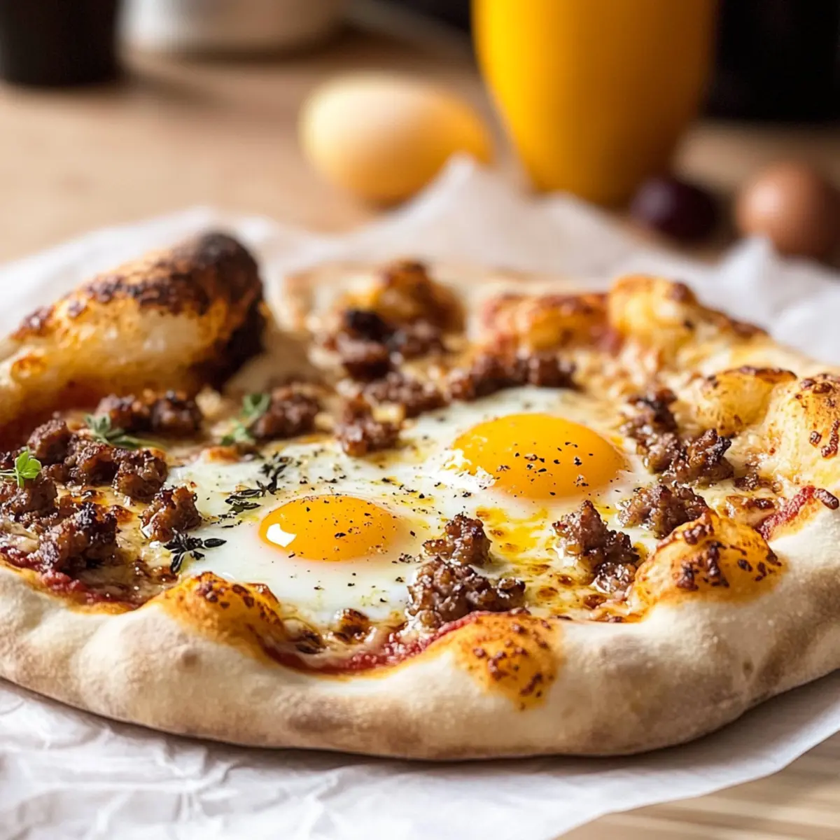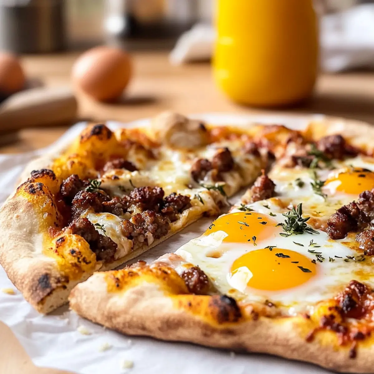 Jump to Recipe Print RecipeThe aroma wafting from my kitchen this morning was pure bliss—a fragrant combination of sizzling sausage, sweet caramelized onions, and cheesy goodness. This is the magic of Sausage Breakfast Pizza, the perfect dish for any time of day. Whether you’re looking to elevate your brunch game or treat yourself to breakfast-for-dinner, this pizza is here to save the day. With easily customizable toppings and the option for make-ahead ingredients, prepping this meal has never been simpler, allowing you to focus on enjoying quality time with loved ones. Just imagine gathering around the table, slicing into a bubbly, golden crust, and discovering perfectly cooked eggs nestled within. What unique twist will you add to your own breakfast pizza creation? Why is Sausage Breakfast Pizza a Must-Try? Irresistible Aroma: Bringing the delightful scent of sizzling sausage and sweet onions into your kitchen transforms any meal into a feast. Effortless Prep: With make-ahead ingredients and customizable toppings, whipping up this dish is a breeze. It’s perfect for spontaneous gatherings or cozy family dinners. Ultimate Comfort Food: The warm, cheesy goodness and savory flavors unite in every slice—ideal for breakfast, brunch, or a comforting dinner. Creative Freedom: Explore different cheese options like sharp cheddar or rich gouda, or add your favorite veggies to make it uniquely yours! Elevate your eating experience with this Sausage Breakfast Pizza that will leave you craving more! Sausage Breakfast Pizza Ingredients For the Dough Pizza Dough – The base of the pizza; consider using artisan pizza dough for optimal texture. For the Pizza Toppings Italian Sausage – Provides savory flavor; should be cooked and crumbled before topping. Substitute with turkey or chicken sausage for a lighter option. Eggs – Adds richness and protein; two eggs recommended per pizza. Substitute with egg whites for a lighter version. Onions – Caramelized for sweetness and depth. Use yellow onions; substitute with shallots for a milder taste. Fontina Cheese – Melts beautifully and adds creaminess. Substitute with mozzarella for a more traditional cheese. Pecorino Romano Cheese – Adds a sharp, salty flavor. Can be substituted with parmesan cheese. For Serving Hot Sauce – For serving; adds spice and flavor depth. Optional, based on personal taste. Now that you have all the ingredients for this mouthwatering sausage breakfast pizza, let’s dive into creating your own culinary masterpiece! Step‑by‑Step Instructions for sausage breakfast pizza Step 1: Prepare the Dough Start by making your pizza dough early, allowing it to ferment for about 8 hours at room temperature. If preparing ahead, shape the dough and refrigerate it until you’re ready to use it. A well-risen, elastic dough will give your sausage breakfast pizza a deliciously chewy crust, perfect for holding all those toppings. Step 2: Cook the Sausage In a medium skillet over medium heat, crumble and cook the Italian sausage until browned and crispy, about 10-12 minutes. Be sure to stir occasionally for even cooking, letting those irresistible savory flavors develop. Once cooked, drain any excess grease and set the sausage aside on a paper towel to absorb the remaining fat. Step 3: Caramelize the Onions In the same skillet, add sliced yellow onions and cook over medium-low heat for about 20 minutes, stirring occasionally. You’re looking for them to soften and turn lightly golden, which brings out their natural sweetness. This caramelization adds depth to your sausage breakfast pizza, enhancing the overall flavor profile. Step 4: Shred the Cheese While the sausage and onions are cooking, grate your fontina and pecorino Romano cheeses. Aim for a generous amount to achieve that perfect melty goodness on your pizza. Once grated, store the cheeses in the fridge until you’re ready to assemble, keeping them fresh and cool. Step 5: Assemble the Pizza Preheat your oven to a blistering 500°F (260°C). Roll out your prepared pizza dough on a floured surface to your desired thickness. Place it onto a baking sheet or pizza stone. Layer the cooked sausage and caramelized onions evenly across the dough, followed by a generous sprinkle of cheese. Create small wells in the toppings for the eggs to sit. Step 6: Bake the Pizza Carefully crack the eggs into the wells you created earlier, and slide your assembled sausage breakfast pizza into the preheated oven. Bake for about 10-12 minutes, watching closely until the egg whites are just set and the cheese is bubbling and golden. This will give you a delightful visual contrast to your beautiful pizza. Step 7: Serve the Pizza Once the pizza is baked, remove it from the oven and let it cool slightly for a couple of minutes for easier slicing. If you like a spicy kick, drizzle some hot sauce over the top before slicing. Serve warm, and relish the combination of flavors in your homemade sausage breakfast pizza. Variations & Substitutions for Sausage Breakfast Pizza Customize your Sausage Breakfast Pizza to your taste, embracing a world of delicious possibilities with every bite! Turkey Sausage: Swap in turkey sausage for a leaner option that still packs a savory punch. You won’t lose any flavor while offering a lighter twist! Veggie Delight: Boost the nutrition by adding spinach or kale. These leafy greens not only enhance color but also provide a fresh, vibrant flavor that complements the sausage beautifully. Egg White Option: For a lighter pizza, use egg whites instead of whole eggs. This way, you achieve the same delightful texture without the added richness. Cheese Variety: Experiment with different cheeses like sharp cheddar or creamy gouda. Each one will bring a unique flavor profile that elevates your sausage breakfast pizza. Caramelized Shallots: Substitute yellow onions with shallots for a milder, sweeter taste. This small change can add an elegant touch to your pizza. Spicy Kick: If you