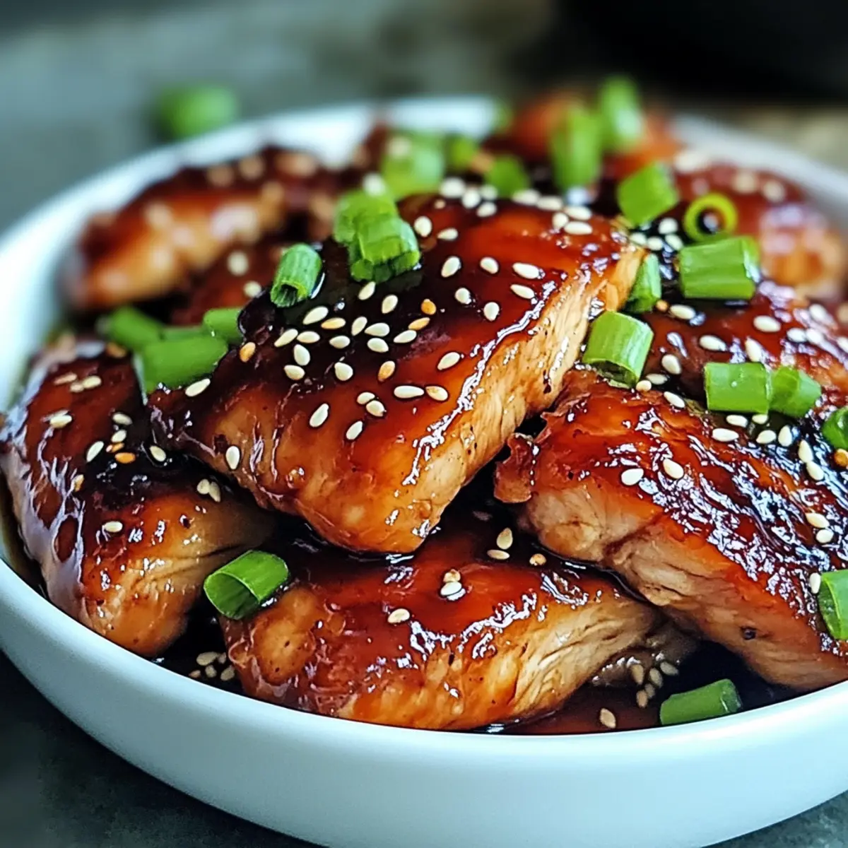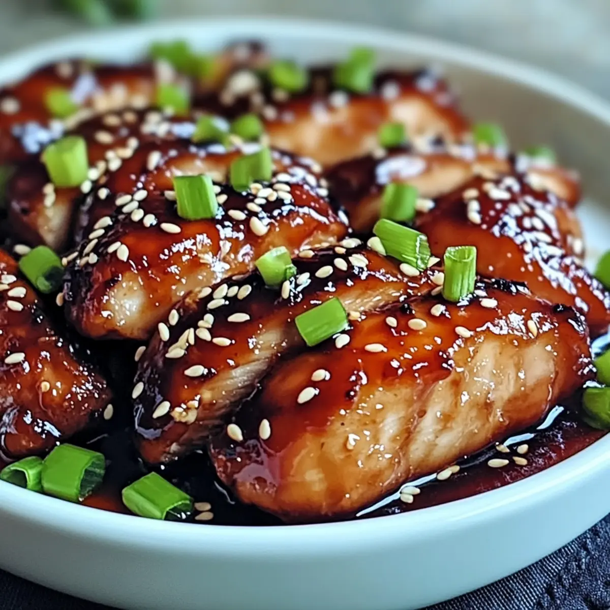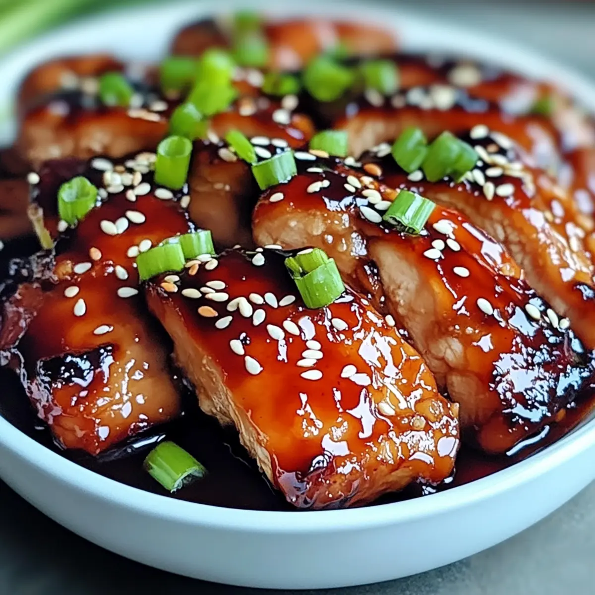 Jump to Recipe Print RecipeAs I was reminiscing about my last trip to a bustling night market, the vibrant scents of sizzling meats and sweet sauces floated back to me. That’s when I knew I had to recreate the magic of Savory Char Siu Chicken right in my kitchen. This delightful recipe not only brings the irresistible flavors of Cantonese cuisine to your table, but it does so with minimal fuss. Perfect for busy weeknights, it’s a tantalizing quick option that’s sure to impress friends and family alike. Plus, with its meal prep-friendly nature, you can whip it up ahead of time for those days when cooking feels like a marathon. Can you smell the mouthwatering aroma yet? Let’s dive into making this culinary gem! Why is Savory Char Siu Chicken a Must-Try? Quick and Easy: This recipe is designed for busy weeknights, allowing you to enjoy gourmet flavors without the fuss. Flavor Explosion: With its sticky, sweet-umami marinade, each bite transports you to the heart of Cantonese cuisine. Meal Prep Ready: You can marinate the chicken in advance, making it an ideal option for meal prep—just pop it in the oven when ready! Crowd-Pleasing Delight: Perfect for both family dinners and gatherings, this dish is sure to impress friends and family alike. Versatile Options: Feel free to customize by swapping chicken thighs for breasts or adding chili flakes for a spicy twist! Experience this culinary delight alongside dishes like Huli Huli Chicken or pair it with Chicken Bacon Ranch for an expansive feast! Savory Char Siu Chicken Ingredients For the Chicken • Chicken Thighs – The star of the dish, providing juicy and tender meat. For the Marinade • Hoisin Sauce – Offers delightful sweetness; can be homemade for a personal touch. • Soy Sauce – Adds umami; substitute coconut aminos for a soy-free option. • Oyster Sauce (optional) – Enhances the flavor complexity; can be omitted if necessary. • Honey or Maple Syrup – Balances flavors with sweetness; agave syrup works as an alternative. • Shaoxing Wine or Dry Sherry – Elevates the taste; replace with a mix of chicken broth and vinegar if unavailable. • Sesame Oil – Introduces a nutty aroma; substitute with another neutral oil if needed. • Five-Spice Powder – Essential for authentic flavor; highly recommended. • Brown Sugar – Contributes to caramelization; can be replaced by white sugar. • Garlic (minced) – Infuses the dish with warm aromatics; use freshly minced for best flavor. • Ginger (grated) – Adds a subtle kick; ground ginger can substitute if fresh is unavailable. • Red Food Coloring (optional) – For vibrant color; optional to skip without losing flavor. Experience the magic of Savory Char Siu Chicken as it fills your kitchen with tempting aromas and transforms your weeknight dinners! Step‑by‑Step Instructions for Savory Char Siu Chicken Step 1: Marinade Preparation In a mixing bowl, combine all marinade ingredients—hoisin sauce, soy sauce, oyster sauce, honey or maple syrup, Shaoxing wine, sesame oil, five-spice powder, brown sugar, minced garlic, grated ginger, and optional red food coloring. Whisk the mixture until smooth and well-blended. This aromatic marinade is the key to the irresistible flavor of your Savory Char Siu Chicken, so ensure everything is mixed thoroughly. Step 2: Chicken Marination Take the chicken thighs and fully coat them with the marinade, ensuring every inch is covered in flavor. Place the marinated chicken in a sealed container or a zip-top bag, making sure it’s tightly sealed to lock in the juices. Refrigerate for at least 4 hours, but preferably overnight. This allows the flavors to penetrate deep into the meat, resulting in a luscious, savory experience when cooked. Step 3: Oven Preparation When you’re ready to cook, preheat your oven to 400°F (200°C). While the oven heats, prepare a baking tray by lining it with aluminum foil for easy cleanup and placing a wire rack on top. This setup will allow the heat to circulate around the chicken, giving you that beautifully caramelized exterior that makes Savory Char Siu Chicken so delightful. Step 4: Baking Once the oven is preheated, take the chicken thighs out of the marinade and place them on the wire rack. Bake the chicken for approximately 25-30 minutes, or until the internal temperature reaches 165°F (75°C). Keep an eye on it as the chicken cooks; it should have a beautiful glossy glaze and be slightly charred on the edges, indicating it’s cooked to perfection. Step 5: Basting During the last stages of baking, baste the chicken with the reserved marinade every 10 minutes. This not only enhances moisture but also builds a rich glaze that clings beautifully to the skin. Continue this process until the chicken is fully cooked, ensuring each basting adds an extra layer of flavor to your Savory Char Siu Chicken. Step 6: Broil for Finish When the chicken is nearly done baking, switch your oven to broil mode and let the chicken broil for the last 5 minutes of cooking. This step is crucial for that final touch—creating a caramelized surface that brings the dish to life. Watch closely to prevent burning, as the high heat can quickly turn from beautifully charred to overdone. Step 7: Serving Once out of the oven, allow the chicken to rest for a few minutes on the wire rack. This will help the juices redistribute, keeping it juicy and tender. After resting, slice the chicken into pieces and serve warm, optionally garnishing with sesame seeds or sliced green onions for an appealing presentation that complements the wonderful flavors of your Savory Char Siu Chicken. Storage Tips for Savory Char Siu Chicken Fridge: Store leftovers in an airtight container for up to 3 days, preserving the flavors and moisture of your Savory Char Siu Chicken. Freezer: If you want to keep it longer, freeze portions in freezer-safe bags for up to 3 months. Ensure they are well-sealed to prevent freezer burn. Reheating: To reheat, place