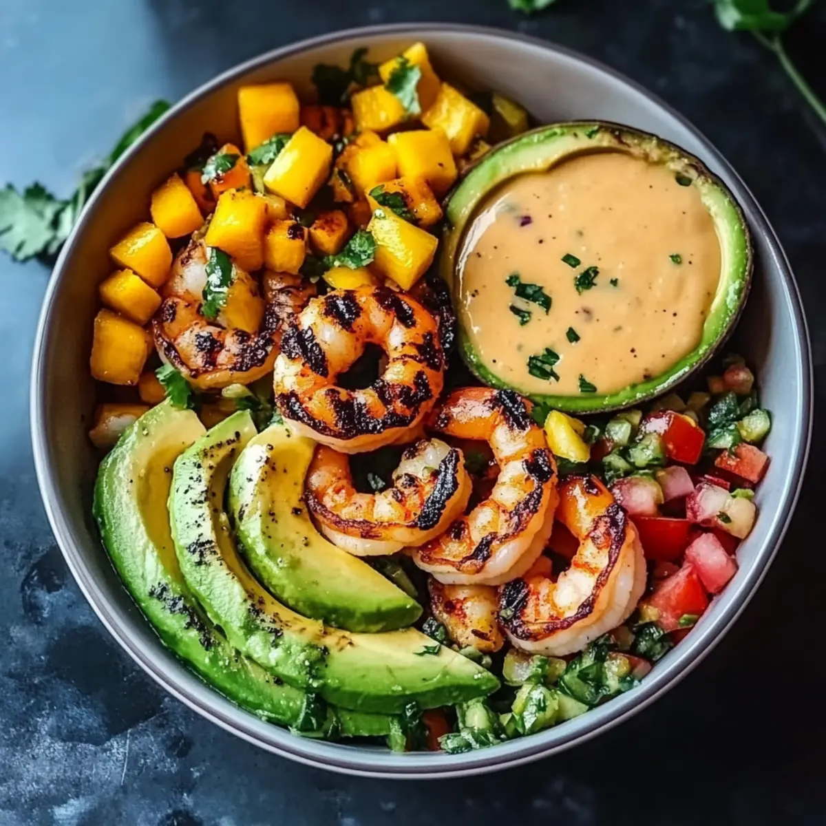 Jump to Recipe Print RecipeAs I stood in my kitchen, the tantalizing smell of grilled shrimp mingled with the scent of fresh mango and zesty lime, transforming my weeknight routine into a mini culinary escape. These Shrimp and Avocado Bowls with Mango Salsa & Lime-Chili Sauce are not just a feast for the eyes; they’re a healthy, satisfying meal that brings a burst of summer vibes straight to your table. Packed with protein and vibrant flavors, this dish is effortless to prepare yet impressive enough for unexpected guests. Plus, you can customize it with your favorite toppings or substitutions to fit any dietary needs. So, are you ready to whip up this fresh and flavorful meal that will leave you craving more? Why are Shrimp and Avocado Bowls a Must-Try? Freshness at its finest: Bursting with vibrant tropical flavors, these bowls are a quick escape to summer dining. Easy to prepare: In under 30 minutes, you can create a delicious and nourishing meal without the fuss—perfect for busy weeknights! Crowd-pleaser: Whether you’re enjoying a cozy dinner alone or entertaining guests, this recipe is impressively versatile and sure to satisfy all palates. Nutritional boost: Packed with protein from the shrimp and healthy fats from the avocado, this dish is an excellent choice for anyone looking to indulge without guilt. Customizable: Feel free to substitute shrimp for grilled chicken in my delightful Cheesy Chicken Enchiladas or opt for tofu for a vegan twist—it’s all about making it yours! Colorful presentation: The vibrant hues of mango salsa and creamy avocado make your plate look as good as it tastes, making it perfect for those Instagram moments! Shrimp and Avocado Bowls Ingredients For the Shrimp • Shrimp – Use large or jumbo, preferably wild-caught for the best smoky flavor. • Olive Oil – Helps to marinate the shrimp and adds richness. • Garlic Powder – A delightful seasoning to enhance the shrimp’s flavor. • Paprika – Adds a lovely smoky taste and color to the shrimp. • Salt – Essential for bringing out the natural flavors of the shrimp. For the Salsa • Mango – Ripe mangoes provide the tropical sweetness that makes this dish shine. • Tomatoes – Use fresh, ripe tomatoes for that extra punch of flavor and acidity. • Red Onion – Offers just the right amount of crunch; substitute with green onions for a milder touch. • Cilantro – Adds a bright, herbaceous note; feel free to omit if you’re not a fan. • Lime Juice – Fresh lime juice brightens up both the salsa and sauce. For the Sauce • Greek Yogurt or Mayo – This creamy base can be swapped for dairy-free yogurt to keep it vegan. • Chili Sauce or Sriracha – Start with a small amount and adjust to your spice comfort level. • Lime Juice – A must-have for that zesty kick in the creamy dressing. For Assembly • Cooked Rice – Use jasmine, brown, or even cauliflower rice for a healthy, gluten-free option. • Avocado – Look for ripe avocados to bring a luscious creaminess that balances all the flavors. These Shrimp and Avocado Bowls with Mango Salsa & Lime-Chili Sauce are not only quick to prepare but also a feast for the eyes, bursting with nutrition and color! Step‑by‑Step Instructions for Shrimp and Avocado Bowls with Mango Salsa & Lime-Chili Sauce Step 1: Marinate Shrimp Begin by placing your shrimp in a bowl and drizzling them with olive oil, followed by a sprinkle of garlic powder, paprika, and salt. Toss everything well to ensure the shrimp are evenly coated. Allow them to marinate for about 15 minutes at room temperature, which will intensify their flavors and prepare them for grilling. Step 2: Prepare Salsa While the shrimp is marinating, finely dice the ripe mango, tomatoes, red onion, and cilantro. In a mixing bowl, combine these chopped ingredients with fresh lime juice to enhance the salsa’s flavors. Stir gently and let the mixture chill in the refrigerator for at least 10 minutes, allowing the flavors to meld beautifully. Step 3: Grill Shrimp Heat a grill pan or your outdoor grill to medium-high heat—around 400°F (200°C). Once the grill is ready, place the marinated shrimp on it and cook for about 2–3 minutes on each side. Look for the shrimp to turn pink and slightly charred, indicating they are cooked through and ready to elevate your Shrimp and Avocado Bowls. Step 4: Make Sauce In a small bowl, combine the Greek yogurt (or mayo) with fresh lime juice and your choice of chili sauce or Sriracha. Use a whisk or spoon to blend the ingredients together until the sauce is smooth and creamy. Taste and adjust the spice level as needed, ensuring a zesty kick that complements your Shrimp and Avocado Bowls perfectly. Step 5: Assemble Bowls To create your Shrimp and Avocado Bowls, start by spooning a generous amount of cooked rice into each bowl as the base. Arrange the grilled shrimp around the edges, then add sliced avocado next to them. Finally, top everything with the chilled mango salsa and drizzle your creamy lime-chili sauce over the entire dish to tie all the flavors together beautifully. Expert Tips for Shrimp and Avocado Bowls Choose Quality Shrimp: Opt for wild-caught shrimp whenever possible. They have better flavor and texture compared to farmed varieties. Perfectly Ripe Avocados: Check for slight softness when gently pressed to ensure your avocados are ripe and creamy, balancing the dish beautifully. Chill Your Salsa: Allowing the mango salsa to chill enhances its flavors. Don’t skip this step—it’s key to achieving that fresh taste! Watch the Grill: Grill shrimp just until they are pink and opaque; overcooking can make them rubbery. Aim for about 2–3 minutes per side. Customize Your Spice: Adjust the chili sauce in your lime-chili sauce to suit your palate. Start small and build up to your preferred heat level. Store Wisely: Keep leftover components separate in the fridge for up to two days. This preserves freshness. Enjoy your Shrimp and Avoca