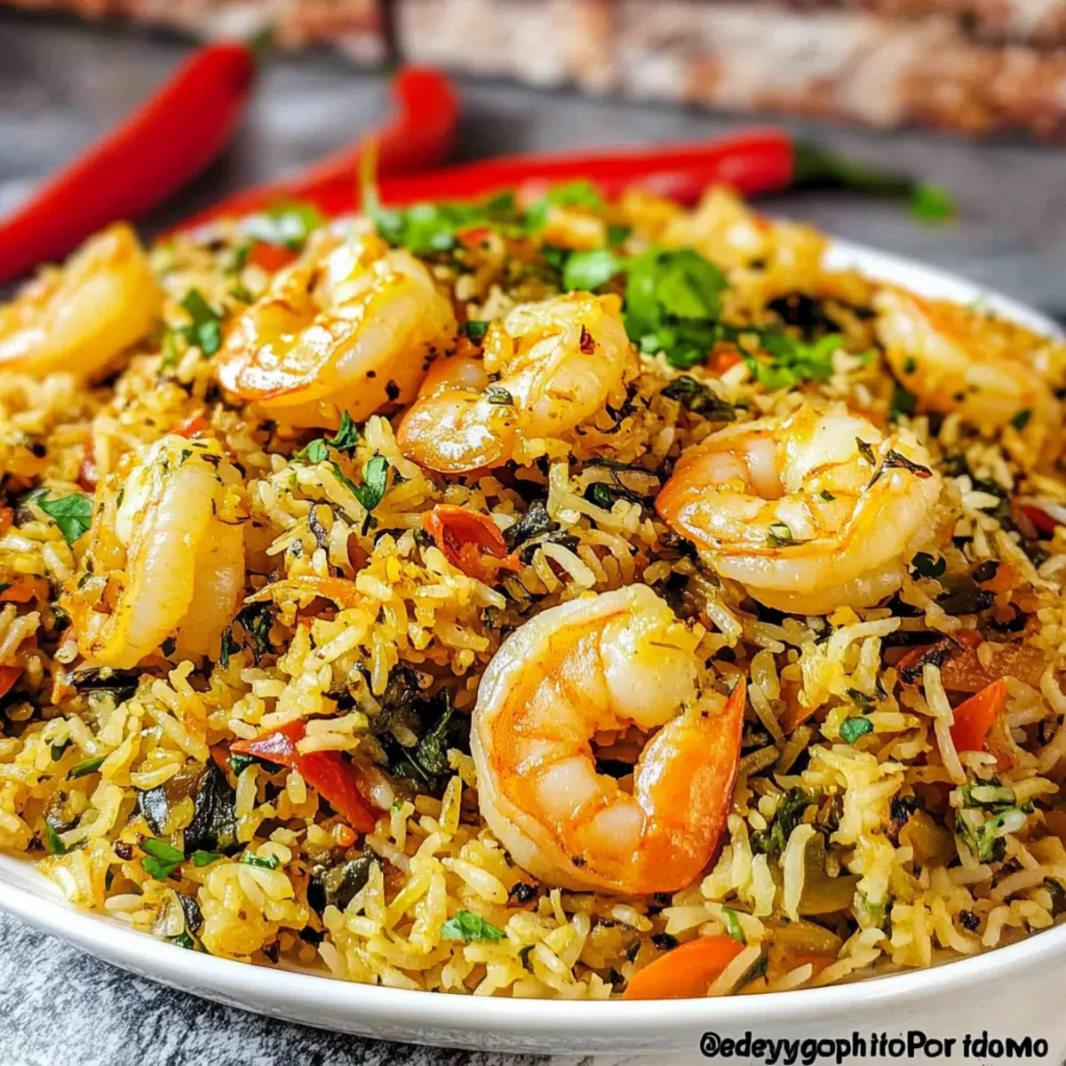 Jump to Recipe Print RecipeThe aroma of sizzling shrimp and fragrant herbs fills my kitchen, igniting a wave of warmth and nostalgia. Today, I’m excited to share my take on Persian Shrimp Rice with Herbs, or Meygoo Polo, a vibrant dish that transforms a simple dinner into a joyful family feast. This recipe brings together a delightful mix of textures and flavors, effortlessly showcasing brown rice and quinoa for a health-conscious twist without sacrificing that classic fluffy basmati feel. Perfect for busy weeknights, it offers quick prep and the satisfaction of serving a gourmet meal that’s gluten-free and high in protein. Packed with wholesome ingredients and a burst of culinary tradition, it’s bound to become a staple in your home. Ready to dive into a dish that’s as nourishing as it is delicious? Let’s get cooking! Why is Meyergoo Polo so special? Unique Flavors: This dish combines the aromatic goodness of shrimp with a vibrant medley of herbs and spices, delivering an unforgettable taste experience. Nutrient-Packed: Infusing brown rice and quinoa not only enhances the traditional basmati texture but also boosts the protein content, making it a wholesome meal. Quick & Easy: Perfect for busy weeknights, this simple recipe offers gourmet results without hours of preparation, just like our Sticky Chicken Rice. Family-Friendly: Everyone will love the colorful presentation and delightful flavors, making it a fantastic choice for family dinners. Versatile Ingredient Substitutions: With options like chicken or tofu, you can easily adapt the recipe to suit your dietary preferences or what you have on hand! Shrimp Rice with Herbs Ingredients • Elevate your meal with these delightful ingredients! For the Rice Basmati Rice – The base grain provides a fluffy texture; rinse it before use to remove excess starch. Brown Basmati Rice – Adds whole grain goodness for extra fiber and nutrients while complementing the white rice’s texture. Quinoa – A protein-rich alternative that enhances the health profile; can be used in place of white rice for a nutritious boost. For the Flavor Base Olive Oil – Used for sautéing, it adds richness; feel free to substitute with vegetable oil if preferred. Onion – Adds a sweet and savory depth; make sure to sauté until golden for maximum flavor. Garlic – Provides aromatic goodness; mincing ensures it infuses well into the dish. Red Bell Pepper – Adds color and sweetness; slicing it thinly helps with even cooking. Curry Powder/Advieh – A blend of spices that brings authentic Persian flavor; adjust to your spice preference. Red Pepper Flakes – Introduces a touch of heat; modify the quantity based on your spice tolerance. Turmeric – Lends earthiness and a beautiful golden hue to the dish. Ground Cumin & Black Pepper – Contribute warmth and depth of flavor. For the Fresh Garnish Cilantro – Fresh herb to brighten flavors; parsley is a good substitute if you prefer. Dill – Provides unique, vibrant notes; fresh is ideal, but dried works in a pinch. Green Onions – Add crunch and freshness; chop finely for the best texture. Fenugreek Leaves – Offers distinct flavor; swap dried for fresh if the latter is unavailable. For the Protein and Finish Raw Shrimp – The star of the dish, cleaned and deveined; frozen shrimp can be a convenient alternative. Lemon Juice – Brightness to enhance flavors; always go for fresh for the best taste. Saffron – Adds a luxurious flavor and beautiful coloring; dissolve in warm water before use for optimal infusion. There you have it—each ingredient not only contributes to the remarkable flavor profile of this Shrimp Rice with Herbs but also ensures a nourishing meal for you and your loved ones! Step‑by‑Step Instructions for Shrimp Rice with Herbs Step 1: Cook the Rice Begin by boiling 3¼ cups of water in a large pot. Add a teaspoon of salt and a drizzle of olive oil for flavor. Once boiling, stir in the brown rice and reduce the heat, allowing it to simmer gently for 20 minutes. After this, incorporate the quinoa and basmati rice, cover the pot tightly, and continue simmering for about 20 more minutes until all grains are tender and fluffy. Step 2: Prepare the Shrimp In a separate large skillet, heat a couple tablespoons of olive oil over medium heat. Once hot, add finely chopped onion and sauté until it turns golden brown, about 5 minutes. Then, mix in minced garlic and sliced red bell pepper, cooking for an additional 3-4 minutes until the pepper softens. Finally, toss in the cleaned shrimp and sauté just until pink and opaque, about 4-5 minutes, before removing everything from the skillet and setting aside. Step 3: Season the Mixture In the same skillet, add the curry powder (or advieh), red pepper flakes, turmeric, ground cumin, and black pepper, stirring to release their aromas for about a minute. Then return the shrimp and sautéed vegetables to the skillet, mixing well to coat them in the spices. Add freshly chopped dill, cilantro, and reserved fenugreek leaves for brightness and depth of flavor. Stir everything thoroughly to meld the flavors together beautifully. Step 4: Assemble the Dish In a heavy-bottomed pot, begin layering the shrimp and vegetable mixture over the cooked rice and quinoa blend. Drizzle lemon juice and saffron water on top to infuse aroma and color. Carefully push the layers together, ensuring even distribution, then cover the pot with a tight lid to steam on low heat for 25 minutes. This final step will allow all the flavors to meld wonderfully. Step 5: Serve the Dish Once steaming is complete, gently fluff the shrimp rice with a fork to separate the grains while mixing in the vibrant flavors of the herbs and shrimp. Serve warm, garnished with additional fresh herbs, if desired. This Persian Shrimp Rice with Herbs makes for a colorful, aromatic centerpiece that is sure to delight at your family dinner table. What to Serve with Persian Shrimp Rice? Elevate your meal 