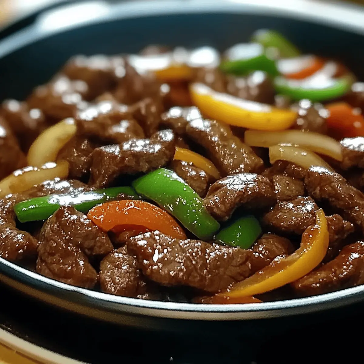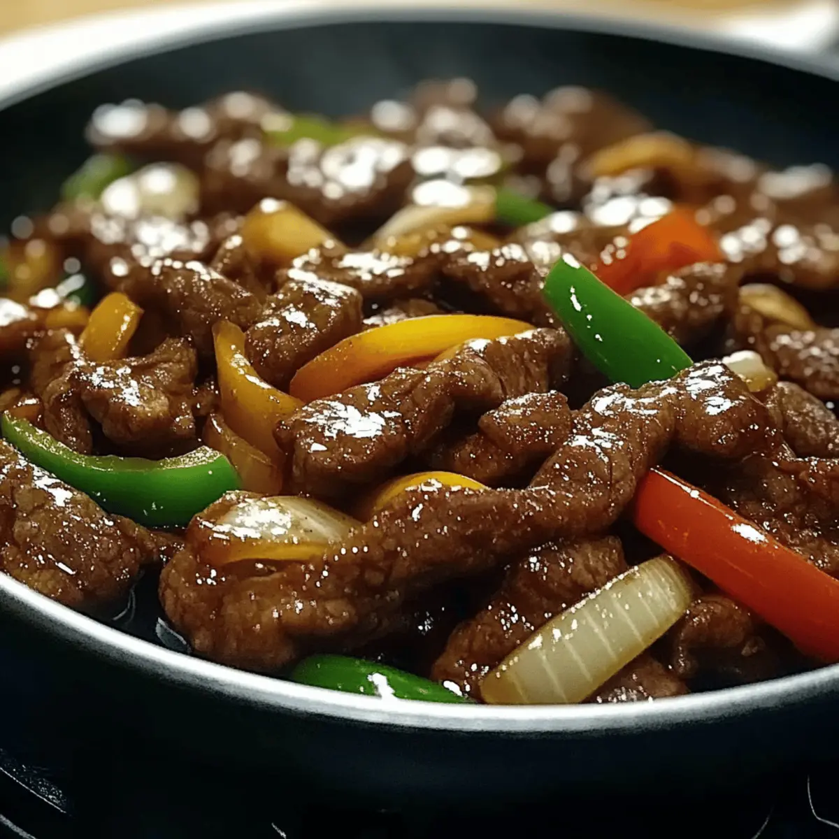 Jump to Recipe Print Recipe“Dinner’s ready!” I just about hear my family cheer as the aroma of Sizzling Chinese Pepper Steak with Onions fills the kitchen. In just 30 minutes, this savory and bold dish transforms an ordinary weekday meal into a celebration of fantastic flavors and vibrant colors. Tender strips of beef mingle with crisp bell peppers and sweet onions, all coated in a rich garlic-ginger sauce that makes this recipe a true crowd-pleaser. Plus, it’s customizable! Toss in your favorite veggies or switch the protein to chicken for a lighter twist. Whether you’re seeking a quick dinner solution or craving something hearty yet satisfying, this quick stir-fry has you covered. Are you ready to bring the taste of takeout home? Let’s get cooking! Why is This Recipe a Must-Try? Quick Prep: In just 30 minutes, you’ll have a delicious meal on the table, perfect for busy weeknights. Bold Flavors: The fusion of garlic, ginger, soy, and oyster sauce creates a mouthwatering, savory experience. Customizable Options: Easily tailor the dish by substituting chicken for beef or adding your favorite vegetables like snap peas or mushrooms. Crowd-Pleaser: Impress family and friends with a dish that rivals takeout, ensuring everyone leaves the table satisfied. Nutrient-Rich: Packed with vibrant veggies, this dish balances flavor and nutrition, making it a wholesome choice. For more quick dinner ideas, check out my Balsamic Steak Gorgonzola or Mozzarella Pepperoni Croissant recipes! Sizzling Chinese Pepper Steak with Onions Ingredients For the Beef • Beef strips – Use flank steak, sirloin, or ribeye for the best flavor. • Cornstarch – Marinate the beef with this to keep it tender while cooking. For the Vegetables • Bell peppers – Choose any color for added crunch and sweetness. • Sweet onions – Yellow or white onions add a lovely aromatic quality. For the Sauce • Soy sauce – Adds a rich umami depth; substitute with tamari for a gluten-free option. • Oyster sauce – Provides complex flavor; can be replaced with additional soy sauce mixed with hoisin or Worcestershire sauce if needed. • Garlic – Fresh garlic enhances the sauce’s flavor, but powdered can work in a pinch. • Ginger – Fresh ginger is recommended for a burst of zest in the sauce. For Cooking • Peanut oil/vegetable oil – Ideal for stir-frying due to its high smoke point; avocado oil is a great alternative. This Sizzling Chinese Pepper Steak with Onions is perfect for a quick, delicious dinner that delivers bold flavors with every bite! Step‑by‑Step Instructions for Sizzling Chinese Pepper Steak with Onions Step 1: Prep Ingredients Begin by slicing your beef strips into thin, uniform pieces, around 1/4-inch thick, to ensure even cooking. Next, chop your bell peppers and sweet onions into bite-sized pieces. In a small bowl, whisk together soy sauce and cornstarch to create a marinade for the beef. This step is crucial to infuse flavor and keep the beef tender while cooking. Step 2: Marinate Place the sliced beef into the marinade and toss to coat evenly. Let it sit for at least 10 minutes to absorb the flavors while the cornstarch works its magic. Meanwhile, prepare your stove and have your cooking oil ready. This marinating step is essential as it enhances the taste of your Sizzling Chinese Pepper Steak with Onions. Step 3: Cook Onions Heat a large skillet or wok over medium-high heat and add 2 tablespoons of peanut oil. Once the oil is shimmering, toss in the chopped onions. Stir-fry them for about 2-3 minutes until they become translucent and fragrant. Remove the onions from the pan and set them aside; this will prevent overcooking while you prepare the beef. Step 4: Sear Beef Increase the heat to high and add the marinated beef to the pan, spreading it out for even cooking. Stir-fry for approximately 2-3 minutes until the beef is browned and just cooked through. The high heat is key here; it ensures your Sizzling Chinese Pepper Steak remains tender and flavorful without becoming tough. Step 5: Add Peppers Now that the beef is perfectly seared, toss in your chopped bell peppers. Sauté them for about 2 minutes, mixing well with the beef until they begin to soften but still retain some crunch. This vibrant addition not only enhances the dish visually but also contributes to the overall texture of your Sizzling Chinese Pepper Steak with Onions. Step 6: Make Sauce In a small bowl, combine minced garlic, grated ginger, soy sauce, oyster sauce, and a splash of water for a balanced sauce. Pour this mixture over the beef and bell peppers in the skillet. Stir well to ensure everything is coated evenly. Cook for an additional 1-2 minutes until the sauce thickens slightly and all ingredients are heated through, creating that savory, delicious flavor. Step 7: Combine & Serve Finally, return the cooked onions to the skillet and mix everything together. Ensure the onions are heated through and everything is well combined. Serve your Sizzling Chinese Pepper Steak with Onions hot over fluffy white rice or egg noodles for a complete meal that’s sure to impress your family and friends! How to Store and Freeze Sizzling Chinese Pepper Steak with Onions Fridge: Store leftovers in an airtight container for up to 3 days. This will keep your Sizzling Chinese Pepper Steak with Onions fresh and flavorful. Freezer: For longer storage, freeze the dish in an airtight container for up to 3 months. Allow it to cool completely before freezing to maintain texture. Reheating: When ready to enjoy, thaw in the fridge overnight and gently reheat in a pan over low heat, adding a splash of water or broth to prevent dryness. Serving Tip: For best results, serve immediately after reheating for a dish that tastes just like it was freshly made! Expert Tips for Sizzling Chinese Pepper Steak with Onions Quick Cooking: Always cook the beef over high heat to ensure a tender texture. Avoid overcrowding the pan for even cooking. Cu