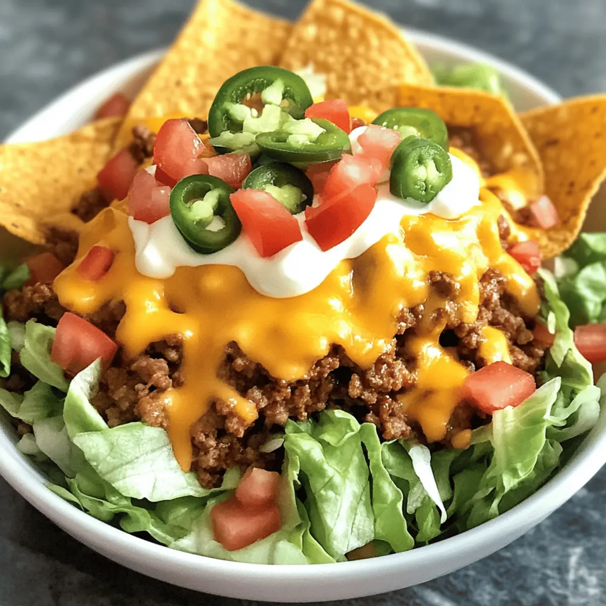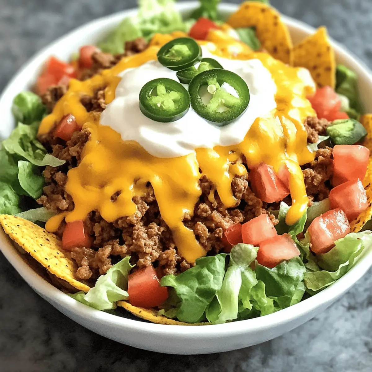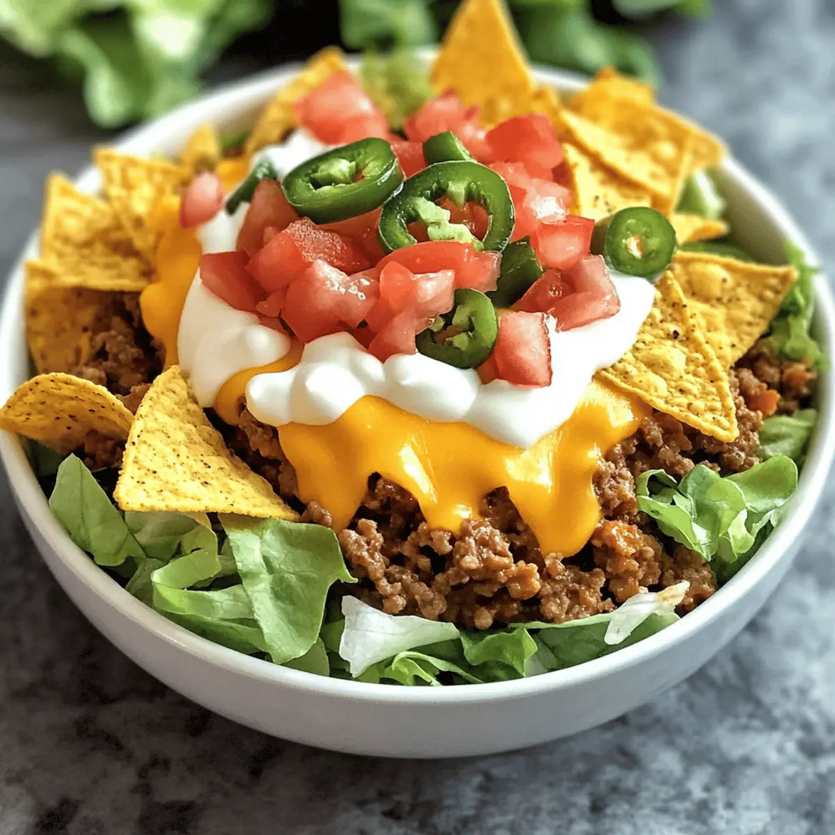 Jump to Recipe Print RecipeAs I stirred the savory mix in my slow cooker, the rich aroma of cumin and chili wafted through my kitchen, instantly transporting me to a cozy Tex-Mex diner. These Slow Cooker Smothered Fritos Taco Bowls are more than just comfort food; they’re a delightful mishmash of layers, where creamy cheese and seasoned ground beef nestle atop a crunchy bed of Fritos. Perfect for busy weeknights, this meal takes mere minutes to prep, allowing you time to unwind while it cooks. Plus, the customizable toppings make it a hit for gatherings—everyone can personalize their bowl just the way they like it! Curious to dive into this satisfying dish that’s sure to become a weekly staple in your home? Let’s get cooking! Why are Slow Cooker Taco Bowls Amazing? Simplicity at its Best: With just a few minutes of prep, you can transform basic ingredients into a hearty meal that cooks itself while you go about your day. Rich, Flavorful Layers: The blend of savory beef, creamy cheese, and spicy Ro-Tel creates a tantalizing flavor experience that warms the soul. Customizable Delight: Your dinner can be a taco bar in disguise! Let your guests pick from a variety of toppings—sour cream, fresh avocado, or spicy jalapeños for a personal touch. Crowd-Pleasing Comfort: Perfect for family dinners or gatherings, this dish caters to all palates, ensuring everyone leaves happy and satisfied. Easy Storage and Reheating: Leftovers are a breeze to store and reheat, making it an ideal choice for meal prep. Keep those Fritos on the side for when it’s time to eat. Enjoy a comforting bowl of this Tex-Mex delight that’s bound to become a family favorite. For more tasty options, check out these Savory Slow Cooker or Chicken Rice Bowls recipes! Slow Cooker Smothered Fritos Taco Bowls Ingredients • Get ready to make a comforting masterpiece! For the Beef Mixture Ground Beef – The main protein that brings a hearty base; can swap with ground turkey or chicken for a leaner choice. Taco Seasoning Mix – Offers essential Tex-Mex flavor; try a homemade mix to avoid processed ingredients. Ro-Tel (diced tomatoes with green chilies) – Adds moisture and a touch of heat; choose hot Ro-Tel for an extra spicy kick. For the Creamy Base Cheddar Cheese Soup – Provides creaminess and a rich flavor foundation; consider a homemade cheese sauce for a personal touch. Cream of Mushroom Soup – Enhances the dish’s creaminess and depth; can be replaced with an alternative cream soup based on dietary needs. Milk – Smooths out the soup mixture to the perfect consistency; feel free to use plant-based milk for lactose-free options. For the Toppings Shredded Cheddar Cheese – A melty layer on top to satisfy cheese lovers; go for reduced-fat cheese for a lighter option. Fritos Corn Chips – The crunchy base for serving this delightful dish; substitute with fresh tortilla chips for a twist. Optional Toppings – Sour cream, shredded lettuce, diced tomatoes, sliced jalapeños, chopped onions, avocado, and salsa; tailor your bowl with your favorites! Dive into these Slow Cooker Smothered Fritos Taco Bowls and enjoy a comforting meal your family will love! Step‑by‑Step Instructions for Slow Cooker Smothered Fritos Taco Bowls Step 1: Brown the Beef In a skillet over medium heat, cook 1 pound of ground beef until browned, approximately 6–8 minutes. Use a wooden spoon to break the meat into smaller pieces as it cooks, ensuring it’s evenly browned. Once fully cooked, drain any excess fat to keep your Slow Cooker Smothered Fritos Taco Bowls from becoming too greasy. Step 2: Add Seasoning Stir in your preferred taco seasoning mix and a can of Ro-Tel diced tomatoes with green chilies into the browned beef. Let this mixture simmer for about 3–5 minutes, allowing the flavors to meld and the moisture to reduce slightly. You’ll know it’s ready when the mixture is fragrant and bubbling gently. Step 3: Combine Soups In your slow cooker, combine 1 can of cheddar cheese soup, 1 can of cream of mushroom soup, and ½ cup of milk. Stir well until the ingredients are thoroughly mixed and smooth, creating a creamy base that will envelop the beef. This should take around 1–2 minutes of stirring, ensuring no lumps remain. Step 4: Mix in Beef Add the seasoned beef mixture to the slow cooker, incorporating it into the creamy soup base. Mix in 1 cup of shredded cheddar cheese until evenly distributed. You want to see a uniform blend as the cheese begins to melt into the creamy mixture, enhancing the comforting essence of your Slow Cooker Smothered Fritos Taco Bowls. Step 5: Set to Cook Cover your slow cooker and set it to cook on low for 3–4 hours. During this time, the flavors will deepen, and the mixture will heat through completely. Halfway through, give it a gentle stir to ensure everything heats evenly and to avoid hot spots in the slow cooker. Step 6: Serve and Enjoy Once cooking time is complete, your dish should be hot and bubbly, ready to serve. Scoop the mixture generously over a bed of Fritos corn chips in individual bowls. Top each serving with additional shredded cheese and your favorite toppings, such as avocado, sour cream, or jalapeños for a delightful finish to your Slow Cooker Smothered Fritos Taco Bowls. Expert Tips for Slow Cooker Smothered Fritos Taco Bowls Grease Control: Drain the beef well after cooking to prevent your Slow Cooker Smothered Fritos Taco Bowls from becoming too oily and heavy. Even Heating: Stir the mixture halfway through cooking to ensure all ingredients are heated uniformly, especially in slow cookers with hot spots. Crisp Fritos Always: Add the Fritos just before serving to maintain their delightful crunch, keeping the texture perfectly satisfying. Keeping Warm: For gatherings, set your slow cooker to warm after cooking to allow guests to serve themselves whenever they’re ready. Creative Additions: Don’t hesitate to customize! Experiment with different toppings like black