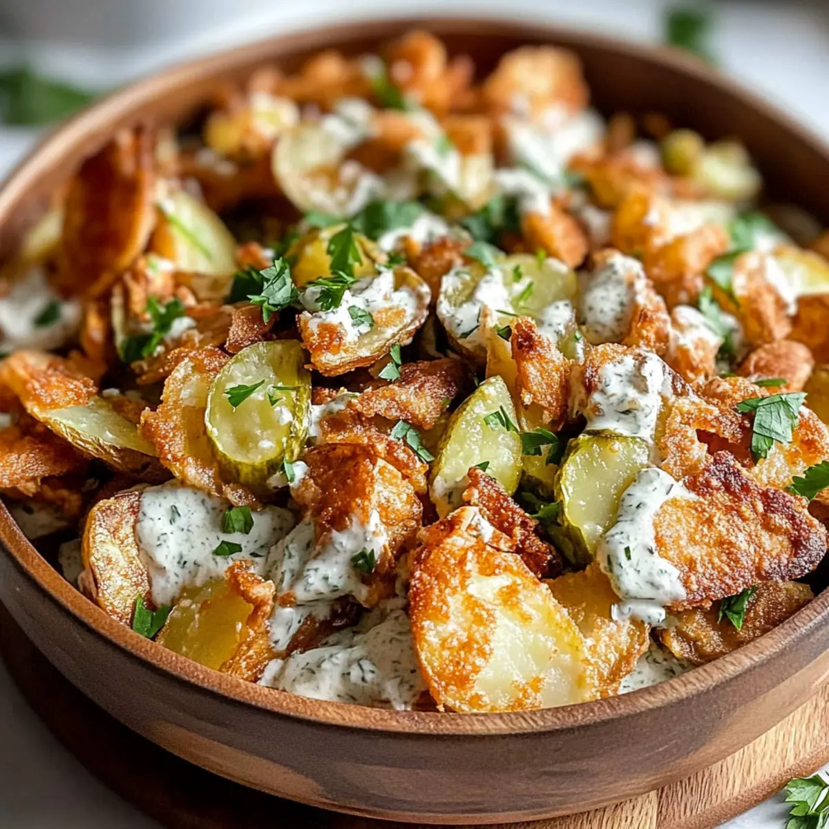 Crispy Smashed Potato Salad with Creamy Tangy Twist