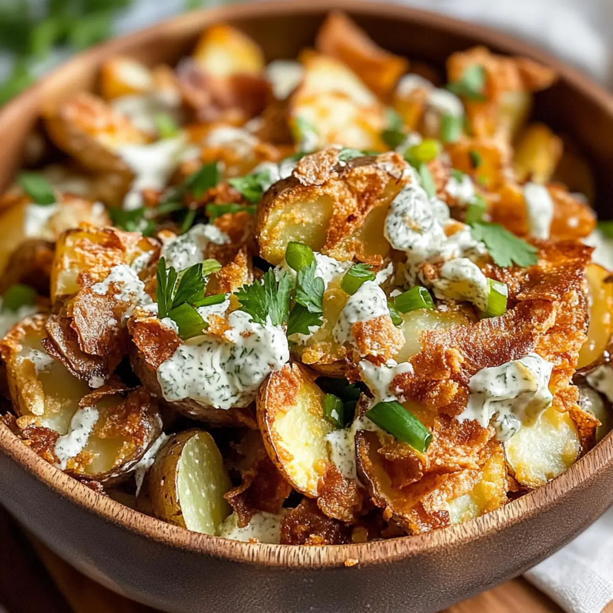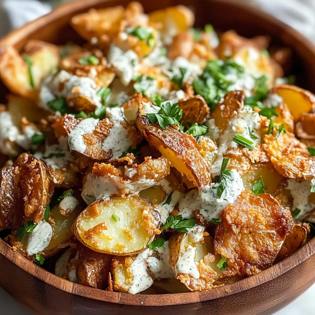 Crispy, Crunchy Delight: The smashed potatoes achieve a perfectly crispy exterior, paired with creamy, tangy dressing that dances on your palate.