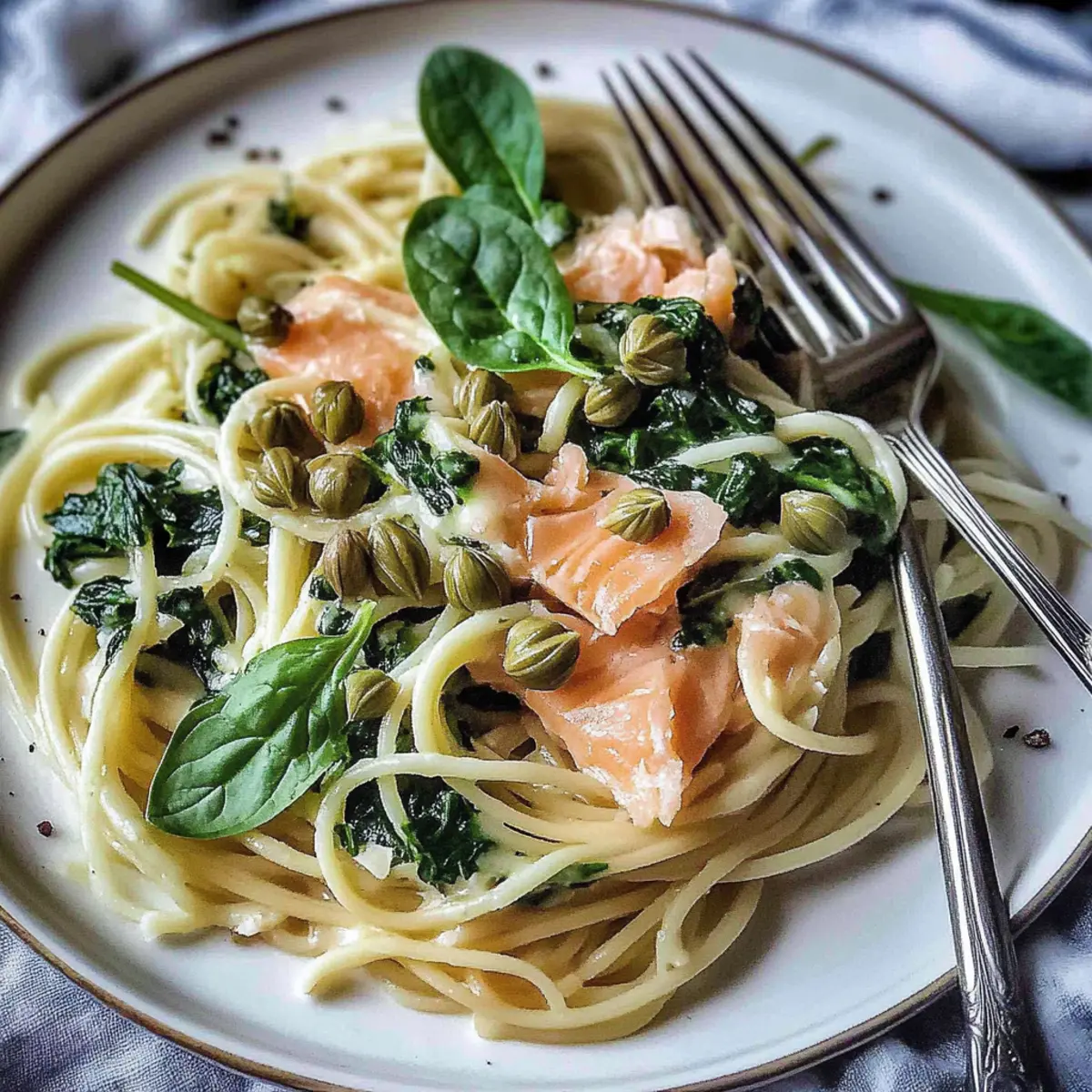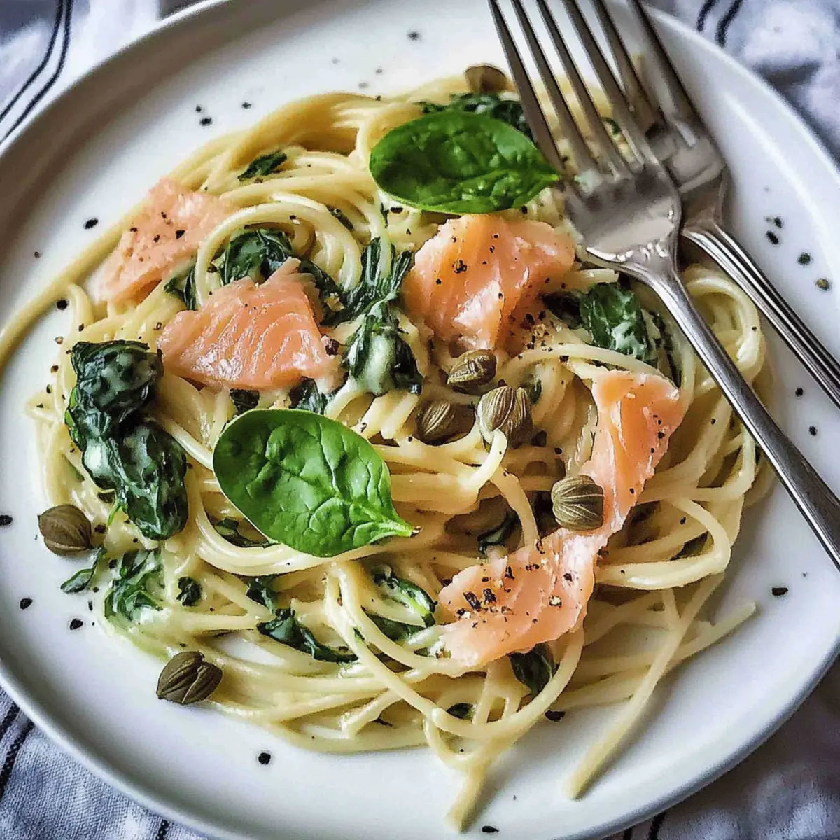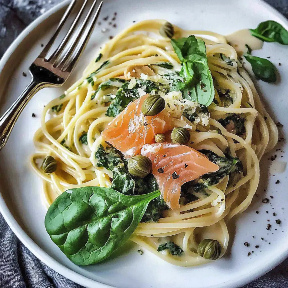 Jump to Recipe Print RecipeTwo evenings ago, I found myself staring at an empty fridge, the remnants of takeout no longer inspiring my dinner plans. That’s when I decided to whip up something quick but impressive: Smoked Salmon Spaghetti with Creamy Spinach Sauce. This dish marries the delicate smokiness of salmon with a luscious creamy sauce that coats perfectly cooked spaghetti, offering an elegant twist on the traditional pasta supper. It’s a dazzling choice for anyone seeking a quick and easy dinner that feels like a treat, while also coaxing a few veggies into the mix. You’ll quickly find that not only is this dish a crowd-pleaser, but it also offers the comfort we all crave at the end of a long day. Are you ready to elevate your weeknight meals? Let’s dive into this delightful recipe! Why is Smoked Salmon Spaghetti a Must-Try? Effortless Elegance: With minimal prep time, this dish elevates your weeknight dinners into something spectacular without much fuss. Flavor Harmony: The rich creaminess beautifully balances the smoky notes of the salmon, with spinach adding a fresh touch and color. Nutritional Boost: Packed with protein and healthy fats, you’re not just eating comfort food—you’re nourishing your body! Versatile Dish: Customize with ingredients like Garlic Butter Salmon flavors or swap in whole-grain pasta for added nutrition. Crowd-Pleaser: Perfect for dinner parties or casual gatherings, it impresses everyone without requiring hours in the kitchen. Elevate your dining experience effortlessly with this delicious and satisfying recipe! Smoked Salmon Spaghetti Ingredients For the Spaghetti • Spaghetti – The base of this dish, providing the perfect foundation for the rich flavors. Feel free to swap in any pasta you love! For the Creamy Sauce • Light Cream – Brings a luxurious consistency to the sauce; substitute with half-and-half or non-dairy cream if preferred. • Reserved Pasta Water – Essential for achieving the right creamy texture; don’t skip this step to bind the sauce beautifully. • Parmesan Cheese – Elevates the flavor profile; freshly grated versions give the best texture. Nutritional yeast is an excellent non-dairy alternative. For the Flavor • Smoked Salmon – Defines the dish with its rich, savory essence; look for wild-caught varieties for the best taste. • Capers – Contributes a briny punch that pairs perfectly with the salmon; olives can be a suitable substitution. • Dill – Offers a fresh, aromatic note; feel free to replace it with parsley or basil based on your preference. • Cracked Pepper – Allows you to season to taste; use freshly cracked for an added kick. For the Green Touch • Spinach Leaves – Adds a nutritional boost and vibrant color; swap in kale or arugula for variety. Now you’re all set to create a delicious plate of Smoked Salmon Spaghetti that promises to satisfy your cravings! Step‑by‑Step Instructions for Smoked Salmon Spaghetti Step 1: Cook the Spaghetti Begin by boiling a large pot of salted water, then add 8 ounces of spaghetti. Cook according to package instructions for about 8-10 minutes, or until al dente, stirring occasionally. While the pasta cooks, keep an eye on it; you want it tender but firm. Once done, reserve 1 cup of the pasta water before draining the spaghetti in a colander. Step 2: Combine Cream and Pasta In a medium pan over low heat, return the drained spaghetti to the pot and pour in the reserved pasta water along with 1 cup of light cream. Stir gently to combine and heat through for about 2-3 minutes. The sauce should start to thicken slightly, coating the pasta with a creamy consistency that will embrace all the flavors of your Smoked Salmon Spaghetti. Step 3: Add Spinach Next, toss in a generous handful of fresh spinach leaves into the creamy pasta. Stir continuously for about 1-2 minutes, allowing the spinach to wilt and soften while blending seamlessly with the spaghetti. The vibrant color of the wilted spinach will elevate the dish visually, promising nourishment alongside delightful flavors. Step 4: Flake the Smoked Salmon Now, gently fold in 4 ounces of smoky, flaky smoked salmon, allowing it to warm through in the residual heat of the pasta. Break the salmon into bite-sized pieces for easy mixing, aiming for an even distribution throughout the dish. This step will introduce a rich, savory backdrop that defines Smoked Salmon Spaghetti, enhancing every bite. Step 5: Plate and Garnish To serve, divide the Smoked Salmon Spaghetti among four plates, ensuring an even distribution of pasta and salmon. Top each serving with a sprinkle of cracked pepper, a generous shower of freshly grated Parmesan cheese, and a scattering of capers for a briny touch. Finally, add a few sprigs of fresh dill to garnish, giving your dish a beautiful presentation. Smoked Salmon Spaghetti Variations Feel free to play with this recipe to match your taste and dietary needs—each variation adds a unique twist! Creamy Vegan Option: Instead of light cream, use cashew cream for a rich vegan sauce that still delivers on flavor. Pesto Twist: For a non-creamy alternative, try a basil and cashew pesto sauce that adds a vibrant, nutty flavor. Extra Veggies: Toss in some cherry tomatoes or sun-dried tomatoes for a pop of sweetness and color in your pasta dish. Whole Grain Delight: Opt for whole-grain spaghetti to increase fiber and nutrients while maintaining that comforting pasta feel. Spice It Up: Add a pinch of red pepper flakes to introduce warmth and heat into the dish. Different Greens: Swap spinach for arugula or kale—each offers a different texture and taste to complement the salmon beautifully. Umami Boost: Incorporate a dash of soy sauce or tamari for an extra layer of umami flavor. Nutty Flavor: Toasted pine nuts or slivered almonds make for a delightful crunchy topping, bringing in a nutty finish to your dish. These tweaks transform your Smoked Salmon Spaghetti into a personalized experien