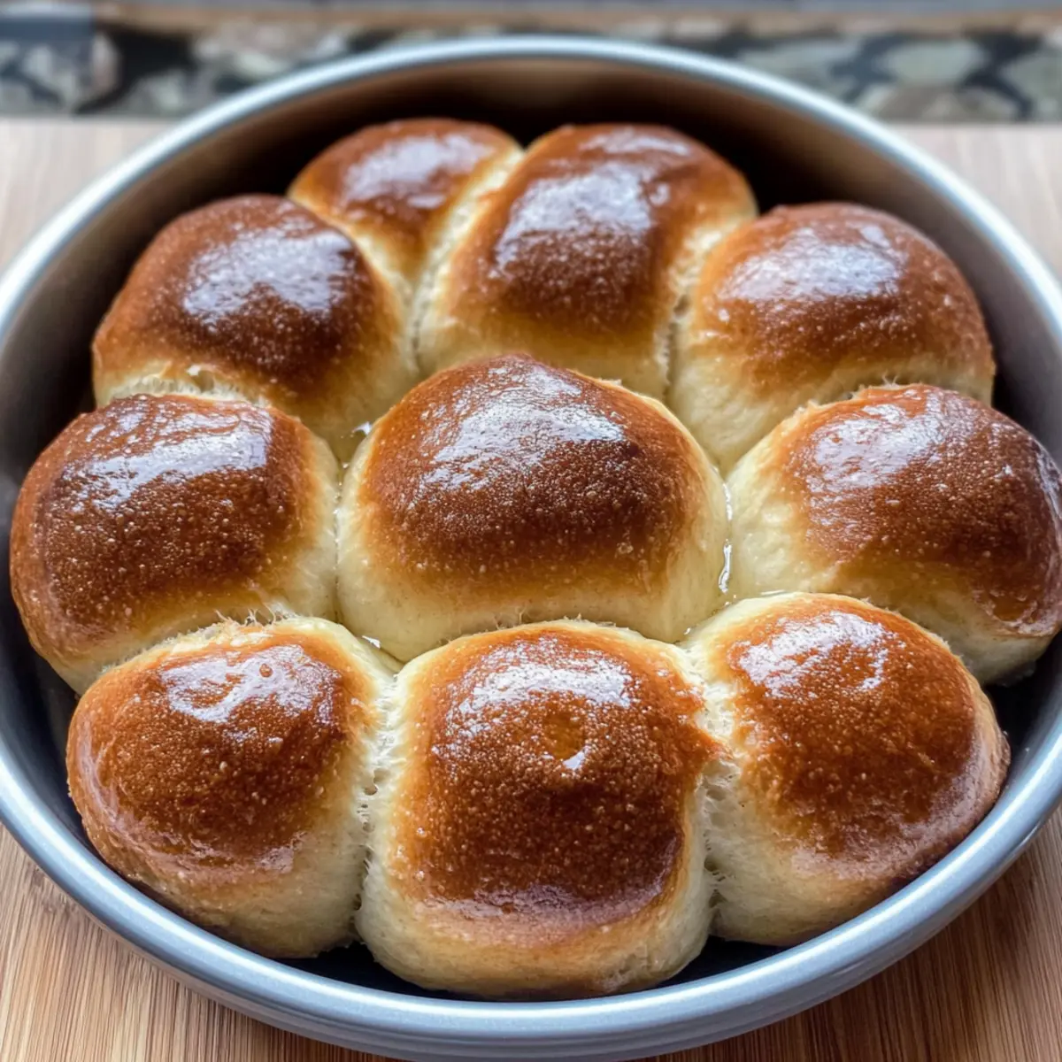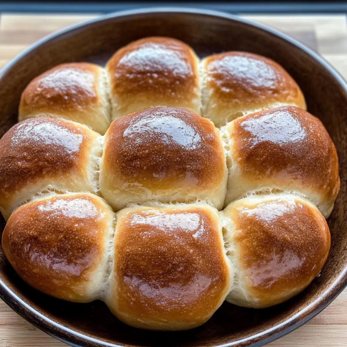 Jump to Recipe Print RecipeThe warm, inviting scent of sourdough dinner rolls baking in the oven has a way of calling us home. With their fluffy texture and tantalizing tang, these rolls are the ultimate comfort food that can elevate any meal, whether it’s a simple weeknight dinner or a festive holiday feast. What’s even better? This recipe for Homemade Sourdough Dinner Rolls caters to both beginners and seasoned bakers, proving that crafting delicious bread from an active sourdough starter is well within reach. Plus, they’re freezer-friendly, so you can enjoy that fresh-baked taste anytime you crave it. Are you ready to knead your way to something extraordinary and fill your kitchen with the enchanting aroma of freshly baked bliss? Why Are Sourdough Dinner Rolls So Irresistible? Unmatched Flavor: The rich, tangy taste of sourdough elevates these dinner rolls to a whole new level of deliciousness. Easy to Make: With simple steps, even novice bakers can create these fluffy delights; no special skills required! Versatile Treat: Perfect as a side for soups, stews, or even as a base for sliders, these rolls fit into any meal seamlessly. Freezer-Friendly: Make a batch ahead of time, freeze, and enjoy fresh-baked goodness whenever the craving strikes! Pair these delightful rolls with a comforting bowl of Chili Lime Dinner or serve alongside some mouthwatering Grilled Cod Roasted. They’ll steal the show at your next family gathering! Sourdough Dinner Rolls Ingredients • Get ready to bake! For the Dough Active Sourdough Starter – This is the heart of your sourdough dinner rolls, providing the necessary leavening and irresistible tang; ensure it’s bubbly and active before use. Strong White Flour – Offers structure and chewiness; you can substitute with bread flour for a chewier bite. Lukewarm Milk – Adds moisture for a soft texture; using whole milk will make your rolls even richer. Salt – Not just for flavor, it helps control fermentation; don’t skip this essential ingredient! Honey – A hint of sweetness that balances the tang; agave nectar or sugar can be a quick substitute. Melted Butter – Contributes to a rich flavor and helps create a beautiful golden crust; brush some on top for an extra treat! Bake these delightful sourdough dinner rolls and watch them become the star of your next meal! Step‑by‑Step Instructions for Fluffy Homemade Sourdough Dinner Rolls Step 1: Activate the Starter Begin by mixing 20g of your active sourdough starter with 80g of room temperature water and 80g of strong white flour. Stir until combined, cover the bowl, and let it sit at room temperature for about 12 hours. This ensures your starter is bubbly and ready to work its magic in your fluffy homemade sourdough dinner rolls. Step 2: Mix the Dough Once your starter is active, combine it in a large mixing bowl with 450g of strong white flour, 250ml of lukewarm milk, 30g of honey, and 10g of salt. Add in 50g of melted butter, and mix until a shaggy dough forms. Knead this mixture by hand or with a stand mixer on medium speed for 6-7 minutes, until the dough becomes smooth and elastic. Step 3: Rest the Dough Cover the dough with a clean kitchen towel or plastic wrap and let it rest in a warm spot for about 1 hour. This resting period allows the gluten to relax, making it easier to shape later. You’ll know it’s ready when the dough has slightly puffed up in volume. Step 4: Stretch-and-Fold Technique After the first resting period, perform the stretch-and-fold technique to strengthen your dough. Grab one side of the dough, stretch it up, and fold it over to the center. Rotate the bowl and repeat this action three times, with 30-minute intervals in between each fold. This helps develop the structure in your sourdough dinner rolls. Step 5: Bulk Fermentation Cover the dough once more and let it rise in a warm spot for about 2-3 hours, or you can opt to refrigerate it overnight for a slower fermentation. The dough should double in size and become noticeably airy. Look for bubbles forming on the surface as an indicator that fermentation is successful. Step 6: Shape the Rolls Once fully risen, turn the dough out onto a lightly floured surface and divide it into 12 equal portions. Shape each portion into a ball by tucking the edges under to create surface tension. Place these shaped balls into a greased baking dish, ensuring they’re snug but not overcrowded, as they’ll expand further during the next rise. Step 7: Final Proofing Cover the shaped rolls again with a towel and let them proof for 2-3 hours, until they have doubled in size. The rolls are ready to bake when they feel light and a gentle poke leaves an indentation that slowly springs back. This indicates optimal fermentation and an airy texture for your sourdough dinner rolls. Step 8: Bake the Rolls Preheat your oven to 200℃ (390℉). Once preheated, place the baking dish in the oven and bake the sourdough dinner rolls for approximately 25 minutes. Keep an eye on them until they turn a beautiful golden brown, indicating they are perfectly baked and ready to be enjoyed. Step 9: Finish with Butter Once baked, remove the rolls from the oven and brush the warm tops generously with melted butter for an added layer of flavor and shine. Let the rolls cool slightly in the pan before serving. Your fluffy homemade sourdough dinner rolls are now ready to be devoured alongside your favorite meals! Make Ahead Options These fluffy homemade sourdough dinner rolls are perfect for busy weeknights and meal prep enthusiasts! You can prepare the dough up to 24 hours in advance by completing the first five steps, then refrigerate the dough overnight to allow for a slow fermentation, which enhances flavor. Once ready to bake, shape the rolls and let them proof for about 2-3 hours at room temperature until doubled in size. If you wish to take them a step further, the shaped rolls can also be covered and frozen for up to three months; just thaw in the fr