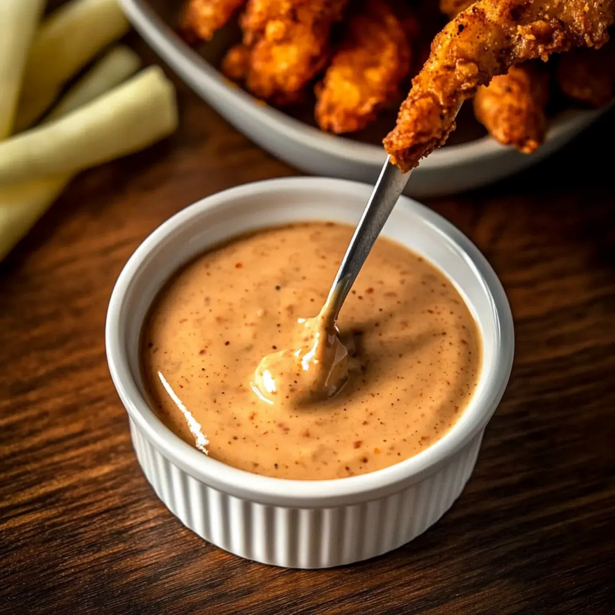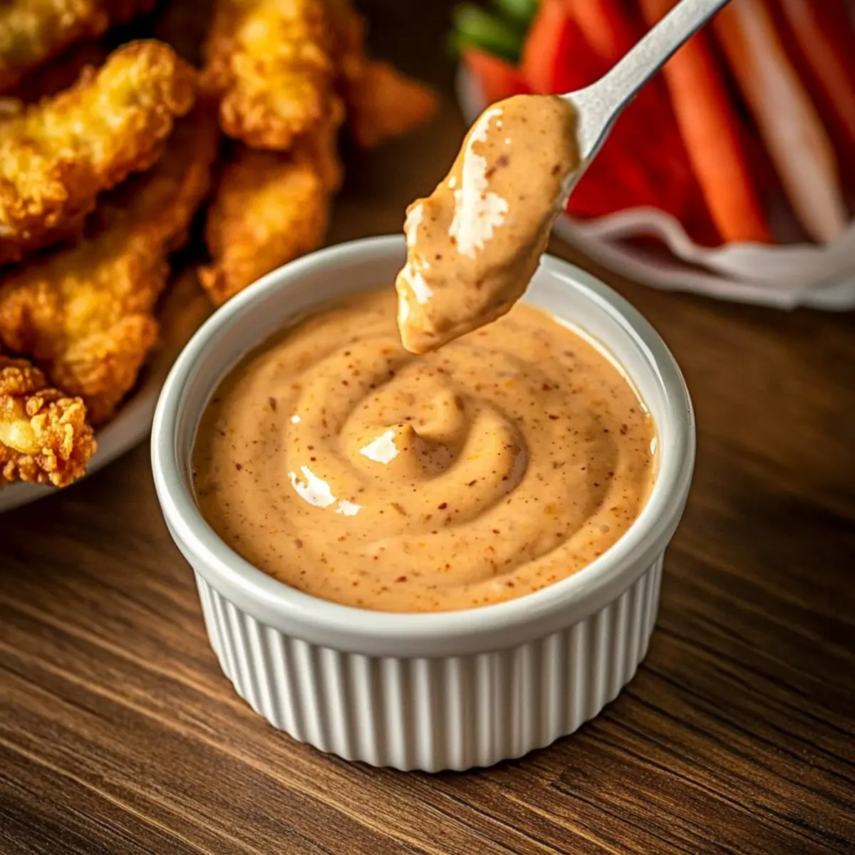 Jump to Recipe Print RecipeAs I stood in my kitchen, the tantalizing aroma of spices wafted through the air, reminding me of my last trip to the South. That’s when I discovered the magic of Southern Comeback Sauce—a creamy, flavorful dip that instantly elevates any meal. With just six simple ingredients and a speedy five-minute prep time, it’s no wonder this sauce has become a staple in gatherings and parties. Whether you’re dipping crispy fried delights or drizzling it over fresh veggies, this versatile sauce is sure to impress. Plus, it’s easily adaptable to your taste, making it perfect for those who love a little kick or want to keep it sweet and mild. Are you ready to whip up this addictive dip and make it the star of your next meal? Why is Southern Comeback Sauce Perfect? Quick Preparation: This Southern Comeback Sauce comes together in just 5 minutes, making it a fantastic option for unexpected guests or busy weeknights. Creamy and Tangy: The perfect blend of mayonnaise, ketchup, and spices creates a rich flavor that will have everyone raving. Versatile Use: Whether you’re pairing it with Southern Fried Shrimp or fresh veggies, it complements a wide variety of dishes. Tailor to Taste: Adjust the heat level easily by modifying the hot sauce—spice it up or keep it mild according to your preference. Crowd-Pleaser: This sauce is sure to be a hit at any gathering, from casual get-togethers to elegant dinners! Southern Comeback Sauce Ingredients For the Base Mayonnaise – Provides creaminess and forms the base; avoid leaving at room temperature. Ketchup – Adds a delightful sweetness and tang; can be reduced for less sweetness. For the Flavor Honey – Offers a natural sweetness; can be substituted with granulated sugar if needed. Hot Sauce – Infuses heat and flavor; adjust to taste—Cholula is recommended for optimal results. Cajun Seasoning – Enhances complexity with its spice; Slap Ya Mama is a favored choice here. Worcestershire Sauce – Contributes depth and umami; essential for balancing the sauce’s flavor. This Southern Comeback Sauce is your new go-to dip for all occasions! Step‑by‑Step Instructions for Southern Comeback Sauce Step 1: Combine the Base Ingredients In a medium mixing bowl, measure out the smooth mayonnaise and tangy ketchup. Use approximately ¾ cup of mayonnaise and ¼ cup of ketchup, ensuring to avoid any lumpy portions. Mix them together until they form a cohesive base that’s creamy and slightly sweet, which should take about 1-2 minutes of gentle stirring. Step 2: Add Sweetness and Spice Next, add in 1 tablespoon of honey and your chosen hot sauce to the mayonnaise and ketchup mixture. This step enhances the sauce’s depth with a bit of sweetness and heat. Stir the ingredients together vigorously for another minute, watching as they blend into a velvety texture that showcases the rich colors of the sauce. Step 3: Incorporate the Seasonings Now, it’s time to bring the flavor profile to life! Sprinkle in 1 teaspoon of Cajun seasoning and 1 teaspoon of Worcestershire sauce. As you mix these in, pay attention to the aroma that starts to fill the air. Continue to whisk for 1-2 minutes until all the ingredients are fully integrated and the sauce reaches a smooth consistency. Step 4: Adjust and Taste Taste your Southern Comeback Sauce and adjust the seasoning to fit your preference. If you’d like more heat, add an additional dash of hot sauce; for sweetness, consider a bit more honey. This is your opportunity to make it truly yours, so take a moment to ensure it meets your flavor desires. Step 5: Chill and Store To allow the flavors to meld beautifully, cover the bowl with plastic wrap and place it in the refrigerator. Aim to chill the sauce for at least 30 minutes before serving. This waiting period will elevate the taste, making it even more delicious when paired with your favorite dishes. Step 6: Serve and Enjoy Once chilled, transfer your Southern Comeback Sauce to a serving bowl. This sauce is best enjoyed with crispy fried foods, fresh veggies, or even as a zesty burger topping. Its vibrant color and aroma will entice your guests, inviting them to dive in and savor every delightful bite! What to Serve with Southern Comeback Sauce This vibrant dip is the perfect companion to elevate your meal experience. Crispy Fried Chicken: Juicy and crispy, the chicken pairs beautifully with the tangy sauce, bringing out the best in both flavors. Veggie Platter: Fresh, colorful vegetables add a crunchy texture that perfectly contrasts the creamy dip, making for a light and delightful treat. Sweet Potato Fries: The sweetness of the fries, combined with the spicy notes of the sauce, creates a mouthwatering balance that’s hard to resist. Corn on the Cob: Slathered in the sauce, this Southern favorite gets a creamy twist that celebrates its natural sweetness. Grilled Shrimp Skewers: The smoky flavor of grilled shrimp unites wonderfully with the sauce, offering a gourmet touch to your summer barbecues. Burgers: Drizzled over a juicy burger, this sauce adds a rich depth of flavor that’s sure to make every bite unforgettable. For a complete meal experience, pair your sauce with a chilled glass of white wine or a refreshing iced tea, enhancing the flavors while keeping the atmosphere casual and inviting. Expert Tips for Southern Comeback Sauce Fresh Ingredients: Always use fresh spices and high-quality mayonnaise for the best flavor. Fresh ingredients elevate the whole Southern Comeback Sauce experience. Adjust to Preference: Don’t hesitate to modify the hot sauce and Cajun seasoning levels to cater to your guests’ tastes, ensuring everyone enjoys this sauce. Chill Time: Allow extra chill time if possible. The flavors meld beautifully after at least 30 minutes, enhancing the taste of your Southern Comeback Sauce. Experiment with Variations: Feel free to try variations, like substituting Greek yogurt for a lighter dip or adding garlic powder 