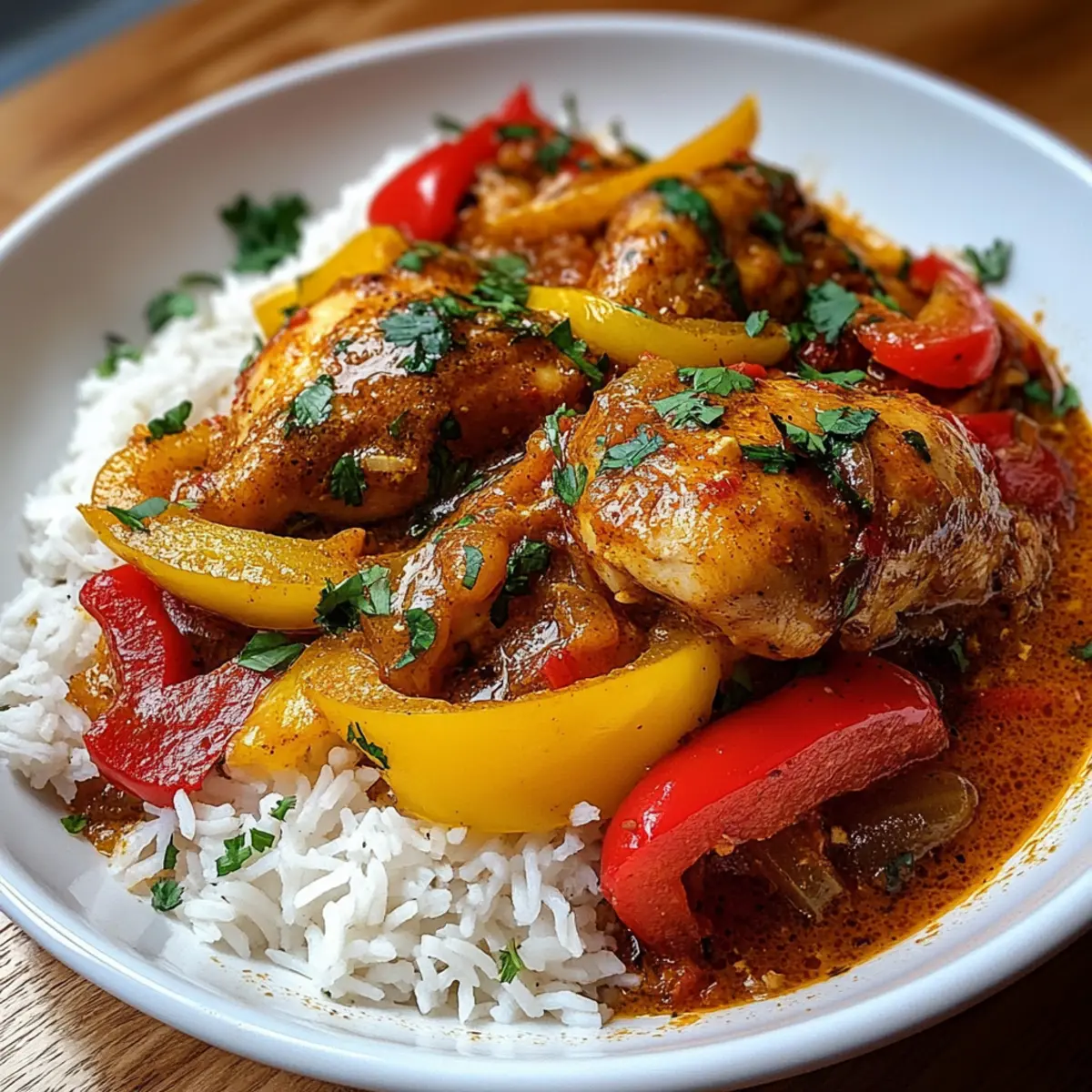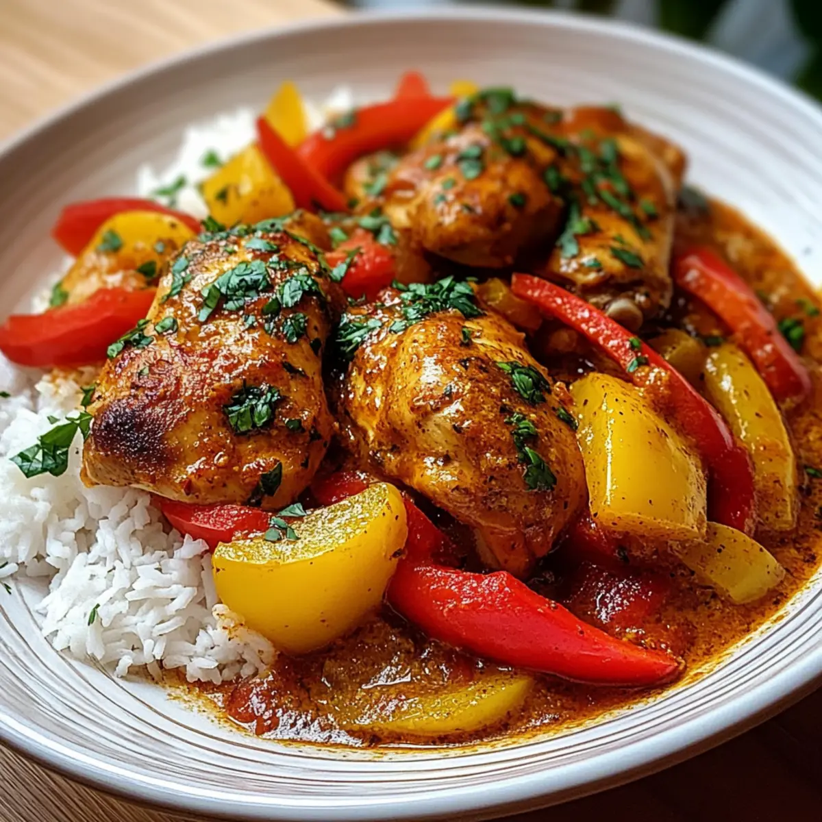 Jump to Recipe Print RecipeAs I stood by the stove, the luscious scent of coconut mingling with a kick of spices wafted through the air, instantly transforming my kitchen into a vibrant corner of Brazil. This Spicy Brazilian Coconut Chicken is more than just a dish; it’s a celebration of flavor, culture, and comfort food all wrapped into one quick dinner solution. In just 15 minutes of prep and about 30 minutes of cooking, you’ll dive into tender chicken thighs swathed in a creamy coconut sauce that strikes the perfect balance between sweet, spicy, and savory. Not only is this recipe an easy way to elevate your busy weeknight meals, but it’s also a satisfying crowd-pleaser that captures the essence of Brazilian cuisine. Curious about how to whip up this tantalizing dish? Let’s get cooking! Why is Spicy Brazilian Coconut Chicken a Must-Try? Bold, Flavorsome Delight: This dish brings the vibrant taste of Brazil right to your kitchen with its irresistible creamy coconut sauce paired with tender chicken. Quick and Easy: With just 15 minutes of prep time and 30 minutes of cooking, it’s perfect for busy weeknights when you crave a home-cooked meal. Adaptable Ingredients: Easily customize with your favorite veggies or protein options like tofu, making it versatile for any eater. Crowd-Pleasing Appeal: Everyone will love the harmonious balance of sweet, spicy, and savory, making it ideal for family dinners or entertaining guests. Comforting and Nourishing: Serve it over cooked rice, so every morsel is infused with that rich, delightful sauce—your taste buds will thank you! For more delicious chicken ideas, you might also enjoy Cheesy Chicken Enchiladas or Huli Huli Chicken. Spicy Brazilian Coconut Chicken Ingredients For the Base • Vegetable Oil – Used for sautéing ingredients; substitute with any neutral oil such as canola or sunflower oil. • Onion (1, chopped) – Provides a sweet and savory base when sautéed; substitute with shallots for a milder flavor. • Garlic (4 cloves, minced) – Adds pungent warmth and depth to the dish; freshly minced is preferred. • Ginger (1 tablespoon, grated) – Enhances flavor with a warm, zesty note; can substitute with ground ginger in a pinch (½ teaspoon). For the Sauce • Tomato Paste (2 tablespoons) – Contributes sweetness and richness to the sauce; no substitute needed. • Ground Cumin (1 teaspoon) – Provides earthiness and enhances flavor complexity; no substitutes recommended. • Ground Chili Powder (1 teaspoon) – Adds heat and smokiness; adjust according to preference; use smoked paprika for a milder taste. • Coconut Milk (1 can, 14 ounces) – Forms the luxurious creaminess of the sauce; light coconut milk can be used for a lower fat version. • Chicken Broth (1 cup) – Adds depth to the sauce; substitute with vegetable broth for a vegetarian option. • Lime Juice (1 tablespoon) – Brightens the dish and balances richness; lemon juice can be used in a pinch. • Fish Sauce (1 tablespoon) – Provides umami, enhancing savory depth; substitute with soy sauce or tamari for a vegetarian option. • Brown Sugar (1 tablespoon) – Introduces caramel notes to balance flavors; honey can be a substitute. For the Veggies & Chicken • Red Bell Pepper (1, sliced) – Adds color and sweetness; can substitute with yellow or orange bell pepper. • Yellow Bell Pepper (1, sliced) – Complements the red pepper; use other colors for visual appeal. • Boneless, Skinless Chicken Thighs (1 pound, cut into bite-sized pieces) – Tender meat that absorbs flavors well; can use chicken breasts, but be cautious of overcooking. • Salt and Pepper – Essential for seasoning the dish to taste. • Fresh Cilantro (¼ cup, chopped) – Adds a refreshing note as a garnish; omit if desired. For Serving • Cooked Rice – Ideal for serving, absorbing the sauce; alternative options include quinoa or cauliflower rice. Step‑by‑Step Instructions for Spicy Brazilian Coconut Chicken Step 1: Sauté Onions In a large pan, heat 2 tablespoons of vegetable oil over medium heat. Once the oil is shimmering, add 1 chopped onion and sauté for about 5 minutes, stirring occasionally, until the onion is soft and translucent. This forms the sweet and savory base of your Spicy Brazilian Coconut Chicken. Step 2: Add Garlic and Ginger Next, stir in 4 minced garlic cloves and 1 tablespoon of grated ginger to the onion mixture. Cook for an additional 2 minutes, letting the fragrant aroma fill your kitchen as the garlic lightly browns and the ginger releases its zesty notes. This step deepens the flavor profile of the dish. Step 3: Bloom the Spices Now, add 2 tablespoons of tomato paste, 1 teaspoon of ground cumin, and 1 teaspoon of chili powder to the pan. Mix everything well and allow the spices to bloom for approximately 1 minute, stirring continuously. You’ll notice the color starts to deepen, creating the flavorful foundation that makes this recipe so irresistible. Step 4: Create the Sauce Pour in 1 can (14 ounces) of coconut milk and 1 cup of chicken broth, stirring until everything is well combined. Increase the heat slightly and bring the mixture to a gentle simmer, watching for tiny bubbles to form. This is where the sauce takes shape, becoming rich and velvety. Step 5: Blend in Additional Flavors Add in 1 tablespoon of lime juice, 1 tablespoon of fish sauce, and 1 tablespoon of brown sugar, stirring to mix all the flavors together. Allow the sauce to simmer on low for a few minutes, letting the sweetness from the sugar and the brightness from the lime juice meld beautifully with the coconut. Step 6: Incorporate Chicken and Peppers Introduce 1 pound of bite-sized boneless, skinless chicken thighs along with sliced red and yellow bell peppers into the pan. Season with salt and pepper to taste, stirring until the chicken is well coated with the sauce. Cook for about 15-20 minutes, or until the chicken is cooked through and no longer pink, blending all