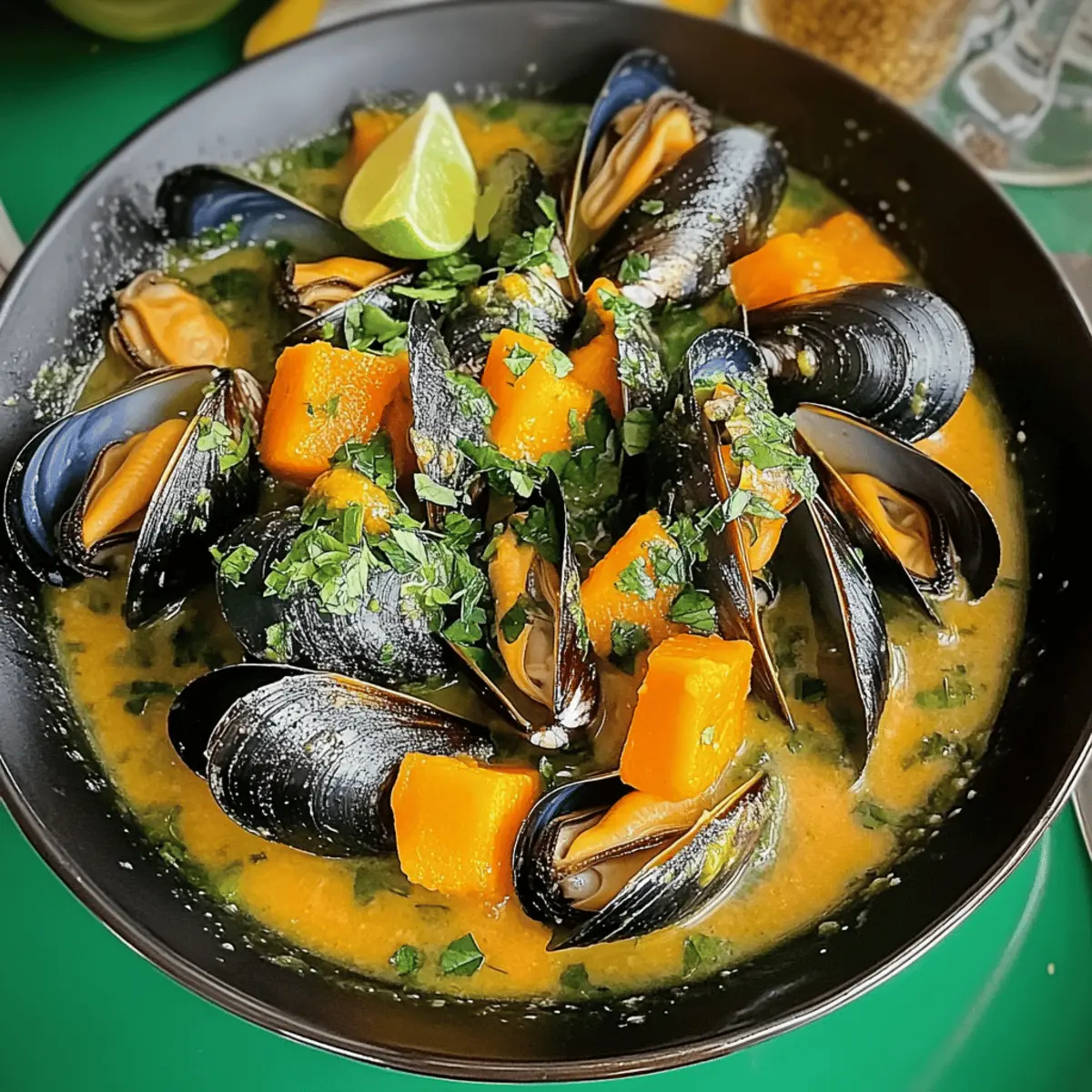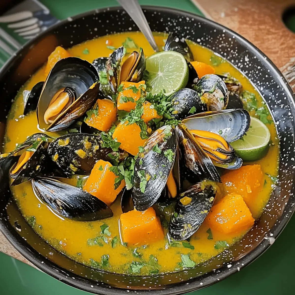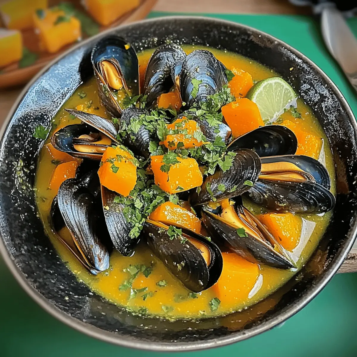 Jump to Recipe Print RecipeAs the chill of winter settles in, the comforting aroma of spices drifting from my kitchen is more than just a reminder of home—it’s a warm invitation to gather and savor. Enter my Spicy Curried Mussels with Butternut Squash, a dish that transforms simple ingredients into a hearty celebration of flavors. Not only is it quick to prepare, perfect for hectic weeknights, but it also brings together the best of both worlds: tender mussels submerged in a creamy, fragrant curry that dances beautifully with the sweetness of ripe butternut squash. This recipe is bound to impress your family and friends during cozy gatherings, making it a must-try for anyone looking to elevate their home-cooked meals. Ready to make something extraordinary? Let’s dive into this delightful dish together! Why are Spicy Curried Mussels a must-try? Unforgettable Flavor: The blend of sweet butternut squash with spicy curry creates an explosion of taste that delights the palate. Quick and Easy: Perfect for busy weeknights, this dish comes together in under 30 minutes, making home cooking a breeze. Heartwarming Comfort: Ideal for winter nights, the creamy texture and rich aroma can turn any gathering into a cozy feast, just like with my Grilled Buffalo Chicken. Versatile Options: Feel free to swap in shrimp or tofu for a unique twist, allowing you to tailor the recipe to suit your dietary preferences. Eye-Catching Presentation: Garnished with fresh herbs, this dish not only tastes amazing but also looks stunning on the table, impressing your guests every time! Spicy Curried Mussels Ingredients For the Base Mussels – Ensure they are fresh; frozen mussels should be properly thawed before use for the best texture. Butternut Squash – Adds creaminess and natural sweetness, making it a wonderful vegetable base for your dish. Curry Powder – A versatile spice blend; feel free to adjust according to your spice tolerance for a tailored flavor experience. Coconut Milk – Provides a rich, creamy backdrop that perfectly balances the spices, enhancing the overall richness of the dish. For the Aromatic Blend Garlic – Sauté until golden to unlock its full fragrant potential, deepening the dish’s overall flavor. Ginger – This zesty addition brings warmth and bright notes that elevate the curry spice profile. For the Fresh Finish Lime Juice – Brightens up the dish with a zingy freshness that complements the spices beautifully. Fresh Herbs (e.g., cilantro) – Use for a delightful aromatic garnish that adds a burst of freshness and vibrant color to the presentation. Step‑by‑Step Instructions for Spicy Curried Mussels with Butternut Squash Step 1: Prep the Ingredients Start by cleaning the mussels under cold water, ensuring to scrub the shells and remove any beards. Discard any mussels that remain closed after a gentle tap. Meanwhile, peel and dice the butternut squash into small cubes, creating a uniform texture that will cook evenly in the dish. Step 2: Sauté Aromatics In a large pot or Dutch oven, heat a couple of tablespoons of oil over medium heat. Add the minced garlic and ginger, stirring them together for about 2–3 minutes until they become fragrant and golden. This step lays the flavorful foundation for your Spicy Curried Mussels! Step 3: Add Squash and Spices Once the garlic and ginger are fragrant, add the prepared butternut squash and a tablespoon of curry powder to the pot. Pour in a splash of coconut milk, stirring everything together. Cook for about 5 minutes, allowing the squash to soften a bit and the spices to infuse throughout the mixture. Step 4: Incorporate Mussels and Remaining Ingredients Now it’s time to make this a comforting bowl of Spicy Curried Mussels! Add the cleaned mussels to the pot along with the remaining coconut milk and the lime juice. Cover the pot, and let it steam for 5–7 minutes, until the mussels open wide and are fully cooked. Step 5: Serve and Garnish Carefully ladle the mussels and butternut squash into bowls, ensuring to drizzle that delicious aromatic curry sauce all over. Finish by garnishing with fresh herbs, like cilantro, for an added burst of color and flavor. Serve immediately with crusty bread or over a bed of rice for a complete and satisfying meal! Make Ahead Options These Spicy Curried Mussels with Butternut Squash are perfect for meal prep enthusiasts! You can chop the butternut squash and prepare the curry base (including sautéing the garlic and ginger) up to 24 hours in advance. Simply store the prepped squash and curry mixture in an airtight container in the refrigerator. You can also clean and refrigerate the mussels up to 3 days before cooking, but make sure to keep them well-iced to maintain freshness. When ready to finish the dish, combine the squash with the mussels, add coconut milk and lime juice, and steam until the mussels open. This approach ensures you’ll still enjoy that same comforting, vibrant flavor with minimal hassle on busy weeknights! Expert Tips for Spicy Curried Mussels Fresh Mussels: Always check for freshness; discard any mussels that don’t open after cooking to avoid food safety issues. Customize Spice Level: Adjust curry powder and chili flakes to match your heat preference, ensuring the Spicy Curried Mussels are just right for your palate. Texture Matters: Opt for fresh butternut squash instead of canned for a creamier texture that enhances the overall experience of your dish. Prep Ahead: For easy assembly, prep the squash and aromatics ahead of time, making dinner a breeze when you’re ready to cook. Leftover Love: Store any leftovers in an airtight container for up to 3 days, but gently reheat to keep the mussels tender and flavorful. Spicy Curried Mussels Variations Feel free to unleash your creativity and customize this cozy dish to suit your taste buds! Seafood Swap: Try shrimp or scallops instead of mussels for a delightful change of pace. Both options cook quickly and absorb the curry
