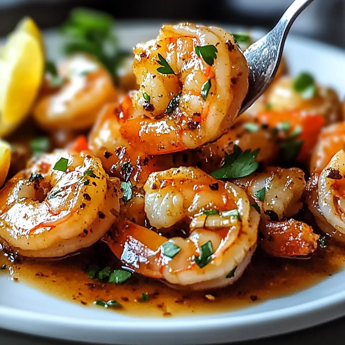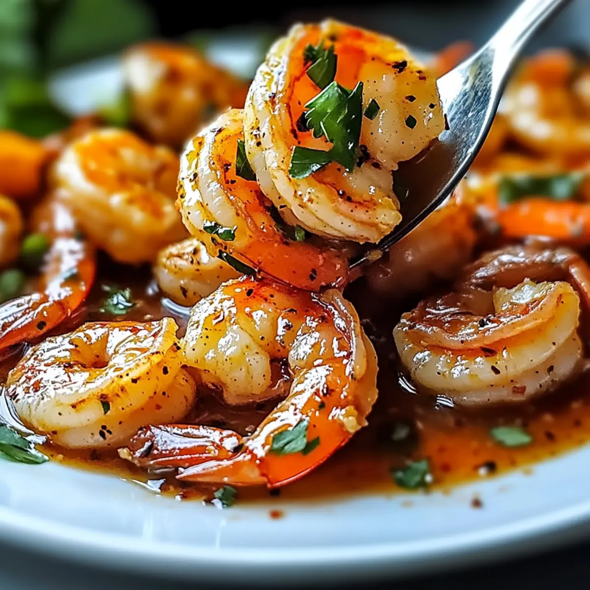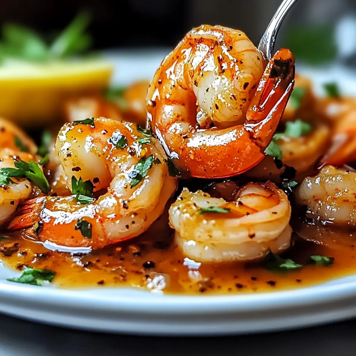Jump to Recipe Print RecipeAs I stood by the stove, a delightful aroma swirled around me, transporting me straight to a lively street market brimming with flavors. Today, I’m here to share my take on Easy Spicy Drunken Shrimp, a dish that comes together in a flash and is packed with garlicky goodness and a sophisticated chili kick. What I love most about this recipe is its incredible versatility: you can adjust the heat to suit your guests or family’s preferences while keeping the meal gluten-free. Plus, it’s a splendid answer to the fast-food rut, transforming simple shrimp into a dazzling centerpiece for dinner parties or cozy family nights. Are you ready to awaken your taste buds and dive into the spicy adventure ahead? Why is Spicy Drunken Shrimp a Must-Try? Quick and Easy: This dish comes together in just 20 minutes, making it perfect for busy weeknights or last-minute gatherings. Flavor Explosion: The garlicky beer sauce infused with chili heat creates a taste sensation that will have your guests asking for more. Customizable Spice Levels: Adjust the heat to fit everyone’s palate—whether your loved ones prefer mild or fiery, this recipe can accommodate all! Perfect for Entertaining: Impress friends at dinner parties with this sophisticated dish that’s surprisingly simple to prepare. Healthy Choice: With about 250 calories per serving and rich in protein, it’s a guilt-free indulgence that surpasses fast food options. Pair these delightful shrimp with steamed jasmine rice or a fresh salad for a complete meal; both are excellent accompaniments! Spicy Drunken Shrimp Ingredients For the Shrimp • Shrimp – Main ingredient providing protein; use peeled and deveined for convenience. • Olive Oil – Cooking fat for sautéing; substitute with any preferred cooking oil. For the Sauce • Garlic (minced) – Flavor base; fresh garlic is ideal for taste; jarred can be a substitute. • Chili Pepper or Red Pepper Flakes – Adds heat; adjust to heat tolerance, potentially omitting for a milder dish. • Smoked Paprika – Infuses smokiness; regular paprika can be used if unavailable. • Black Pepper – Enhances flavor with warmth; freshly ground is recommended. • Beer (light lager or pale ale) – Provides depth to the sauce; avoid dark beers; non-alcoholic options are acceptable. • Soy Sauce – Introduces umami; substitute with tamari for a gluten-free option. • Oyster Sauce – Adds sweetness; can be replaced with hoisin sauce if necessary. • Honey – Balances the dish’s heat; swap for sugar or agave syrup to adjust sweetness. • Lime Juice – Finishing brightness; lemon juice serves as a good alternative. • Cilantro (chopped) – Fresh herb garnish adding vibrancy; parsley works for non-cilantro lovers. Serving Suggestions • Lime Wedges – Fresh garnish that enhances the sauce’s flavor; serve alongside the dish for an extra zing. Step‑by‑Step Instructions for Spicy Drunken Shrimp Step 1: Prep the Shrimp Begin by patting the peeled and deveined shrimp dry with paper towels, ensuring they’re free of excess moisture. This step is crucial for achieving a beautiful sear later. Place the shrimp on a clean plate, ready for the cooking process, as the Spicy Drunken Shrimp will require quick action on your part. Step 2: Heat the Oil In a large skillet, heat 2 tablespoons of olive oil over medium-high heat. Once the oil shimmers (after about 1-2 minutes), add the minced garlic and your choice of chili pepper or red pepper flakes. Sauté these aromatics for about 30 seconds until they’re fragrant and the garlic turns golden, be careful not to burn it as this can affect the sauce’s flavor. Step 3: Cook the Shrimp Now, add the prepared shrimp to the skillet, seasoning them generously with smoked paprika and freshly cracked black pepper. Sauté the shrimp for about 1-2 minutes on each side, or until they turn pink and opaque. Keep an eye on them—you want them to be firm and slightly charred, enhancing the taste of your Spicy Drunken Shrimp. Step 4: Make the Sauce Next, pour in ½ cup of light lager or pale ale along with 2 tablespoons each of soy sauce and oyster sauce, and 1 tablespoon of honey. Allow this mixture to simmer for about 2-3 minutes, stirring occasionally until the sauce thickens slightly. The combination of flavors creates that irresistible garlicky beer sauce that makes this dish so delightful. Step 5: Finish the Dish Finally, stir in the juice of 1 lime and a generous handful of chopped cilantro just before serving. Mix everything well to ensure the shrimp are evenly coated with the sauce. This last touch brings a brightness and freshness to your Spicy Drunken Shrimp, making it ready to serve alongside lime wedges for that extra zest. Expert Tips for Spicy Drunken Shrimp Prep Perfectly: Pat shrimp dry: Ensuring shrimp are dry allows for a better sear and prevents steaming, enhancing flavor and texture. Heat Control: Adjust spice levels: Experiment with the amount of chili pepper or red pepper flakes to cater to your family’s preferences for heat in this Spicy Drunken Shrimp recipe. Time It Right: Serve immediately: For the best flavor and texture, enjoy the shrimp straight from the skillet. Reheating can lead to rubbery shrimp! Sauce Thickness: Fix a thin sauce: If the sauce isn’t thickening, either simmer it longer or create a cornstarch slurry (1 tbsp cornstarch mixed with 2 tbsp cold water) to achieve desired consistency. Flavor Enhancement: Marinate for extra taste: For an even deeper flavor, marinate shrimp in the sauce (excluding lime juice and cilantro) for up to 24 hours before cooking. Garnish with Freshness: Brighten it up: A sprinkle of extra cilantro right before serving adds freshness and a vibrant touch to your Spicy Drunken Shrimp! Make Ahead Options These Easy Spicy Drunken Shrimp are a fantastic choice for meal prep enthusiasts! You can marinate the shrimp in the sauce (excluding lime juice and cilantro) up to 24 ho