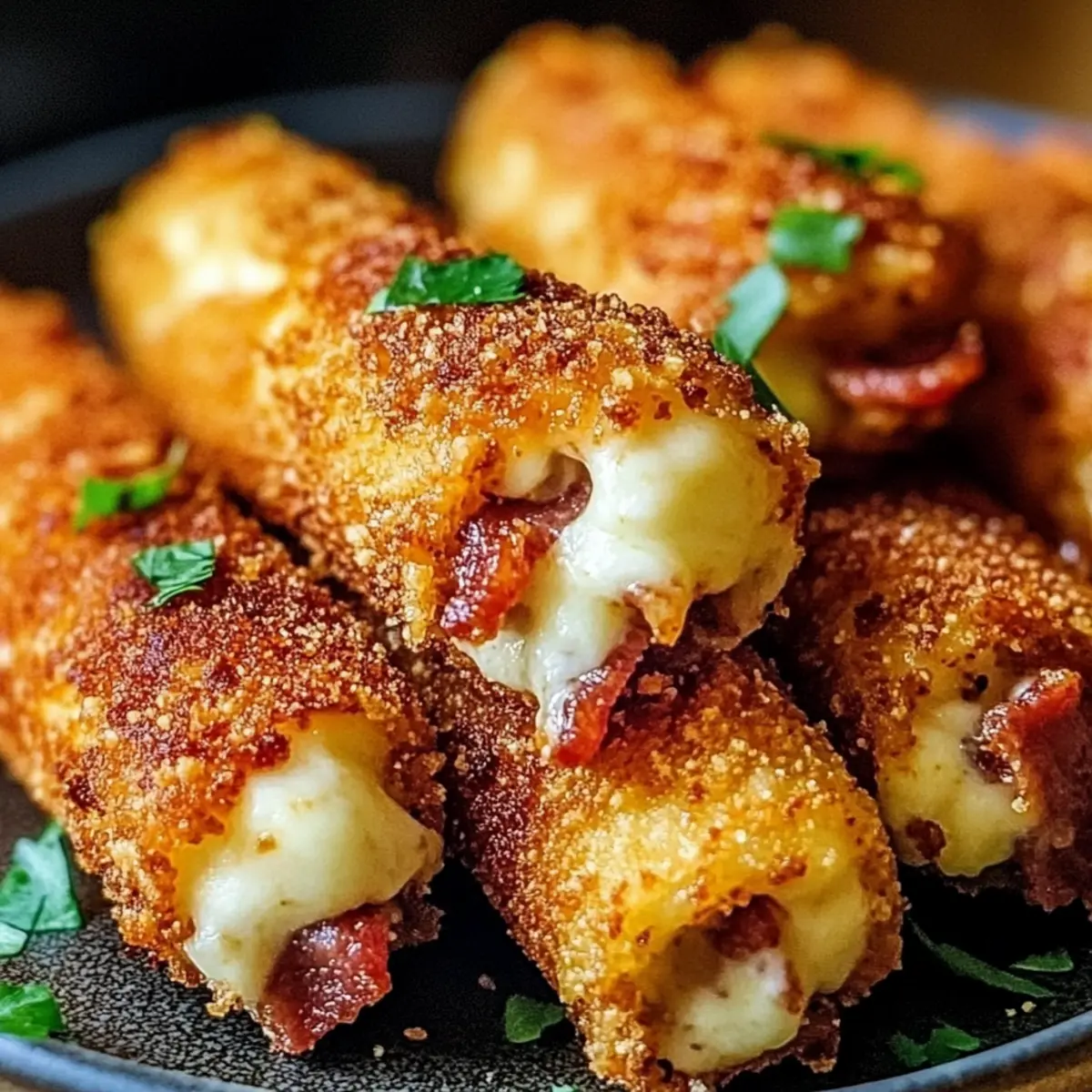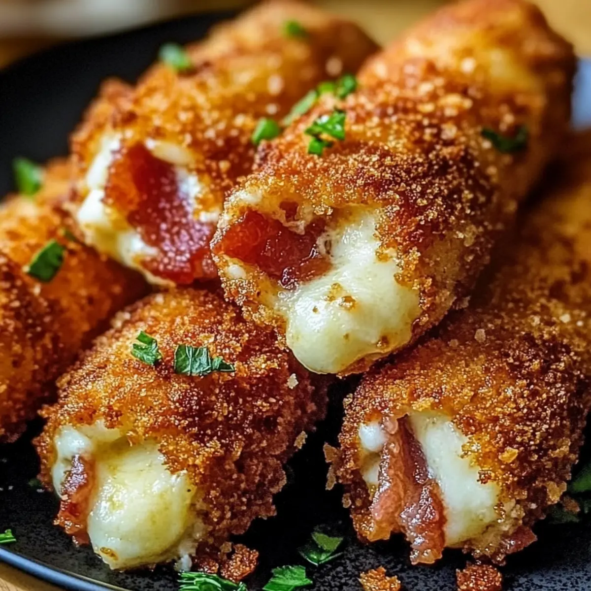 Jump to Recipe Print RecipeAs I pulled the warm, crispy treats from the oven, a delightful aroma filled my kitchen, instantly transporting me to a bustling Nashville street food stall. These Spicy Nashville Bacon Mozzarella Sticks aren’t just your average snack; they’re a game-changer, combining the savory crunch of bacon with the gooey goodness of melted mozzarella. Perfect for parties or a cozy night in, this recipe makes it easier than ever to elevate your snack game with a quick prep time—about 30% faster than traditional sticks! With just a few simple ingredients, you can whip up a crowd-pleaser that’s customizable to your spice level. Ready to take a bite out of life’s little joys? Let’s dive into this crispy, cheesy delight! Why not spice up your snacks? Crispy, every bite is a crunchy revelation that pairs beautifully with the warm, gooey mozzarella inside. Flavor-packed, the combination of rich bacon and zesty spices creates a taste sensation that’s hard to resist. Quick preparation means you can enjoy these delicious treats in no time, making them perfect for last-minute gatherings or satisfying late-night cravings. Customizable to suit your spice preference, they cater to every palate—even those who enjoy a milder flavor or want to swap mozzarella for cheddar! For more delicious ideas, check out my Avocado Bacon Grilled Cheese and Loaded Broccoli Bacon recipes! Spicy Nashville Bacon Mozzarella Sticks Ingredients • Want to create these mouthwatering treats? Here’s what you need! For the Sticks Mozzarella Cheese Sticks – The star of the show; feel free to try cheddar or pepper jack for a twist! Bacon – Provides that irresistible crispy texture and flavor; prosciutto can be a delightful substitute. All-Purpose Flour – Helps the egg mixture adhere to the cheese for a perfect crust. Eggs – Binds the breading, ensuring a satisfying crunch in every bite. Breadcrumbs – Forms the crispy outer layer; consider using panko breadcrumbs for an extra crunch. Cayenne Pepper – Adds the signature heat; adjust according to your spice level for these Spicy Nashville Bacon Mozzarella Sticks. For Serving Marinara Sauce – A classic pairing that complements the richness of the sticks beautifully. Ranch Dressing – Adds a creamy contrast to the spicy goodness. Spicy Aioli – For a gourmet twist, whip up a quick spicy aioli for dipping! Step‑by‑Step Instructions for Spicy Nashville Bacon Mozzarella Sticks Step 1: Prepare the Cheese Start by cutting each mozzarella stick in half to create bite-sized pieces. This not only makes them easier to handle but also ensures that they cook evenly. As you work, preheat your cooking method of choice—either the oven at 400°F (200°C) for baking or a pot with oil heated to 350°F (175°C) for frying. Step 2: Wrap with Bacon Take a slice of savory bacon and wrap it completely around each mozzarella half. Ensure the bacon overlaps slightly, securing the cheese within its embrace. If needed, use toothpicks to keep the bacon in place. As you wrap, visualize the crispy outer layer forming a delicious seal around the gooey mozzarella for your Spicy Nashville Bacon Mozzarella Sticks. Step 3: Set Up Breading Station Prepare your breading station by placing three separate bowls on your countertop. In the first bowl, add all-purpose flour for the initial coating. In the second bowl, beat a couple of eggs to make the egg wash. Finally, in the third bowl, combine breadcrumbs with cayenne pepper or any seasonings you desire for that signature spicy touch. Step 4: Coat Cheese Sticks Begin coating your bacon-wrapped mozzarella sticks by first dipping each piece in the flour, ensuring it’s evenly coated. Next, transfer it to the beaten egg, thoroughly covering the flour coating. Finally, roll it in the seasoned breadcrumbs, pressing gently to secure the coating for a crunchy exterior once cooked. Step 5: Freeze Once all your cheese sticks are coated, arrange them on a baking sheet ensuring they’re not touching each other. Place them in the freezer for at least 15 minutes. This crucial step helps to firm them up, ensuring the cheese doesn’t ooze out during the cooking process of your Spicy Nashville Bacon Mozzarella Sticks. Step 6: Preheat Oven/Fryer If you’ve decided to bake, make sure your oven is preheated to 400°F (200°C). For frying, heat the oil in a deep pot until it reaches 350°F (175°C). The right temperature is essential for achieving a golden brown and crispy finish on your sticks, so use a thermometer if you have one. Step 7: Cook the Sticks Carefully place the frozen bacon-wrapped sticks into the hot oil in batches if frying, cooking for 3-4 minutes until golden brown and crispy. If baking, arrange on a lined baking sheet and cook for about 15 minutes, or until you see a beautiful golden crust forming on the outside. Step 8: Cool After cooking, remove your Spicy Nashville Bacon Mozzarella Sticks from the oil or oven and allow them to cool for a few minutes on a wire rack or plate. This cooling time allows the cheese to firm up slightly, making them easier to handle and enhancing the overall flavor when served alongside your favorite dipping sauces. Expert Tips for Spicy Nashville Bacon Mozzarella Sticks Bacon Wrap Tightness: Ensure the bacon is snug around the mozzarella to avoid any gooey cheese leaks during cooking. Loose wraps may lead to messier results. Freezing Importance: Don’t skip the freezing step! It’s crucial for keeping the cheese intact and preventing it from oozing out, ensuring perfect Spicy Nashville Bacon Mozzarella Sticks. Cooling Tip: After cooking, allow the sticks to cool for a few minutes to set the melted cheese, making them easier to enjoy and preventing burns. Dipping Sauce Variety: Experiment with different sauces! Besides classic marinara or ranch, try sriracha or a spicy aioli for a unique twist. Adjust Spice Levels: Tailor the cayenne pepper amount according to your taste preferences