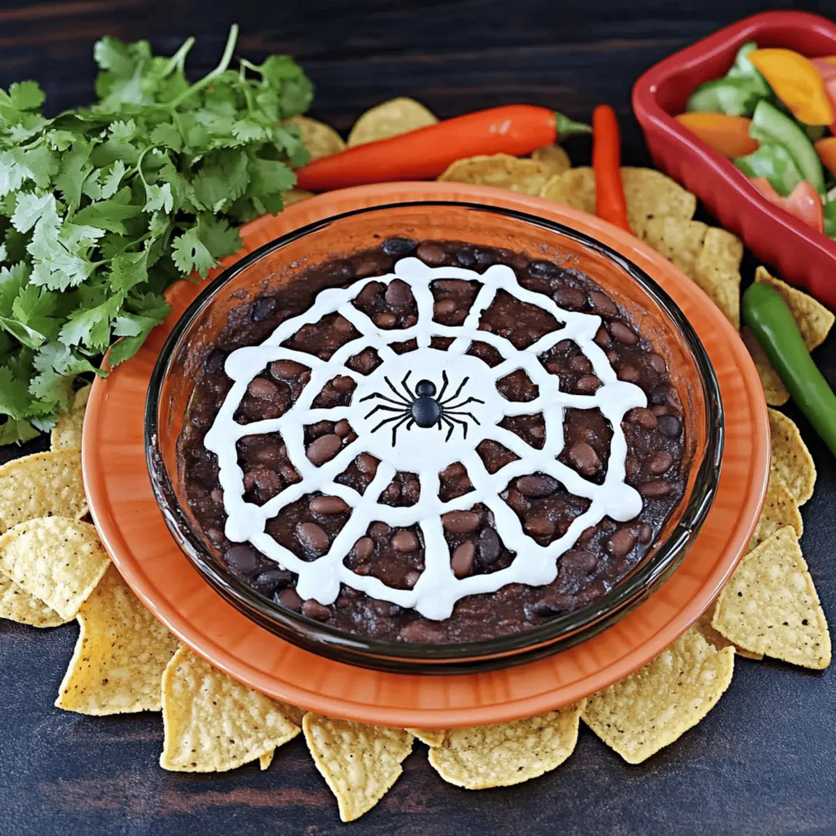 • Vegan Version: Easily make the Spider Web Black Bean Dip vegan by substituting sour cream and cheese with appropriate dairy-free alternatives.