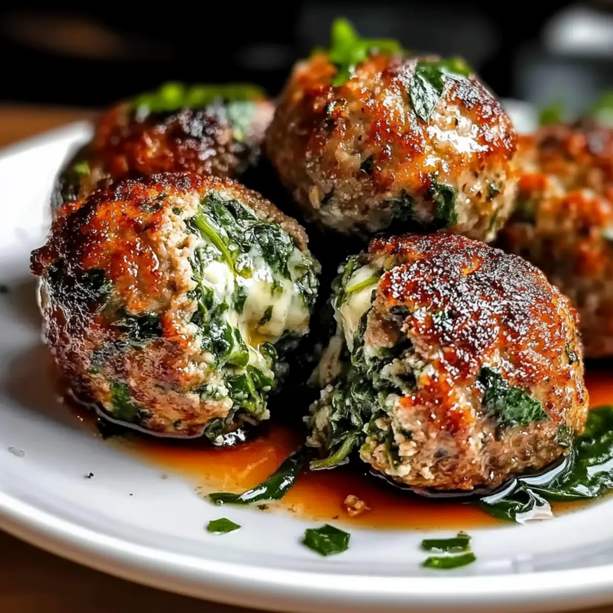 Jump to Recipe Print RecipeAs the savory scent of sizzling garlic fills the air, I can’t help but feel transported back to my childhood kitchen. Those cherished moments spent around the dinner table relish in the joy of home-cooked meals. Today, I’m excited to share my Spinach Garlic Mozzarella Stuffed Meatballs—a delightful twist on classic comfort food! Not only are these meatballs packed with nutritious spinach and ooey-gooey mozzarella, but they’re also incredibly easy to prepare, making them perfect for busy weeknights or gatherings with friends. You’ll discover how this simple recipe can become a family favorite, bringing everyone together in delicious harmony. Are you ready to dig in and explore the melty magic of these cheesy meatballs? Why are these meatballs so special? Flavor Explosion: The combination of sautéed garlic and fresh spinach infuses each meatball with irresistible flavors that make your taste buds sing. Cheesy Surprise: With a gooey mozzarella center, each bite is a delightful revelation that keeps your family coming back for more! Customizable Goodness: Mix in your favorite herbs or veggies to create a version that caters to your tastes—it’s all about flexibility! Effortless Prep: Quick to assemble and even easier to cook, these meatballs are a lifesaver for busy weekdays—a dish that can be prepared in advance and frozen, just like my Garlic Lemon Butter Salmon. Crowd Pleaser: Perfect for any gathering, these meatballs will impress your guests, making your dinner parties unforgettable! Spinach Garlic Meatballs Ingredients • Get ready to create a flavor-packed delight! For the Meat Mixture Ground Beef or Turkey – The base for your meatballs; swap for lean turkey for a healthier option. Fresh Spinach – Offers vibrant color and nutrition; sauté to enhance its flavor before mixing. Garlic – Freshly minced for the best taste; it’s the secret to depth in every bite. Onion (optional) – Adds sweetness; finely chopped for even distribution in your meatballs. Egg – Binds the mixture together, ensuring the meatballs hold their shape perfectly. Breadcrumbs – Provides texture; substitute with gluten-free options like crushed rice crackers or oat flour for dietary needs. Grated Parmesan Cheese – Adds savory richness to the mix. Italian Seasoning – Enhances the overall flavor; fresh herbs can elevate your dish with aroma. Salt and Pepper – Essential for amplifying all flavors in your meatball mix. Red Pepper Flakes (optional) – Adds a hint of spice if you’re feeling adventurous! For the Cheesy Center Low-Moisture Mozzarella Cubes – The melty surprise; ensure they’re chilled to prevent leaks while cooking. For Garnishing Chopped Parsley (optional) – Freshly chopped for a garnish that enhances presentation. With these ingredients, you’ll be set to whip up a batch of Spinach Garlic Meatballs that are simply unforgettable! Step‑by‑Step Instructions for Spinach Garlic Mozzarella Stuffed Meatballs Step 1: Sauté Spinach and Garlic In a skillet heated over medium, add a splash of olive oil and two minced garlic cloves. Cook for 3-4 minutes until the garlic turns golden, then add in a generous handful of fresh spinach, stirring until it wilts and softens. Remove from heat, allow to cool slightly, and then chop finely to mix into your Spinach Garlic Meatballs. Step 2: Mix Ingredients In a large mixing bowl, combine your choice of ground beef or turkey, the cooled chopped spinach and garlic mixture, one beaten egg, breadcrumbs, grated Parmesan cheese, Italian seasoning, and a pinch of salt and pepper. Gently fold the ingredients together until just incorporated to avoid overmixing—this will ensure your meatballs remain tender and flavorful. Step 3: Form Meatballs Take a handful of the meat mixture and flatten it in your palm. Place a chilled cube of low-moisture mozzarella in the center and then wrap the meat around it, ensuring it’s completely sealed. Shape the mixture into round meatballs, about the size of a golf ball, ensuring the cheesy core is nestled safely within each one of your Spinach Garlic Mozzarella Stuffed Meatballs. Step 4: Cook Meatballs Preheat your oven to 400°F (200°C) if you’re baking, or heat a skillet over medium-high for pan-searing. For baking, arrange the meatballs on a lined baking sheet and cook for 20-25 minutes until they’re browned and cooked through. If pan-searing, add a little oil and cook the meatballs for 6-8 minutes on each side until golden brown and cooked to a safe temperature. Step 5: Optional Simmer For an extra layer of flavor, transfer the cooked meatballs to a pot of warm marinara sauce. Allow them to simmer gently for an additional 5-10 minutes, letting the sauce soak into the meatballs while ensuring they stay juicy and flavorful. This step can be easily added after baking or searing for that classic Italian touch! Step 6: Rest Once the Spinach Garlic Mozzarella Stuffed Meatballs are done, take them off the heat and allow them to rest for 5 minutes. This resting period helps to lock in the juices, ensuring each bite remains moist and delicious. The melted mozzarella at the center will stay gooey, ready to melt in your mouth with every delicious bite! Make Ahead Options These Spinach Garlic Mozzarella Stuffed Meatballs are ideal for meal prep, saving you valuable time on busy weeknights! You can prepare the meat mixture and form the meatballs up to 24 hours in advance; just cover them tightly and refrigerate until ready to cook. Additionally, uncooked meatballs can be frozen for up to 2 months—simply arrange them in a single layer on a baking sheet, then transfer to a freezer-safe container. When you’re ready to enjoy, thaw them in the refrigerator overnight and then bake or pan-sear as directed. This method ensures your meatballs are just as delicious with gooey mozzarella centers, making dinner a breeze! How to Store and Freeze Spinach Garlic Mozzarella Stuffed Meatballs 