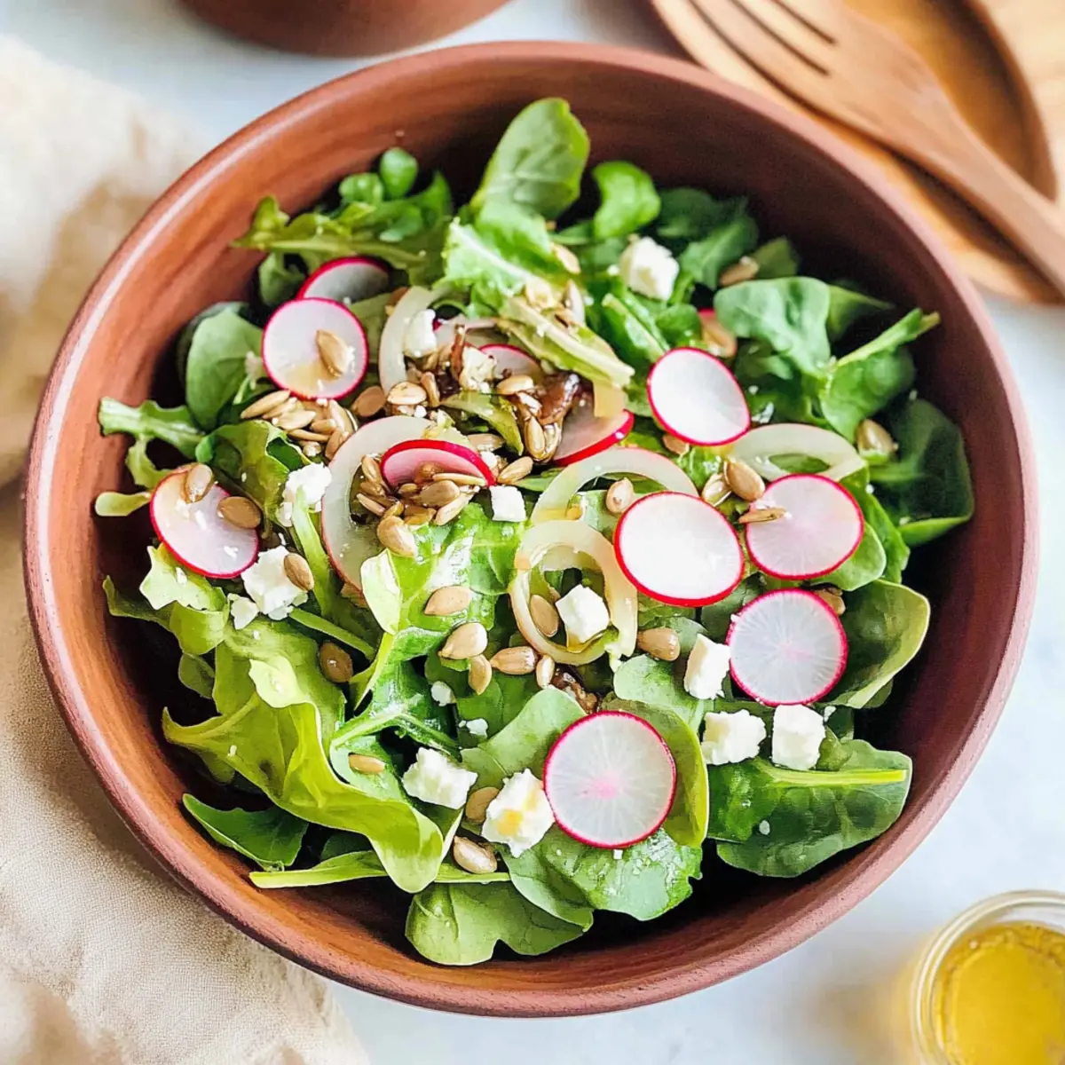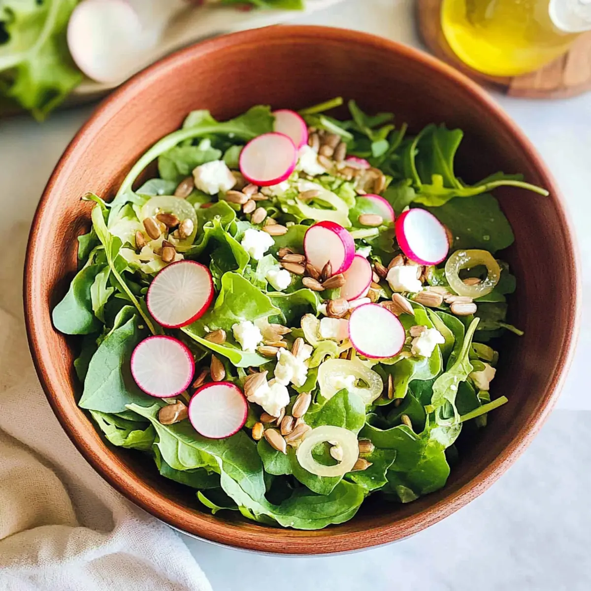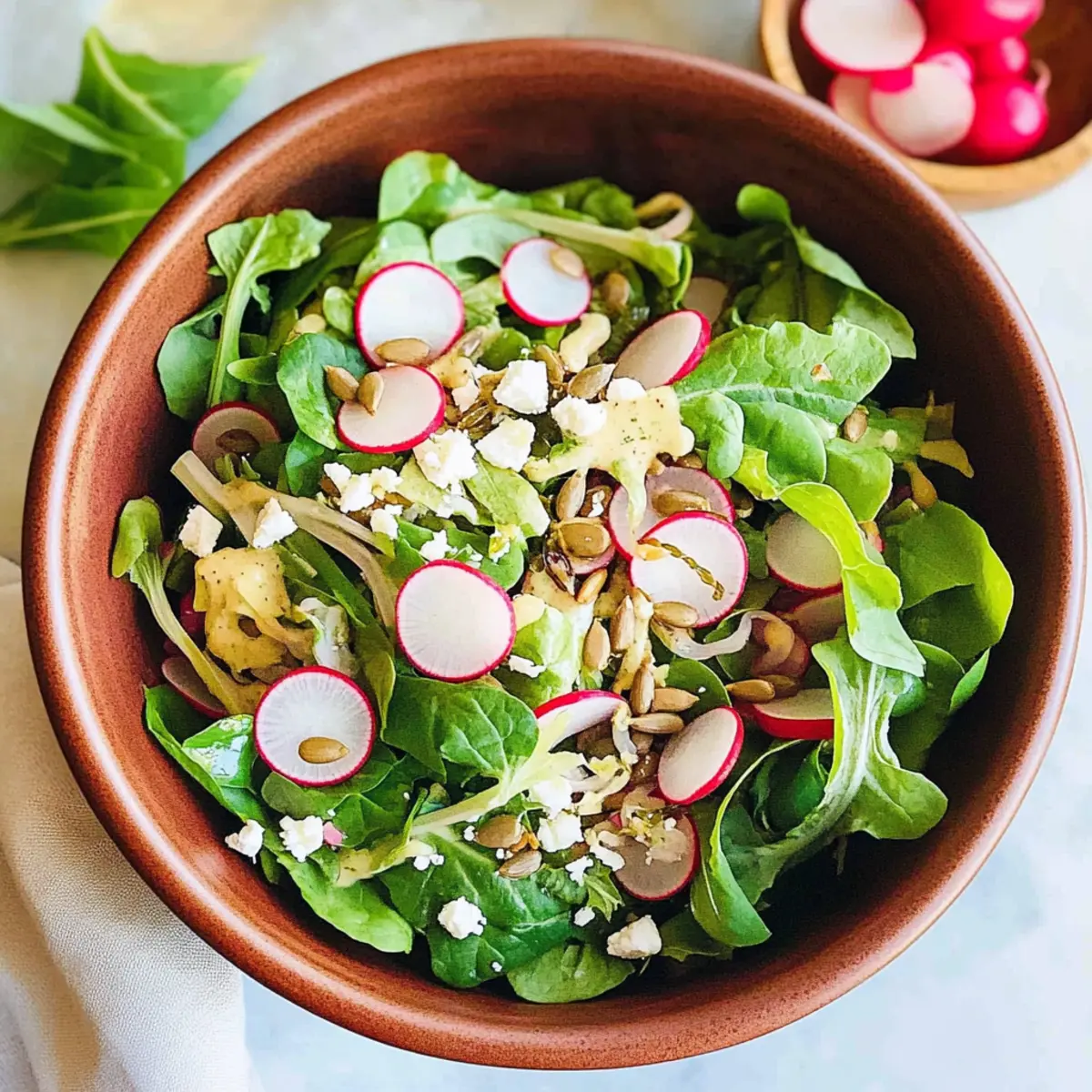 Freshness: The vibrant combination of baby greens and crunchy radishes offers a delightful taste of spring in every bite.