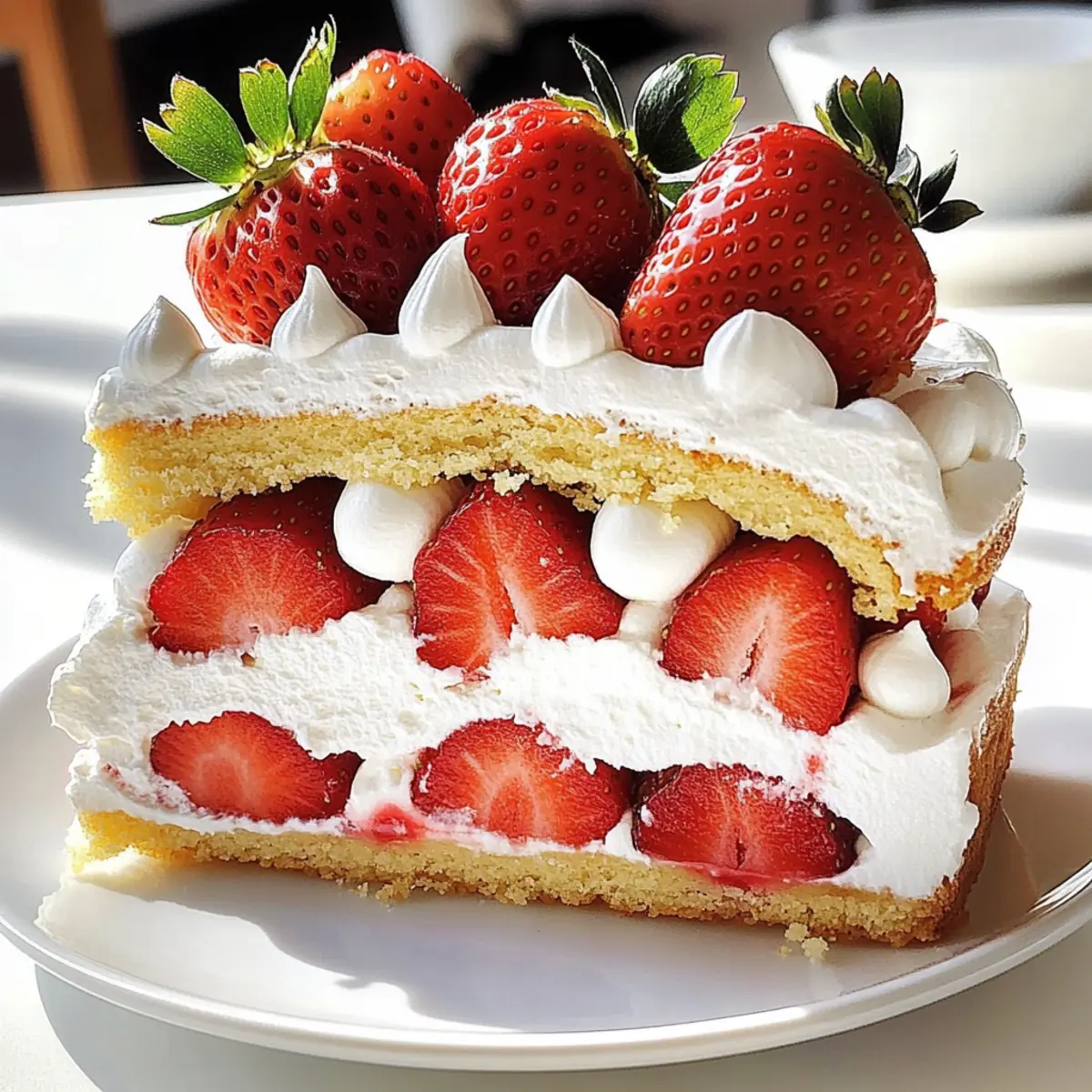 Jump to Recipe Print RecipeAs the sun shines brightly and the days grow warmer, the allure of a refreshing dessert beckons from the kitchen. Enter the Strawberries & Cream Torte! This delightful summer dessert is not only beautifully layered with fluffy meringue and luscious cream but is also incredibly easy to whip up, making it perfect for your next backyard gathering or barbecue. With its light texture and customizable toppings—think peaches or raspberries for a fun twist—you’ll skip the heavy options and embrace a dessert that’s as satisfying as it is refreshing. Are you ready to impress your guests and indulge in a taste of summer? Let’s dive into the delicious details! Why Will You Love This Torte? Light and Refreshing: The Strawberries & Cream Torte is the epitome of summer indulgence, offering a fluffy texture that melts in your mouth. Customizable Delight: Feel free to swap out strawberries for delicious peaches or raspberries, tailoring this dessert to your taste and seasonal availability. Easy Preparation: This recipe is designed for home cooks of all skill levels, ensuring you spend less time in the kitchen and more time enjoying gatherings. Make-Ahead Magic: Perfect for entertaining, this torte can be prepped in advance, leaving you stress-free as guests arrive. Visually Stunning: With its vibrant layers and gorgeous presentation, this dessert is guaranteed to be the showstopper of any occasion, just like our Cheesy Broccoli Casserole. Dive into the delightful world of summer desserts with this exceptional torte today! Strawberries & Cream Torte Ingredients For the Torte Base Eggs (2 large, separated) – Ensure whites are at room temperature for better whipping, giving the torte its signature airy texture. Butter (1/4 cup, softened) – Adds richness and moisture, creating a tender base. Sugar (1/2 cup + 1/2 teaspoon, divided) – Sweetens the batter and stabilizes whipped egg whites; granulated sugar yields the best results. Vanilla Extract (1/2 teaspoon) – Enhances flavor; can be substituted with almond extract for a unique twist. All-Purpose Flour (1 cup) – Provides structure to the torte; swapping for cake flour can yield a lighter texture. Baking Powder (1.5 teaspoons) – A crucial leavening agent; ensure freshness for optimal rise. Salt (1/4 teaspoon) – Balances sweetness, enhancing the overall flavor profile. For the Cream Layer Milk (1/2 cup, 2%) – Adds moisture to the cake; for a creamier texture, use whole milk. Heavy Whipping Cream (2 cups) – Forms the light and fluffy topping when whipped to stiff peaks. For the Topping and Decoration Fresh Strawberries (1 pint, hulled and sliced) – Provide natural sweetness and flavor; always select ripe berries for the best taste. Additional Strawberries – Use whole berries for decoration, enhancing the visual appeal of your Strawberries & Cream Torte. Delve into this Strawberries & Cream Torte and delight your senses with its stunning layers and refreshing flavors! Step‑by‑Step Instructions for Strawberries & Cream Torte Step 1: Preheat Oven Begin by preheating your oven to 350°F (175°C). While the oven warms up, prepare two 8-inch cake pans by lining the bottoms with parchment paper and lightly greasing the sides to ensure easy removal after baking. Step 2: Cream Butter & Sugar In a mixing bowl, cream together 1/4 cup softened butter and 1/2 cup of sugar. Use an electric mixer at medium speed for about 5-7 minutes, until the mixture appears light and fluffy, and the sugar has dissolved, creating a lovely airy base for your Strawberries & Cream Torte. Step 3: Add Yolks & Vanilla Next, add the two egg yolks and 1/2 teaspoon of vanilla extract to the butter-sugar mixture. Mix thoroughly on low speed until fully incorporated, ensuring a smooth batter that captures the delightful flavors you’ll enjoy in this torte. Step 4: Combine Dry Ingredients In a separate bowl, whisk together 1 cup of all-purpose flour, 1.5 teaspoons of baking powder, and 1/4 teaspoon of salt. Gradually add this dry mixture to the wet ingredients, alternating with 1/2 cup of milk, mixing until just combined without overworking the batter, which helps keep the torte light. Step 5: Whip Egg Whites In a clean, dry mixing bowl, begin whipping the two egg whites with an electric mixer on high speed. Once they turn foamy, gradually add the remaining 1/2 teaspoon of sugar and continue beating until soft peaks form, about 3-4 minutes, creating a fluffy meringue to fold into your batter. Step 6: Fold in Egg Whites Gently fold the whipped egg whites into the batter using a rubber spatula, working in three batches for the best results. Be sure to maintain the volume by folding, which will help give your Strawberries & Cream Torte its characteristic lightness and texture. Step 7: Divide & Bake Carefully divide the batter evenly between the two prepared cake pans. Bake in the preheated oven for 12-15 minutes, or until a toothpick inserted in the center comes out clean, signaling that your cakes are perfectly baked and ready to cool. Step 8: Cool Cakes Once baked, remove the pans from the oven and allow them to cool for 10 minutes. Then, gently run a knife around the edges and flip the cakes onto wire racks to cool completely, maintaining their fluffy structure for your Strawberries & Cream Torte. Step 9: Whip Cream While the cakes are cooling, it’s time to whip the heavy cream. Using a mixer, beat 2 cups of heavy whipping cream until stiff peaks form, about 4-5 minutes. The whipped cream will serve as a luscious topping for your torte, enhancing the overall richness and flavor. Step 10: Assemble Torte Once the cake layers have cooled, place one layer on a serving platter. Spread half of the whipped cream over it, and distribute sliced strawberries evenly atop the cream. Gently place the second cake layer on top and finish with the remaining whipped cream and whole strawberries for a beautiful presentation. Step 11: Chill Finally, refrig