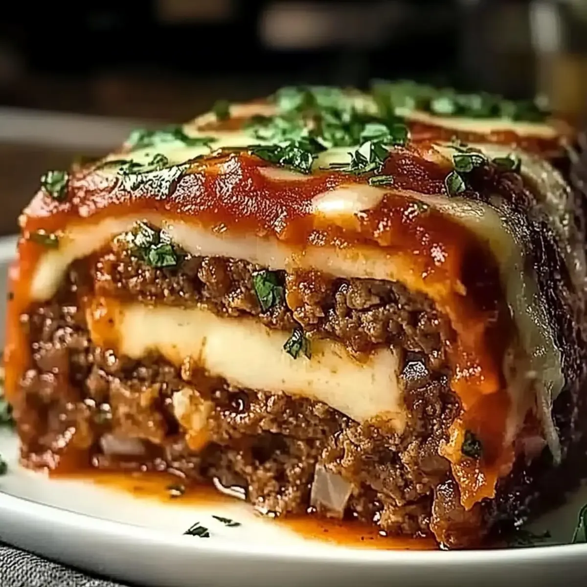 This Stuffed Italian Meatloaf is a comforting dish packed with flavorful ground beef, gooey mozzarella, and aromatic herbs, making it a family favorite.