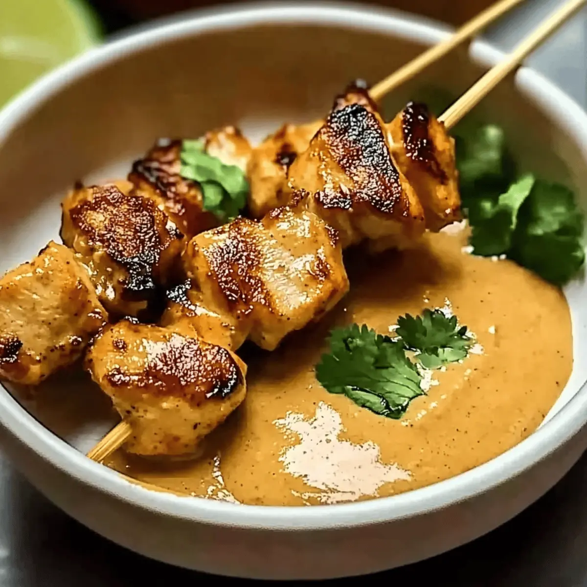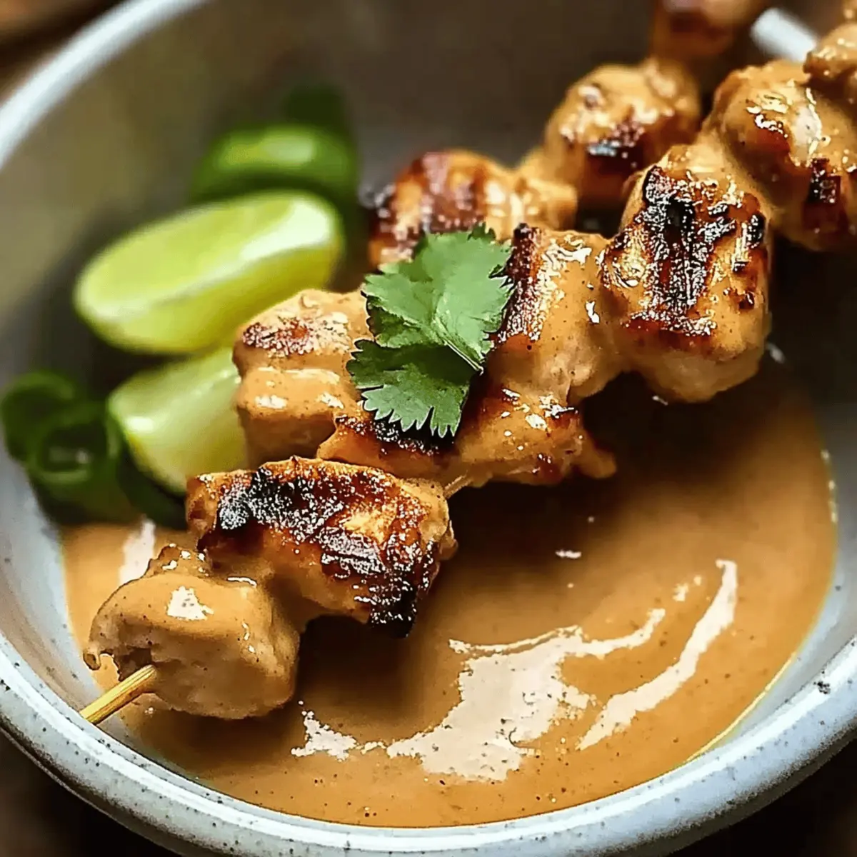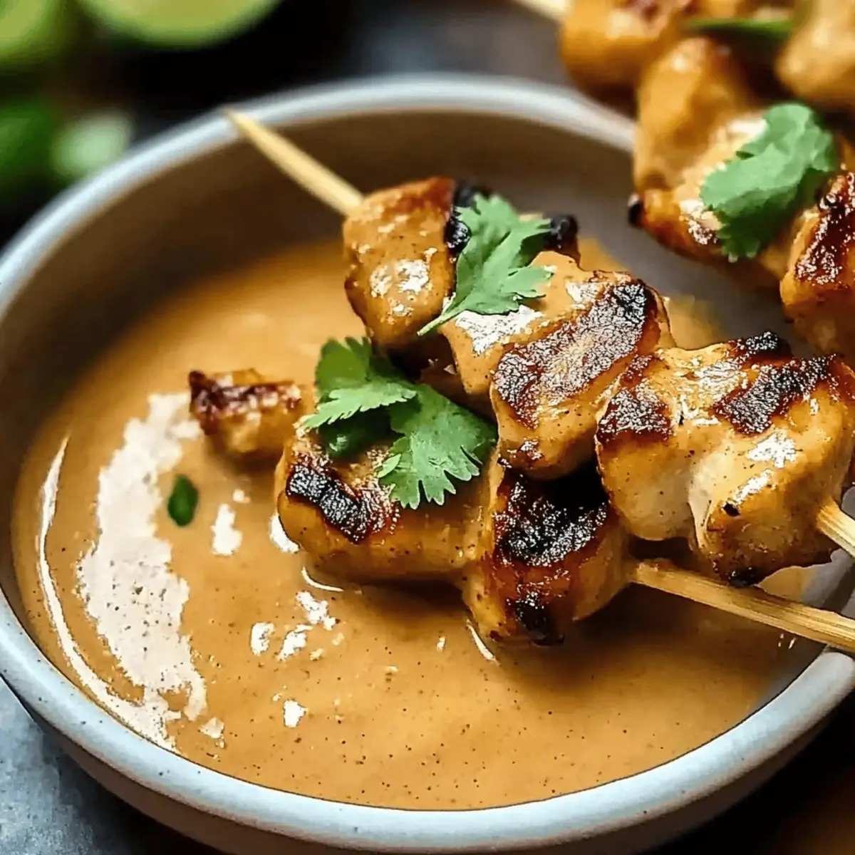 Jump to Recipe Print RecipeThe sizzling sound of skewers hitting a hot grill transports me straight to a bustling Thai street market, where the aroma of marinated meats fills the air. My favorite indulgence? A plate of Thai Chicken Satay with Peanut Sauce that not only delights my taste buds but also brings a sense of joy to the table. This recipe is a fantastic crowd-pleaser, easy to whip up for a dinner party or a cozy evening at home. With options for vegetarians like tofu or seitan, everyone can participate in the deliciousness! Plus, the creamy peanut sauce offers a perfect balance of rich flavor and a healthy twist, making it even more irresistible. Want to learn how to create this taste of Thailand in your own kitchen? Let’s dive into the recipe and those unforgettable flavors! Why is Thai Chicken Satay a must-try? Flavorful Fusion: This dish effortlessly combines sweet, savory, and spicy elements, showcasing the best of Thai cuisine. Crowd-Pleasing Dish: Perfect for gatherings, your guests will rave about these juicy skewers and creamy peanut sauce. Health-Conscious Choice: Made with lean proteins and nutritious ingredients, it’s a guilt-free indulgence. Versatile Variations: Whether you opt for chicken, tofu, or shrimp, there’s a version for everyone, just like the delicious Hawaiian Chicken Salad. Easy Prep: Quick to prepare and cook, this recipe fits seamlessly into your busy schedule, making it a go-to for impressive meals! Fun Presentation: Serve them with fresh veggies; the colorful array makes it visually appealing and enjoyable to eat. Thai Chicken Satay Ingredients • Experience the authentic flavors of Thai Chicken Satay with these simple ingredients! For the Satay Boneless Chicken Thighs (or Breasts) – The main protein, juicy and flavorful; substitute with firm tofu or seitan for a vegetarian delight. Soy Sauce – Offers umami richness; opt for gluten-free tamari if preferred. Brown Sugar – Adds a touch of sweetness to balance out the savory notes; honey or coconut sugar can be used as alternatives. Coconut Milk – Provides creamy richness; switch to low-fat coconut milk for a lighter version. Curry Powder – Infuses warming spice flavors; experiment with different curry blends for various taste profiles. Minced Garlic – Elevates the aromatic experience; fresh garlic is always the best choice for intensity. Lime Juice – Brightens the dish with acidity; lemon juice works in a pinch if lime isn’t available. Skewers (Bamboo or Metal) – Essential for grilling; soak bamboo skewers to prevent burning during cooking. For the Peanut Sauce Creamy Peanut Butter – Forms the base of the sauce, delivering that beloved peanut flavor; choose natural peanut butter without added sugars for health. Honey – Sweetens the sauce beautifully; use maple syrup or agave for a vegan alternative. Chili Paste (optional) – Adds a kick of heat; adjust the amount based on your spice preference, making the peanut sauce uniquely yours! Step‑by‑Step Instructions for Thai Chicken Satay with Peanut Sauce Step 1: Prepare Chicken Begin by cutting the boneless chicken thighs into thin strips, about 1 inch wide, ensuring they cook evenly and quickly. This preparation allows the flavors to penetrate better and provides a perfect texture for grilling. Step 2: Marinate In a mixing bowl, whisk together soy sauce, brown sugar, coconut milk, curry powder, minced garlic, and lime juice until well combined. Add the chicken strips, ensuring they are fully coated in the marinade. Cover and let the chicken marinate in the refrigerator for at least 30 minutes to absorb all those delicious flavors. Step 3: Soak Skewers If using bamboo skewers, now is the time to soak them in water for at least 15 minutes. This crucial step prevents the skewers from burning on the grill, allowing the marinated chicken pieces to cook beautifully without any interruptions from charred wood. Step 4: Make Peanut Sauce While the chicken is marinating, prepare the creamy peanut sauce. In a saucepan over low heat, combine the creamy peanut butter, soy sauce, lime juice, honey, minced garlic, and coconut milk. Stir gently until the mixture is smooth and well-blended. If you enjoy a spicy kick, feel free to add chili paste to the sauce, adjusting to your heat preference. Step 5: Assemble Skewers Once the chicken is marinated and the skewers are soaked, it’s time to thread the marinated chicken onto the skewers. Be sure to leave a little space between each piece for even cooking. This step not only makes for an appealing presentation but also ensures that each piece gets that lovely grill marks. Step 6: Preheat Grill Preheat your grill to medium-high heat, ensuring it reaches approximately 375°F. If you don’t have an outdoor grill, you can also preheat your oven broiler. A hot grill will give the chicken satay a nice char and those beautiful grill lines that add flavor. Step 7: Cook Chicken Place the assembled chicken skewers on the grill and cook for 4-5 minutes on each side. Look for a golden char and internal temperature of 165°F to ensure they are fully cooked and juicy. Keep an eye on them, as grilling gives a wonderful flavor but can burn quickly if unattended. Step 8: Serve Once cooked to perfection, remove the skewers from the grill and let them rest for a couple of minutes. This resting period allows the juices to redistribute throughout the chicken. Serve alongside the creamy peanut sauce for dipping, inviting your guests to partake in the deliciousness of this Thai Chicken Satay with Peanut Sauce. Step 9: Garnish To elevate the presentation, consider garnishing the dish with sesame seeds or freshly chopped cilantro for a pop of color. This final touch not only enhances visual appeal but adds an additional layer of flavor, making your meal even more delightful. What to Serve with Thai Chicken Satay with Peanut Sauce For a complete and satisfying meal, consider these delightful accompaniments that enhan