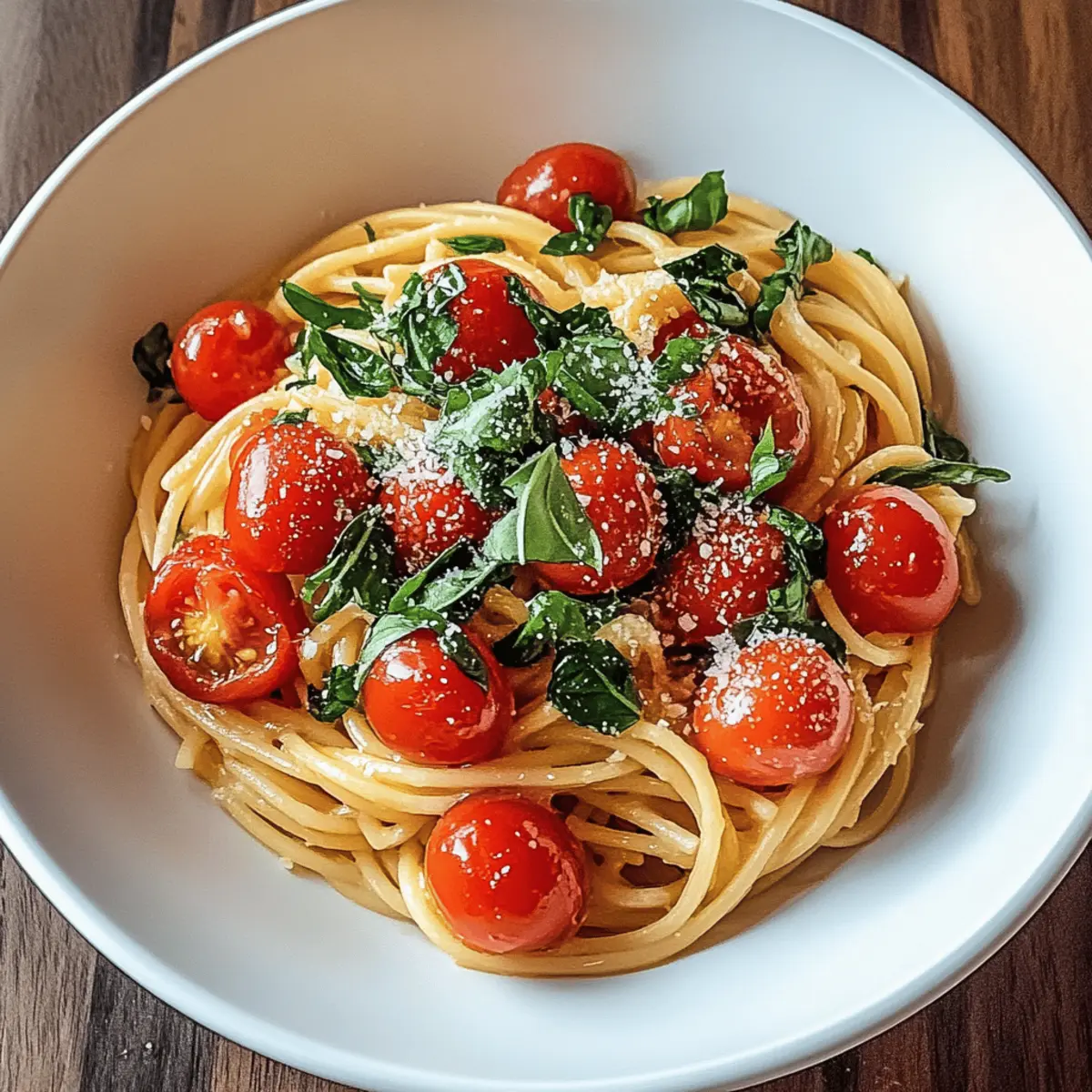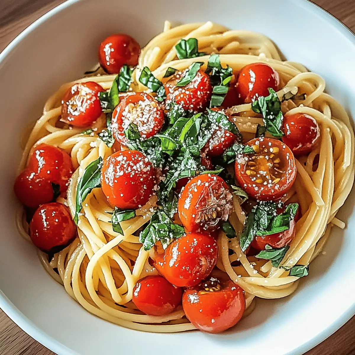 Jump to Recipe Print RecipeAs I stood by the stove, the sweet aroma of sizzling garlic mingling with ripe cherry tomatoes took me back to lazy summer afternoons spent in my grandmother’s kitchen. This Quick and Easy Tomato Basil Pasta is an inviting burst of that vibrant season, bringing sunshine into every bite. With just 30 minutes of effort, you can whip up a delicious dinner that’s not only vegetarian but also a delightful way to use those juicy summer tomatoes. Whether you’re a kitchen novice or an experienced home chef, this recipe guarantees a satisfying meal that feels both comforting and refreshing. Pair it with a crisp salad, or enjoy it on its own; either way, you’ll love the ease and flavor of this dish. Curious about how to bring a taste of summer to your dinner table? Let’s dive in! Why is this pasta a summer favorite? Fresh Ingredients: This Tomato Basil Pasta shines with vibrant, in-season tomatoes that burst with flavor and freshness, making it a fantastic summer dish. Quick and Easy: With just 30 minutes from start to finish, you can create a satisfying meal without spending all evening in the kitchen. Vegetarian Delight: This recipe brings together healthy, plant-based ingredients that are both nutritious and comforting—a perfect fit for vegetarian diets. Versatile Options: Feel free to mix it up by adding grilled chicken or shrimp for a protein boost or sprinkling in your favorite veggies for added nutrition. Crowd-Pleaser: Whether served at a family gathering or a cozy dinner for two, this dish is bound to impress and satisfy everyone at the table. If you’re looking for more pasta ideas, check out our Italian Pasta Salad for a refreshing twist! Tomato Basil Pasta Ingredients For the Pasta • Pasta (12 ounces) – The base for this delicious dish, providing texture and satisfaction. Feel free to substitute with whole wheat or gluten-free pasta if desired. For the Sauce • Olive Oil (2 tablespoons) – Adds a rich flavor and is perfect for sautéing garlic and tomatoes; using high-quality extra-virgin olive oil brings out the best taste. • Garlic (2 cloves, minced) – Infuses the pasta with a savory note; sauté until golden to avoid bitterness. • Red Pepper Flakes (1/4 teaspoon, optional) – Introduces a subtle heat that beautifully balances the sweetness of the tomatoes. • Cherry Tomatoes (4 cups, halved) – These juicy gems create a natural sauce as they cook; their concentrated flavor is a summer must-have! • Salt and Freshly Ground Black Pepper – Essential for seasoning, enhancing the natural sweetness of the tomatoes. For the Garnish • Basil Leaves (1/2 cup, roughly chopped) – Imparts a fresh, herbal quality; add at the end to preserve its vibrant flavor. • Parmesan Cheese (1/4 cup, grated) – Provides a creamy, tangy finish to the dish; feel free to omit for a vegan variant. • Balsamic Vinegar (1 tablespoon, optional) – Adds complexity and a tangy kick; can be swapped with lemon juice for a zesty twist. This Tomato Basil Pasta is not just a meal; it’s a taste of summer in a bowl, ready to delight your family and friends! Step‑by‑Step Instructions for Tomato Basil Pasta Step 1: Boil the Pasta Begin by filling a large pot with water and adding a generous pinch of salt. Bring the water to a rolling boil over high heat, then add 12 ounces of pasta. Cook until al dente, usually about 8–10 minutes, stirring occasionally. Once cooked, reserve ½ cup of the pasta water before draining the rest in a colander. Step 2: Sauté the Aromatics While the pasta is cooking, heat 2 tablespoons of olive oil in a large skillet over medium heat. Add 2 cloves of minced garlic and ¼ teaspoon of red pepper flakes, sautéing for about 1 minute until the garlic is fragrant but not browned. Keep an eye on it to avoid bitterness, as the aroma fills the kitchen. Step 3: Cook the Tomatoes Next, add 4 cups of halved cherry tomatoes to the skillet. Season them with salt and freshly ground black pepper to taste. Cook for 5–7 minutes, stirring occasionally, until the tomatoes have softened and begun to release their juices, creating a natural sauce. Step 4: Combine Pasta and Sauce Once the tomatoes are nicely cooked, add the drained pasta directly into the skillet. Stir everything together gently, ensuring the pasta is well-coated with the tomato mixture. Gradually pour in the reserved pasta water, about a couple of tablespoons at a time, until you achieve your desired sauce consistency. Step 5: Add Fresh Herbs Stir in ½ cup of roughly chopped fresh basil and 1 tablespoon of balsamic vinegar into the pasta. Cook for an additional 1 minute, allowing the basil to wilt and the flavors to meld beautifully. This final touch will elevate your Tomato Basil Pasta to a delightful summer dish. Step 6: Finish and Serve Remove the skillet from heat and sprinkle ¼ cup of grated Parmesan cheese over the pasta, tossing gently to combine everything. Taste and adjust seasoning with extra salt and pepper if needed. Serve warm, garnished with additional basil and Parmesan for a beautiful presentation that captures the essence of summer. Make Ahead Options Preparing your Tomato Basil Pasta ahead of time is a fantastic way to streamline dinner on busy weeknights! You can chop your garlic, halve the cherry tomatoes, and even julienne the basil up to 24 hours in advance; simply store these components in airtight containers in the refrigerator to maintain freshness. The tomato mixture can also be cooked and stored for up to 3 days. When you’re ready to finish the dish, just reheat the sauce in a skillet while you cook the pasta. Toss everything together, add your fresh basil and Parmesan, and you’ll enjoy a delicious, homemade meal with minimal effort—it’s just as flavorful and satisfying as when made fresh! Tomato Basil Pasta Variations & Substitutions Explore how to personalize your Tomato Basil Pasta for a unique twist! Gluten-Free: Substitute traditional p
