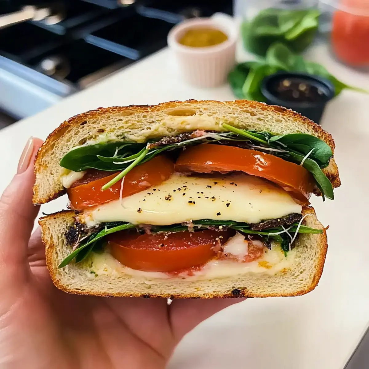 • Choose the Right Bread: Use a sturdy bread roll that can hold up to the juicy ingredients without falling apart, enhancing your Tomato Mozzarella Melt Sandwich.