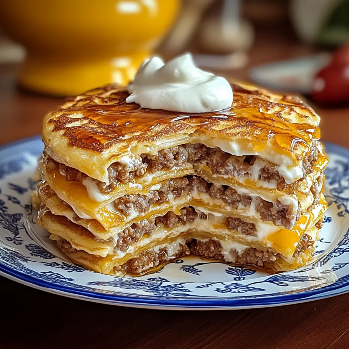Jump to Recipe Print RecipeThere’s nothing quite like the cozy aroma of breakfast wafting through the house on a lazy Sunday morning. Enter the Ultimate Breakfast Lasagna: Pancake Sausage Casserole—a delightful twist on traditional breakfast that elevates your morning routine to new heights. This dish artfully combines fluffy pancakes layered with savory sausage and gooey cheese, creating a comforting and satisfying brunch centerpiece. What’s more, it’s a breeze to prepare, making it perfect for gathering friends or family without the fuss. You can even customize it with your favorite sausage or veggie options, ensuring it pleases everyone at the table. So, are you ready to transform your breakfast game with this sweet and savory masterpiece? Why is Breakfast Lasagna So Irresistible? Comforting Layers: The combination of fluffy pancakes and savory sausage creates a warm, inviting dish that feels like a hug on your plate. Easy to Prepare: With straightforward instructions, this recipe requires minimal effort, making it perfect for busy mornings or leisurely brunches with friends. Crowd-Pleasing: Ideal for gatherings, it’s a unique take on breakfast that will have everyone asking for seconds. Customizable Delight: Swap out the sausage for bacon or try adding chocolate chips for a sweet twist—it’s versatile for all tastes. Balanced Nutrition: With each slice providing a satisfying blend of flavors and nutrients, this breakfast casserole is both delightful and filling. Pair it with fresh fruit or a dollop of whipped cream for a complete brunch experience! Ultimate Breakfast Lasagna Ingredients • For the Pancake Base Pancake Mix – Essential for the fluffy base of the lasagna; use homemade pancake mix for customization. Eggs – Binds the ingredients together; consider organic eggs for better quality. Milk – Adds creaminess to the batter; almond milk can provide a lighter version. • For the Savory Filling Sausage Links – Provides savory flavor; feel free to swap for bacon or spicy sausage for an extra kick. Cheese – Adds gooeyness and enhances flavor; mixing cheddar with mozzarella delivers a balanced taste. • For the Sweet Drizzle Maple Syrup – Sweetens the dish and complements the savory elements; honey can replace it but will change the flavor. • For Preparation Baking Spray – Keeps the casserole from sticking to the pan; non-stick spray is essential for easy release. Get ready to delight your family with the delicious layers of this Ultimate Breakfast Lasagna! Step‑by‑Step Instructions for Ultimate Breakfast Lasagna Step 1: Cook Sausage In a skillet over medium heat, cook the sausage links for about 10-12 minutes until they are golden brown and cooked through, turning occasionally for even browning. Once cooked, remove the links from the skillet and let them cool slightly before slicing them into bite-sized pieces, ready to add a savory kick to your Ultimate Breakfast Lasagna. Step 2: Prepare Batter In a large mixing bowl, whisk together the pancake mix, milk, and eggs until you have a smooth, thick batter with no lumps—this should take about 2-3 minutes. The batter should be pourable but thick enough to hold its shape when layered, creating that delightful fluffy base for your breakfast lasagna. Step 3: Layer Ingredients Preheat your oven to 350°F (175°C). Grease a 9×13-inch baking dish with baking spray to prevent sticking. Pour half of the pancake batter into the bottom of the dish, spreading it evenly. Next, layer half of the sliced sausage and half of the cheese on top. Then, repeat this layering process with the remaining batter, sausage, and cheese for a flavorful Ultimate Breakfast Lasagna. Step 4: Bake Carefully place your assembled casserole in the preheated oven and bake for 30-35 minutes. Keep an eye on it; the top should turn golden brown and fragrant, signaling it’s ready. A toothpick inserted into the center should come out clean, ensuring a fully cooked and fluffy breakfast lasagna. Step 5: Serve Once baked, remove the casserole from the oven and let it cool slightly for about 5 minutes. Drizzle with warm maple syrup, allowing it to seep into the layers, and serve warm. Each slice of your Ultimate Breakfast Lasagna should reveal those comforting layers of pancakes, sausage, and gooey cheese, bringing warmth and joy to your brunch gathering. Ultimate Breakfast Lasagna: Delicious Variations Feel free to unleash your culinary creativity and personalize this delightful dish to match your tastes! Bacon Swap: Use crispy bacon in place of sausage for a smoky flavor. The richness of bacon brings a satisfying crunch to each bite. Veggie Delight: Substitute the sausage with a medley of sautéed veggies like bell peppers and spinach for a fresh, plant-based option. This adds a colorful twist and vibrant flavors to your casserole. Sweet Surprise: Add chocolate chips or diced bananas to the pancake batter for a luxurious touch. These sweet elements will surprise your taste buds and delight everyone at your table. Spice It Up: Incorporate jalapeños or crushed red pepper flakes into the sausage layer for a zesty kick. Pairing this with creamy cheese balances the heat perfectly. Cheese Lovers: Experiment with different cheeses like feta or pepper jack to alter the flavor profile. Feta adds a tangy depth, while pepper jack introduces delightful heat and creaminess. Herbs & Spices: Mix in fresh herbs such as chives or basil into the batter for an aromatic twist. This not only enhances flavor but also adds a beautiful touch of color to your dish. Nutty Crunch: Sprinkle some chopped nuts like pecans or walnuts on top before baking for added texture. This contrast will give your dish an exciting crunch that pairs beautifully with the soft layers. Maple-Lemon Drizzle: Combine maple syrup with a touch of lemon juice for a refreshing drizzle on top. This brightens the flavors and adds a unique finish to your breakfast lasagna. If you’re on the lookou