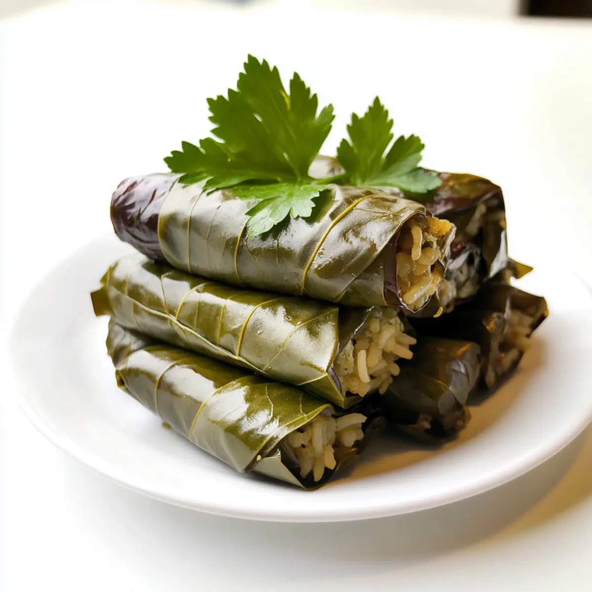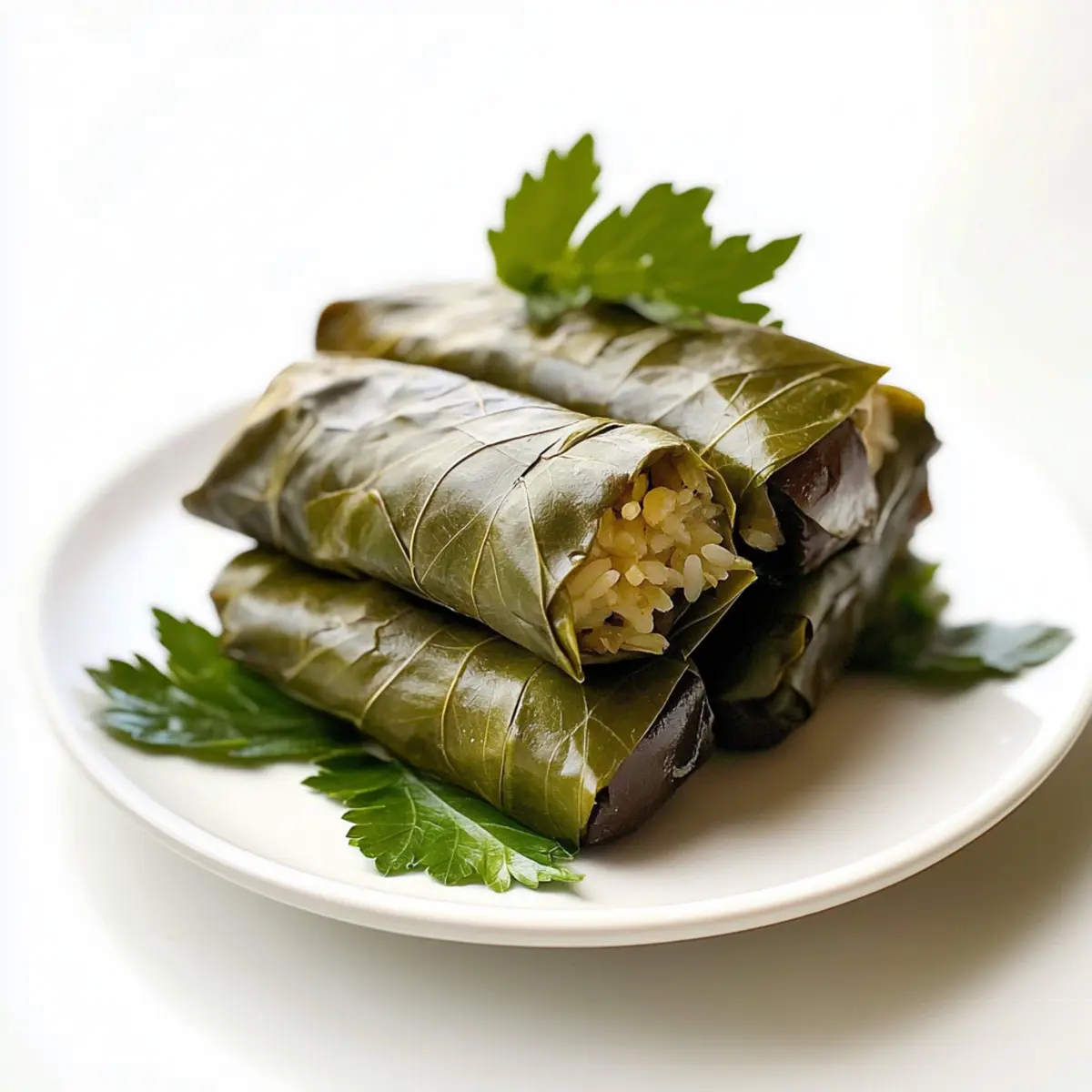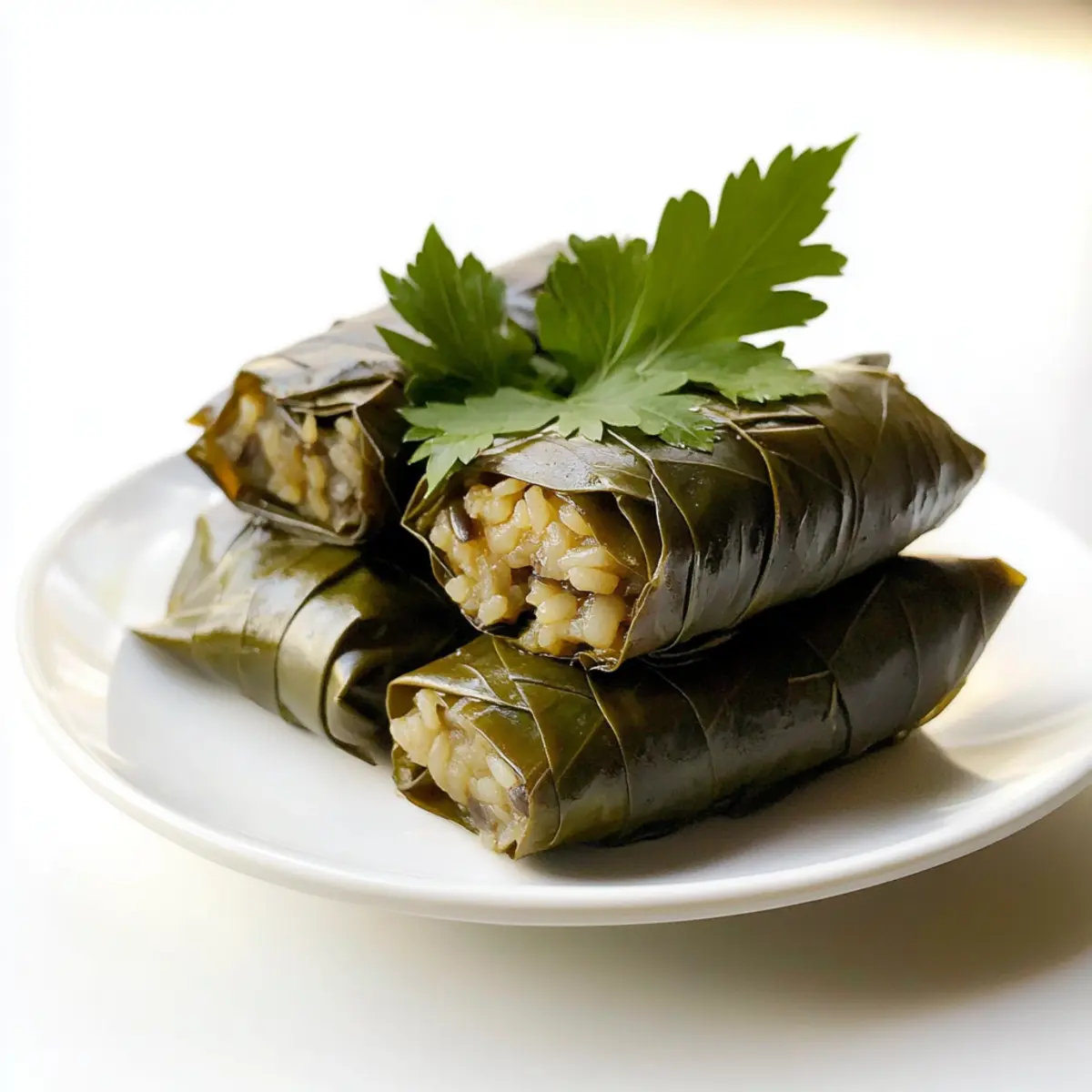 Jump to Recipe Print RecipeAs I stood at my kitchen counter, the aroma of roasting eggplant filled the air, transporting me straight to a sun-kissed Mediterranean garden. These Vegan Rice Stuffed Dolmades bring all that vibrant goodness into your home. With fresh herbs, seasoned basmati rice, and tangy olives wrapped in tender grape leaves, this dish is not only a feast for the senses, but it also doubles as a quick appetizer or a light, healthy snack. Perfect for impressing guests or enjoying a casual meal, they’re just as delightful warm as they are at room temperature. Curious about how to make this authentic Mediterranean delight? Let’s dive into the recipe! Why Choose Vegan Rice Stuffed Dolmades? Vibrant flavors: A delightful mix of dense roasted eggplant, fresh herbs, and briny olives makes each bite a burst of Mediterranean goodness. Healthy & satisfying: These dolmades are low in calories yet rich in fiber and nutrients, making them a guilt-free snack! Quick to prepare: With simple ingredients and straightforward steps, this recipe is perfect for busy weekdays or last-minute gatherings. Versatile appeal: Whether as an appetizer, side dish, or centerpiece, they adapt beautifully to different occasions—just like a fresh salad! If you’re looking for more healthy meal ideas, try Vegan Pasta Salad for a vibrant addition to your menu. Cultural charm: Enjoy the authentic flavors of a beloved Mediterranean dish that’s welcoming to everyone, whether you’re vegan or just looking to try something new! Vegan Rice Stuffed Dolmades Ingredients For the Dolmades • Grape Leaves – These unique wrappers provide an authentic taste and texture; look for jarred, plain leaves for the best quality. • Basmati Rice – Offers a light, fluffy filling; you can substitute jasmine rice if you prefer a sweeter note. • Roasted Eggplant – This ingredient adds creaminess and depth to the dish; make sure to roast until tender for the best flavor. • Olives – Choose Kalamata or green olives for a briny kick; feel free to adjust according to your taste preferences. • Fresh Herbs (e.g., dill, parsley, mint) – These are essential for an aromatic touch; don’t skimp on freshness to elevate your dolmades! • Spices (e.g., cinnamon, paprika, turmeric) – These add warmth and complexity; tailor your spice mix based on flavor preferences. • Lemon Juice – Brightens the filling and balances the flavors; freshly squeezed juice will deliver the most vibrant taste. Optional Serving Suggestions • Olive Oil – Drizzle for added richness and flavor; it enhances the overall experience when served. • Tahini Sauce – A perfect complement to the dolmades; offers a creamy dip with a nutty taste that balances the dish beautifully. Get ready to embark on a delicious journey with these Vegan Rice Stuffed Dolmades! Step-by-Step Instructions for Vegan Rice Stuffed Dolmades Step 1: Prep Grape Leaves Begin by rinsing the grape leaves under cool water to wash away any excess brine. Pat them dry gently with a towel and set them aside. This crucial first step ensures that your Vegan Rice Stuffed Dolmades are not overly salty, allowing the fresh flavors of your filling to shine through. Step 2: Roast Eggplant Preheat your oven to 425°F (220°C). Slice the eggplant in half, creating cross-hatch patterns on the cut surface to enhance roasting. Place the eggplant cut-side up on a baking sheet and roast for about 15 minutes, or until tender and lightly caramelized. Let it cool, then scoop the flesh into a mixing bowl, ready to elevate your filling. Step 3: Make Filling In the bowl with the roasted eggplant flesh, combine the cooked basmati rice, chopped olives, and a generous handful of fresh herbs, such as dill and parsley. Sprinkle in your chosen spices, like paprika and cinnamon, along with a splash of fresh lemon juice. Mix everything thoroughly until you have a cohesive and flavorful filling that embodies the essence of Vegan Rice Stuffed Dolmades. Step 4: Stuff Grape Leaves Lay a grape leaf on a clean surface, with the stem end facing you. Spoon 1 to 2 tablespoons of the herbaceous filling near the base. Fold the sides of the leaf snugly over the filling, then roll it away from you to create a tight bundle. Repeat this process with the remaining leaves and filling, ensuring each dolmade is well-packed and secure to maximize flavor and texture. Step 5: Cook Dolmades Arrange the stuffed grape leaves in a single layer in a wide pan. Pour in enough water to cover the dolmades, then place a lid on the pan to trap steam. Cook them on low heat for about 20 to 30 minutes, keeping an eye on the water level. The dolmades should be heated through and tender, making for a delicious Vegan Rice Stuffed Dolmades experience. Step 6: Serve Once cooked, allow the dolmades to cool slightly before serving. For an extra touch of elegance, you can drizzle them with high-quality olive oil or serve alongside a creamy tahini sauce. Enjoy this vibrant dish either warm or at room temperature, perfect for impressing guests at your next gathering! Expert Tips for Vegan Rice Stuffed Dolmades Tender Leaves: Ensure grape leaves are thawed and pliable. Dried or overly stiff leaves can tear easily, making rolling difficult. Filling Amount: Use just enough filling—1 to 2 tablespoons per leaf. Overstuffing can lead to bursting during cooking, ruining your vegan rice stuffed dolmades. Check Water Levels: While steaming, keep an eye on the water. If it evaporates too quickly, the dolmades can burn; add more liquid if necessary. Taste Before Steaming: Always taste your filling mix before rolling. Adjust seasoning to your preference; this is key for a flavorful experience! Use Fresh Herbs: Fresh herbs elevate the dish, adding aroma and brightness. Dried herbs won’t give the same robust flavor profile in your dolmades. Make Ahead Options These Vegan Rice Stuffed Dolmades are perfect for busy weeknights or gatherings! You can prepare the f