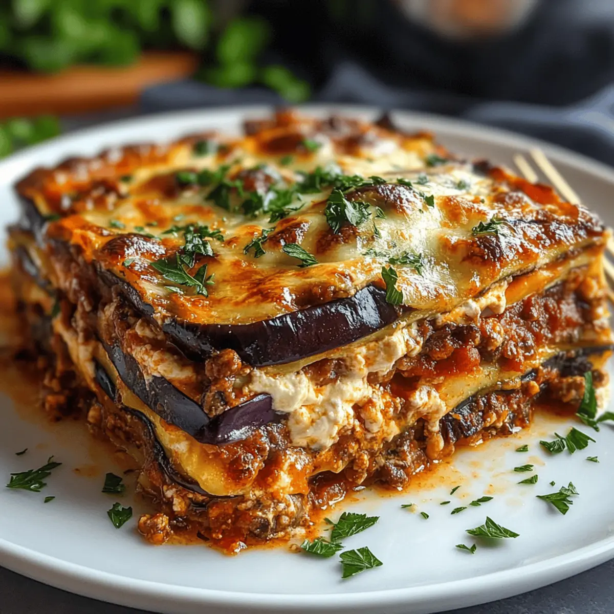 Jump to Recipe Print RecipeYou know that moment when you bite into a dish that feels like a warm hug, but you realize it’s guilt-free? That’s exactly what you can expect from this Healthy Vegetarian Eggplant Lasagna with Rich Mushroom Filling. By swapping traditional pasta for tender roasted eggplant, this Vegetarian Eggplant Lasagna redefines comfort food, making it lighter and more nutritious without skimping on flavor. It’s loaded with hearty mushrooms, creamy ricotta, and rich marinara sauce, perfect for family dinners or those special gatherings where you want to impress but keep things easy. Plus, with a customizable recipe that accommodates vegan diets, everyone can enjoy this delightful twist on a classic. Are you ready to tantalize your taste buds and elevate your weeknight cooking? Why Choose Vegetarian Eggplant Lasagna? Unique twist: Experience a fresh take on lasagna by using roasted eggplant in place of pasta, making it a deliciously lighter option that doesn’t sacrifice taste. Flavor explosion: Infused with rich mushroom filling and creamy ricotta, this dish brings comfort food to new heights, ensuring every bite is packed with satisfaction. Customizable: There’s room for creativity! Whether you want to go vegan with alternates like dairy-free cheese or add in some leafy greens, the flexibility of this recipe makes it suitable for all palates. Family-friendly: Perfect for gatherings, this lasagna is sure to be a hit, impressing both kids and adults alike while catering to health-conscious eaters. Quick and easy: With straightforward prep and baking instructions, you can whip up this gourmet meal in under an hour. It’s a perfect way to indulge without the lengthy time commitment! Consider exploring more delightful veggie creations, such as a wholesome vegetable stir-fry or a vibrant quinoa salad that will also satisfy your comfort food cravings. Vegetarian Eggplant Lasagna Ingredients • Here’s everything you need to create this guilt-free delight! For the Eggplant Layers Eggplant – A fantastic pasta substitute that significantly reduces carbs and calories; choose firm, shiny varieties for best results. Olive Oil – Essential for roasting eggplant and sautéing mushrooms, adding flavor while helping them cook evenly. For the Mushroom Filling Mushrooms (e.g., cremini) – They lend a meaty texture and rich umami flavor; mixing different types can enhance complexity. Onion – Sautéed onion contributes natural sweetness and depth to the filling mixture. Garlic – An aromatic staple that enhances the savory profile of your lasagna. For the Cheese Mixture Ricotta Cheese – Creamy richness is key to layering; consider dairy-free options for a vegan version. Parmesan Cheese (optional) – Adds a delicious layer of complexity; simply skip for vegan needs. Egg – Helps bind your ricotta filling; replace with a flax egg for a plant-based alternative. For Assembly Marinara Sauce – Base layer for moisture and flavor; opt for low-sugar versions for a healthier choice. Mozzarella Cheese – The ultimate melty topping; switch to dairy-free cheese for a vegan option. Herbs (e.g., oregano, basil) – Fresh herbs enhance flavor brightening the dish up; they’re a must-have for freshness. Salt and Pepper – Crucial for seasoning; feel free to adjust these to your taste preference. This Vegetarian Eggplant Lasagna not only satisfies your comfort food cravings but also brings a healthy twist to traditional recipes! Step‑by‑Step Instructions for Vegetarian Eggplant Lasagna Step 1: Preheat and Prepare Start by preheating your oven to 400°F (200°C) while you prepare your baking sheets. Line them with parchment paper or drizzle a bit of olive oil to prevent sticking. This initial stage is crucial for achieving perfectly roasted eggplant, the backbone of your Vegetarian Eggplant Lasagna. Step 2: Slice and Salt Eggplant Carefully slice the eggplant into thin rounds, about ½ inch thick. Sprinkle each slice generously with salt and let them sit for 15 minutes. This process will help draw out moisture and bitterness, ensuring each roasted piece is flavorful. Afterward, blot the slices dry with a paper towel. Step 3: Roast Eggplant Arrange the salted eggplant slices in a single layer on the prepared baking sheets. Drizzle them lightly with olive oil and roast in the preheated oven for 20-25 minutes, flipping them halfway through. You’ll know they are ready when they are tender and golden brown, providing the perfect base for your lasagna layers. Step 4: Sauté Onions and Mushrooms While the eggplant roasts, heat a tablespoon of olive oil in a large skillet over medium heat. Add diced onions and sauté until they turn translucent, about 5 minutes. Then, stir in minced garlic and cook for an additional minute before adding sliced mushrooms. Cook until the mushrooms are browned and tender, which takes about 6-8 minutes. Step 5: Prepare Ricotta Mixture In a mixing bowl, combine ricotta cheese, a beaten egg, grated Parmesan cheese (if using), and your choice of chopped herbs. Mix thoroughly until smooth and creamy. This rich filling will add a wonderful layer of flavor to your Vegetarian Eggplant Lasagna, so make sure it’s well blended. Step 6: Start Layering the Lasagna Lower your oven temperature to 375°F (190°C) once your eggplant is out. Spread a thin layer of marinara sauce on the bottom of a baking dish. Layer the roasted eggplant slices over the marinara, followed by half of the ricotta mixture, half of the sautéed mushrooms, and another layer of marinara. Repeat this process until all ingredients are used. Step 7: Top with Cheese Once you have completed the layers, sprinkle the top with shredded mozzarella cheese. This will melt beautifully, creating a deliciously gooey topping for your Vegetarian Eggplant Lasagna. Make sure to cover the dish with foil to prevent the cheese from browning too quickly. Step 8: Bake the Lasagna Place your layered lasagna into the p