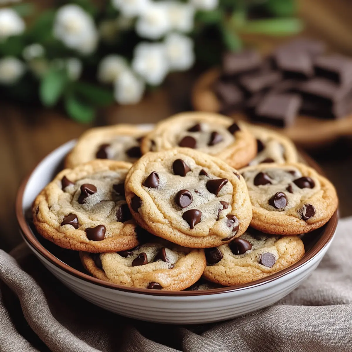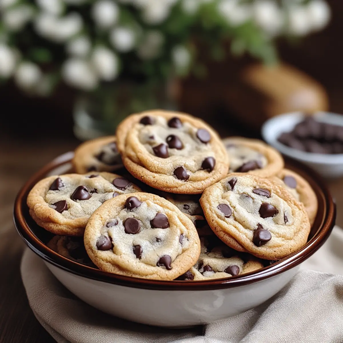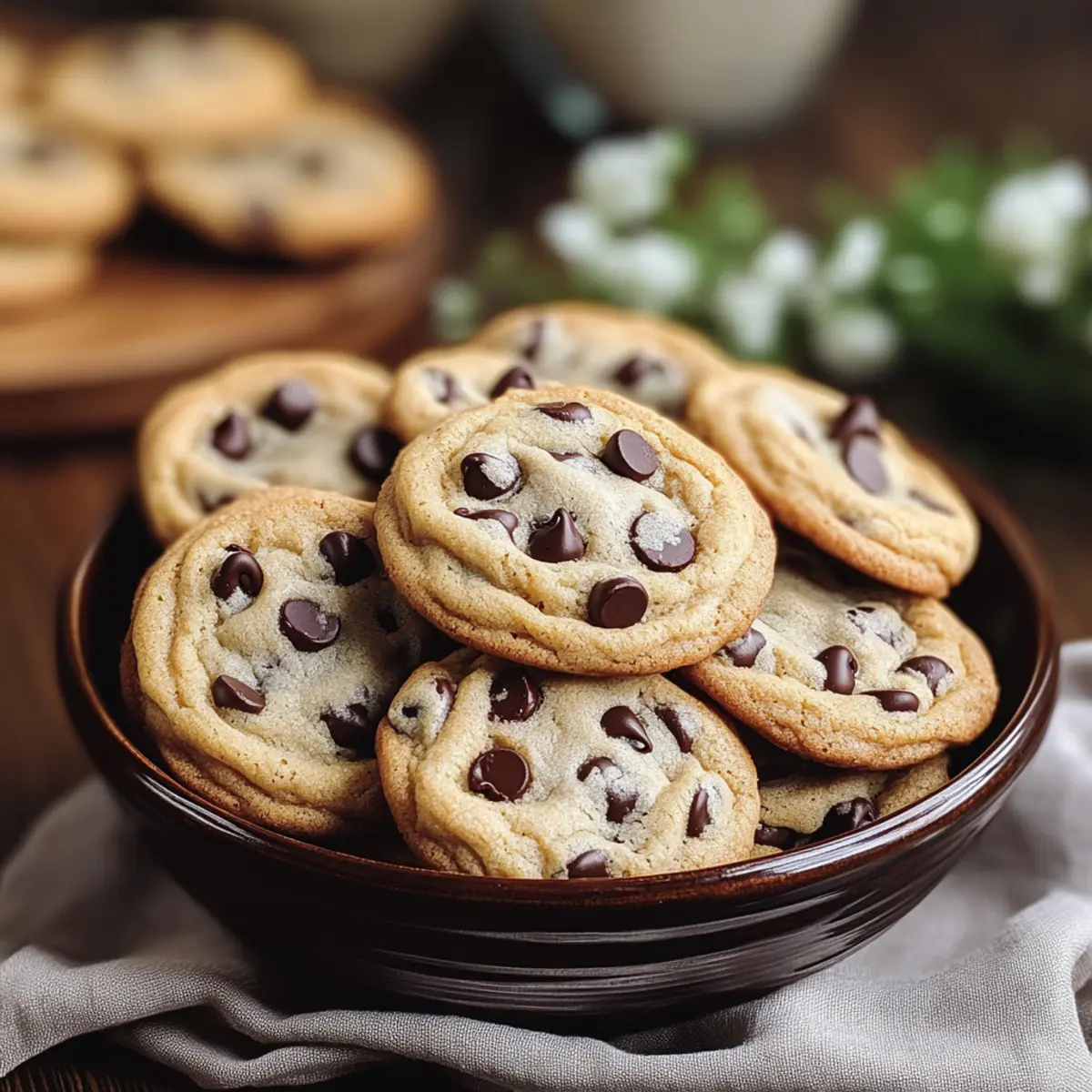 Jump to Recipe Print RecipeThe aroma of freshly baked cookies wafting through the kitchen can instantly transport us back to simpler times—those cozy afternoons spent in our grandmother’s warm embrace. This recipe for Vintage Chocolate Chip Cookies embodies that nostalgia, boasting golden edges and soft, gooey centers that feel like a warm hug. Not only is this classic recipe a delightful crowd-pleaser, perfect for any occasion, but it’s also incredibly easy to whip up, allowing even novice bakers to shine. Imagine the joy of sharing these delightful treats with friends or simply indulging in a well-deserved moment of self-care. Are you ready to bake up a batch of these timeless cookies that will surely become a cherished part of your home baking tradition? Why Are Vintage Chocolate Chip Cookies So Special? Nostalgic Delight: These Vintage Chocolate Chip Cookies bring back memories of home baking, creating a comforting atmosphere that’s perfect for any gathering. Simplicity Wins: This recipe is straightforward and perfect for all skill levels. Just mix, scoop, and bake! Irresistible Aroma: The sweet smell of cookies baking fills your home, making everyone feel warm and inviting. Versatile Treat: Feel free to swap in dark chocolate chips or nuts for a personal twist! You can even pair them with a refreshing glass of cold milk or use them to make delightful ice cream sandwiches for an extra special dessert. For more fun variations, check out these Chocolate Banana Protein smoothies or delicious Chocolate Chip Cookies for a tasty treat! Crowd-Pleaser: Whether you’re hosting a gathering or enjoying a cozy night in, these cookies are sure to be a hit. The Ingredients for Vintage Chocolate Chip Cookies For the Dough • 125g unsalted butter – Provides richness and moisture; substitute with margarine for a dairy-free option. • 125g caster sugar – Adds sweetness and contributes to the cookie’s tender texture; brown sugar can be used for a deeper flavor. • 125g light brown sugar – Enhances sweetness while adding a slight caramel flavor; can replace with more caster sugar if needed. • 1 tsp vanilla extract – Provides aromatic depth; use pure vanilla for the best flavor or almond extract for a different twist. • 1 large egg – Binds ingredients together and adds moisture; a flax egg can be used for a vegan alternative. • 250g plain flour – Creates structure; substitute with all-purpose flour or a gluten-free blend for a different dietary need. • ½ tsp baking powder – Helps cookies rise slightly; baking soda can work as an alternative but may change texture. • ¼ tsp salt – Balances sweetness and enhances flavor; essential for all baked goods. • 200g milk chocolate chips – Offers sweetness and creaminess; dark or white chocolate chips can be swapped based on your preference. Optional Variations • Dark chocolate chips – For a richer flavor experience. • Nuts (like walnuts or pecans) – Adds a delightful crunch to the cookies. • Other flavored chips (butterscotch or peanut butter) – Experiment with different flavors for a unique twist on these vintage chocolate chip cookies! Step‑by‑Step Instructions for Vintage Chocolate Chip Cookies Step 1: Preheat the Oven Begin your baking journey by preheating the oven to 190°C (or 375°F). This step is crucial as it ensures your Vintage Chocolate Chip Cookies will bake evenly, achieving that perfect golden edge. While your oven warms up, you can gather your ingredients and prepare the dough. Step 2: Cream the Butter and Sugars In a large mixing bowl, combine 125g of softened unsalted butter, 125g of caster sugar, and 125g of light brown sugar. Use a hand mixer or stand mixer to beat the mixture on medium speed until it becomes light and fluffy, which should take about 3-5 minutes. This creamy blend is the foundation for your cookies, providing ample moisture and sweetness. Step 3: Incorporate the Egg and Vanilla Next, crack in one large egg and add 1 teaspoon of vanilla extract to the butter-sugar mixture. Beat the mixture until it’s fully combined and silky in texture. This step introduces moisture and flavor, enhancing the overall profile of your Vintage Chocolate Chip Cookies. Step 4: Prepare the Dry Ingredients In a separate bowl, sift together 250g of plain flour, ½ teaspoon of baking powder, and ¼ teaspoon of salt. This step ensures that your dry ingredients are well-mixed and free of lumps, creating a smooth dough. Set this bowl aside while you combine the wet and dry mixtures. Step 5: Mix the Dry into the Wet Gradually add the dry mixture to the wet ingredients, using a spatula or wooden spoon to fold it in. Mix until just combined, being careful not to overwork the dough. You’ll want to see a soft, slightly sticky consistency that is still cohesive—this is key to achieving the tender textures characteristic of Vintage Chocolate Chip Cookies. Step 6: Add the Chocolate Chips Gently fold in 200g of milk chocolate chips until evenly distributed throughout the dough. The chips will add those delightful bursts of sweetness in every bite. Once combined, take a moment to admire the beautiful cookie dough you’ve crafted—the promise of delicious treats to come! Step 7: Portion the Dough Using a tablespoon or cookie scoop, drop rounded mounds of dough onto ungreased baking sheets, ensuring they are spaced about 2 inches apart. This space allows the Vintage Chocolate Chip Cookies to spread a bit while baking, preventing them from merging together. Aim for consistency in size for even baking. Step 8: Bake the Cookies Place the baking sheets in the preheated oven and bake for 8–10 minutes. Keep an eye on them; you’re looking for the edges to turn a lovely golden brown while the centers remain soft and slightly underbaked. These visual cues are essential for that perfect chewy texture fans love in Vintage Chocolate Chip Cookies. Step 9: Cool and Enjoy After baking, remove the cookies from th