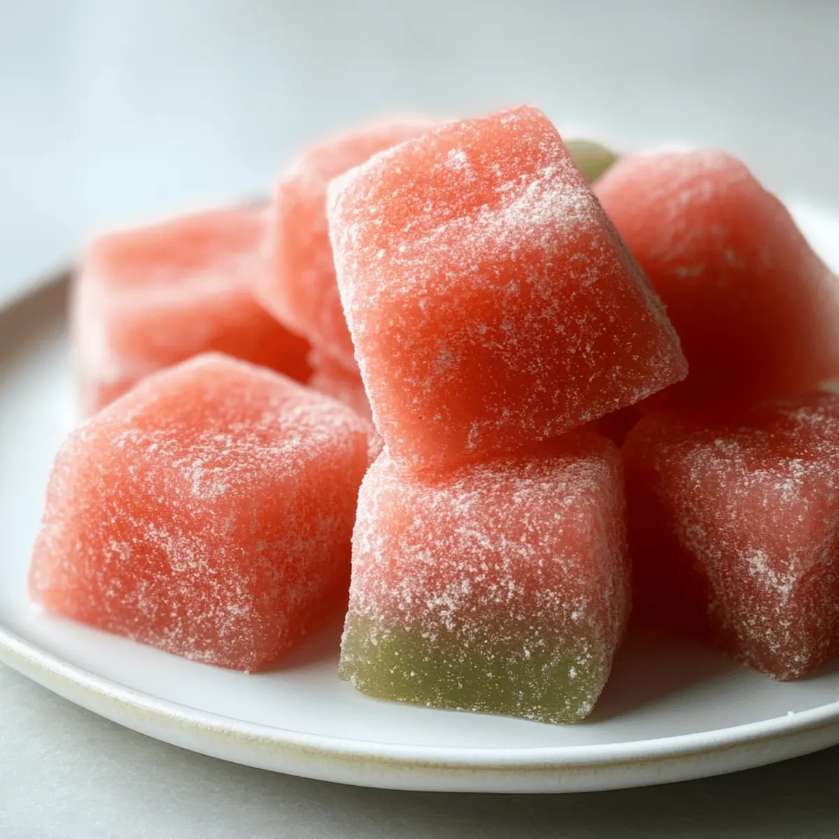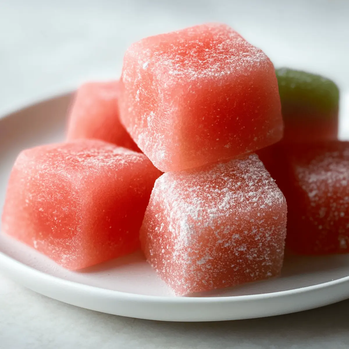 Jump to Recipe Print RecipeAs I savored the last bite of a summer picnic, I stumbled upon a sweet revelation: Watermelon Mochi. This delightful treat perfectly melds the juicy essence of watermelon with a soft, chewy texture that will transport you to sun-drenched afternoons. With its gluten-free and dairy-free credentials, this recipe isn’t just a refreshing dessert—it’s a healthier, allergy-friendly alternative to traditional mochi. You can whip up these irresistibly yummy squares in no time, making them the ultimate go-to snack for both kids and adults alike. Get ready to indulge your sweet tooth while transforming ordinary moments into something truly special. Curious about how to create this cool, summery delight? Let’s dive into the recipe! Why Choose Watermelon Mochi? Uniquely Refreshing: The combination of real watermelon juice and glutinous rice flour creates a one-of-a-kind treat, bursting with flavor. Easy Preparation: With simple ingredients and straightforward steps, you’ll have a delightful dessert ready in no time. Allergy-Friendly: Perfect for those with dietary restrictions; these squares are naturally gluten-free and dairy-free, allowing everyone to indulge without worry. Versatile Options: Feel free to switch up the flavors by trying variations with seasonal fruits like mango or strawberry! Crowd-Pleasing Snack: Whether served at a summer gathering or a cozy night in, these Watermelon Mochi squares are sure to impress guests of all ages. Try serving them with a refreshing side, such as a Watermelon Berry Salad for that perfect summer vibe! Watermelon Mochi Ingredients • Dive into this refreshing treat with all-natural ingredients for a delicious, guilt-free snack! For the Mochi • Fresh Watermelon – Provides natural flavor and moisture; opt for ripe, sweet watermelon for the best taste. • Glutinous Rice Flour – Essential for the chewy texture of mochi; it cannot be substituted with regular rice flour. • Tapioca Starch – Enhances texture and adds elasticity; if needed, this can be replaced with potato starch. • Maple Sugar – Gives a natural sweetness; coconut sugar works well as a similar alternative. • Avocado Oil – Adds moisture and helps prevent sticking; feel free to substitute with any neutral oil like canola or sunflower. Now you’re all set to gather these ingredients to make the perfect Watermelon Mochi! Step‑by‑Step Instructions for Watermelon Mochi Step 1: Prepare Watermelon Juice Start by cutting fresh watermelon into cubes, discarding the rind and seeds. Blend the cubes until smooth to yield about ¾ cup of juice, then strain the mixture through a fine mesh sieve to eliminate any pulp. Set the smooth watermelon juice aside; this will be the refreshing base of your Watermelon Mochi. Step 2: Mix Dry Ingredients In a large mixing bowl, whisk together 1 cup of glutinous rice flour, ¼ cup of tapioca starch, and ¼ cup of maple sugar. Ensure the ingredients are evenly distributed to create a smooth, lump-free dry mixture. This blend will give your Watermelon Mochi its characteristic chewy texture, so it’s essential to mix thoroughly. Step 3: Combine Ingredients Create a well in the center of your dry mixture and pour in the prepared watermelon juice along with 1 tablespoon of avocado oil. Using a whisk, gently mix the wet ingredients into the dry until you achieve a smooth, lump-free batter. This process is crucial for a velvety mochi texture, ensuring all ingredients are well incorporated. Step 4: Cook the Mixture Place a non-stick pan over low to medium heat and pour in the mochi mixture. Stir the batter continuously for about 3 to 4 minutes, or until it becomes thick and sticky, resembling a cohesive dough. You’ll know it’s ready when the mixture starts pulling away from the sides of the pan. Step 5: Shape and Chill Dough Transfer the cooked mochi dough onto a piece of parchment paper. Using a spatula, flatten it into a square shape about 15 x 15 cm. Once shaped, cover it with another sheet of parchment paper and refrigerate for 1 to 2 hours, allowing the mochi to firm up for easy cutting. Step 6: Cut and Dust Mochi After chilling, remove the mochi from the refrigerator and dust it lightly with extra glutinous rice flour to prevent sticking. Carefully cut the square into bite-sized cubes, using a sharp knife or a pastry cutter. Be sure to coat each piece with more rice flour to keep them separated and ready for enjoyment. Step 7: Serve Immediately Your refreshing Watermelon Mochi is now ready to serve! For the best taste and texture, enjoy the mochi fresh. Arrange the squares on a beautiful plate and treat yourself and your guests to this delightful, chewy summer snack bursting with watermelon flavor. What to Serve with Refreshing Watermelon Mochi Squares Building the perfect spread around these delightful treats elevates your summer dessert experience to new heights. Coconut Sorbet: A delightful, creamy contrast that complements the chewy texture of mochi and enhances the tropical flavors. Fresh Fruit Skewers: Colorful, vibrant, and refreshing; they add a perfect crunch and a variety of flavors to your dessert lineup. Green Tea: This light and fragrant tea provides a nuanced bitterness, balancing the sweetness of the watermelon mochi beautifully. Mango Sticky Rice: A classic treat with a similar chewy texture, it’s a fantastic pairing for those who crave more sweetness. The creaminess of coconut milk will elevate your meal. Mint Limeade: The zesty and fresh notes in this drink amplify the flavors of the watermelon and keep you feeling refreshed on hot days. Chocolate Dipping Sauce: Drizzling decadent, melted chocolate over these mochi squares introduces a rich flavor contrast that’s hard to resist. A simple addition, yet it promises to delight! Pineapple Salsa: The sweet and tangy notes from fresh pineapple add a playful twist that pairs delightfully with watermelon, keeping the flavors light and refreshing. Almon