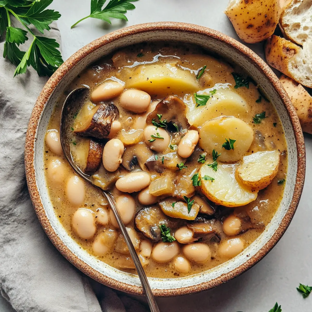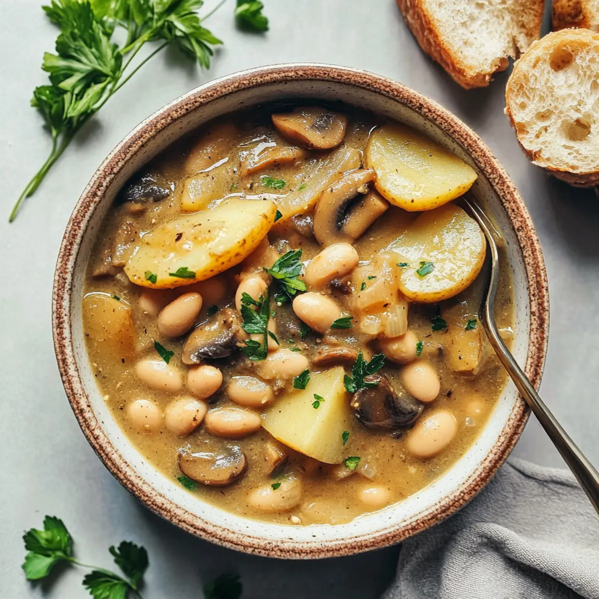 Jump to Recipe Print RecipeAs the chilly air wraps around me like a cozy blanket, I find myself craving something warm and fulfilling. Enter my Cozy White Bean Mushroom Stew—an honest-to-goodness hug in a bowl! This hearty vegan dish is the ultimate comfort food, blending savory mushrooms, tender potatoes, and protein-packed white beans in a rich, dairy-free broth. Not only is it quick and simple to prepare, making it an ideal weeknight dinner, but it also warms your soul during winter months. Whether you’re a seasoned home-chef looking for a delightful twist or someone seeking solace away from fast-food, this stew brings warmth and nourishment with every spoonful. What’s your favorite cozy dish to enjoy on a cold day? Why is this stew a must-try? Comforting Warmth: There’s nothing like a hearty stew to warm you up during chilly evenings. This cozy white bean mushroom stew is like a hug in a bowl, perfect for those cold nights in. Easy to Make: With simple steps and accessible ingredients, you don’t need to be a culinary expert to whip up this delicious dish. Nutrition-Packed: Rich in protein and fiber, each serving is a comforting, wholesome choice that won’t weigh you down. Versatile Ingredients: Feel free to customize with your favorite veggies—carrots or green beans can take it to the next level! Crowd-Pleaser: This stew is not just for vegans; it’s sure to delight everyone at the dinner table. It pairs beautifully with some crusty bread for a complete meal! If you also love fresh and vibrant dishes, check out my Mediterranean Bean Salad to complement your cozy night in! White Bean Mushroom Stew Ingredients For the Stew Base • Vegan Butter – Provides a rich, creamy base; substitute with olive oil for oil-free options. • Onion, diced – Adds natural sweetness and depth of flavor; one medium yields approximately 2 cups. • Mushrooms, sliced – Contributes an earthy flavor; shiitake and cremini varieties are great, but any preferred mushroom works! • Dried Thyme – Imparts herbaceous notes that enhance the stew’s complexity. • Dried Rosemary – Adds a lovely pine-like depth, beautifully complementing other flavors. • Sea Salt and Pepper – Essential for seasoning; adjust to your taste. • Garlic, minced – Boosts aromatic flavor; fresh garlic provides the best results. For Thickening & Depth • Cornstarch – Used for thickening; can be replaced with all-purpose or gluten-free flour. • Tamari or Soy Sauce – Adds umami depth; ensure you use gluten-free tamari if needed. • Dijon Mustard – Offers a hint of acidity; adjust per your taste preference. For the Heart of the Stew • Vegetable Broth – Forms the liquid base; opt for homemade or store-bought broth. • Baby Potatoes, cut into cubes – Serves as a hearty element; about 3 cups when cut. • White Beans, drained and rinsed – Contributes protein and creaminess; cannellini beans are a delicious choice. • Dairy-Free Milk – Adds creaminess to the broth; plain almond milk is wonderful, or use any unsweetened version. For Garnishing • Fresh Parsley, finely chopped (optional) – Adds a fresh finish to the dish, making it look appealing! This cozy white bean mushroom stew is a delightful way to nourish your body and soul while enjoying satisfying flavors. Remember, you can easily customize the recipe to match your tastes! Step‑by‑Step Instructions for White Bean Mushroom Stew Step 1: Melt the Base In a large pot or Dutch oven, melt 2 tablespoons of vegan butter over medium heat. Allow it to fully melt and bubble, ensuring it covers the bottom of the pot for even cooking. This rich base will enhance the creamy texture of the White Bean Mushroom Stew. Step 2: Sauté the Aromatics Add 1 diced onion to the pot, stirring frequently for about 4-5 minutes until it becomes translucent and fragrant. The onion should soften and release its natural sweetness, setting a flavorful foundation for the stew that will envelop all the ingredients. Step 3: Brown the Mushrooms Stir in 8 ounces of sliced mushrooms along with 1 teaspoon each of dried thyme and rosemary, plus salt and pepper to taste. Sauté for 7-10 minutes until the mushrooms are browned and have released their moisture, creating a savory depth that enhances the heartiness of the White Bean Mushroom Stew. Step 4: Infuse Garlic Flavor Add 3 minced garlic cloves to the pot, stirring constantly for about 1 minute. You’ll notice the aroma become more pronounced—this is a sign that the garlic is cooking perfectly without burning. It will deepen the stew’s overall flavor profile wonderfully. Step 5: Thicken the Mix Sprinkle in 2 tablespoons of cornstarch, stirring to coat the sautéed vegetables evenly. Then, pour in 2 tablespoons of tamari or soy sauce and 1 tablespoon of Dijon mustard, mixing well. Allow this mixture to cook for an additional 2-3 minutes to develop the sauce’s texture before adding the liquid. Step 6: Add Liquid Ingredients Pour in 4 cups of vegetable broth while carefully scraping the bottom of the pot to incorporate any flavorful bits. Then, add 3 cups of cubed baby potatoes. Raise the heat to high and bring the mixture to a gentle boil, which will help meld all the delicious flavors together. Step 7: Simmer for Tenderness Once boiling, reduce the heat to low and allow the White Bean Mushroom Stew to simmer uncovered for 15-20 minutes. Stir occasionally, and check for doneness—the potatoes should be fork-tender and bursting with flavor. Step 8: Finish with Creaminess Gently stir in 1 can of drained and rinsed white beans and 1 cup of dairy-free milk. Continue to simmer the stew for another 10-15 minutes until it thickens to your desired consistency. The creamy broth should envelop all ingredients beautifully, creating a harmonious dish. Step 9: Adjust and Serve Taste the stew and adjust seasoning with additional salt, pepper, or herbs as needed. Serve the White Bean Mushroom Stew warm, garnished with freshly 