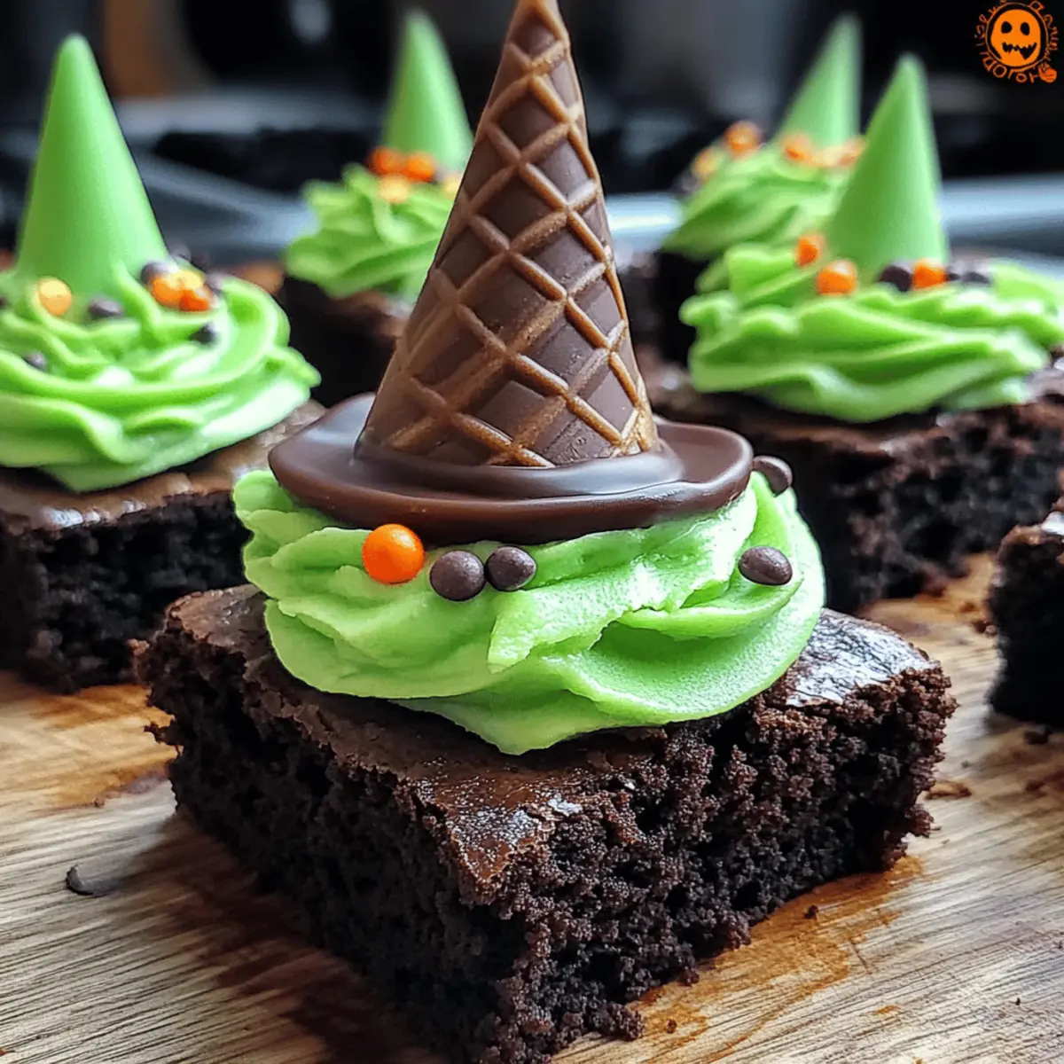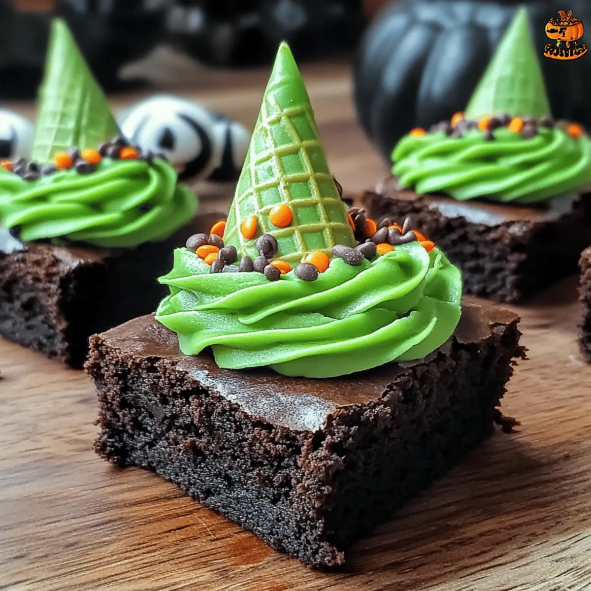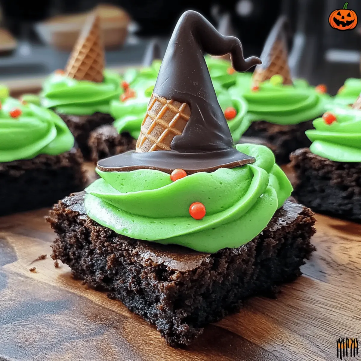Jump to Recipe Print RecipeAs I wandered through the vibrant aisles of my local grocery store, the sight of ghoulish decorations and colorful candies immediately sparked a sense of holiday excitement. Halloween is just around the corner, and what better way to celebrate than with some wickedly delightful Wicked Witch Hat Brownies? These fudgy brownies topped with whimsical ice cream cone witch hats are not only a visual treat but also a perfect crowd-pleaser for all your spooky gatherings. With options for both vegan and gluten-free versions, you can indulge without any guilt! Picture yourself serving these charming creations at your next Halloween party, leaving everyone enchanted and smiling. So, are you ready to don your apron and bring some magical flair to your baking this season? Why Are Wicked Witch Hat Brownies Spooky Good? Irresistible Fun: These brownies bring a festive twist to your Halloween celebrations, combining delicious flavors with a whimsical design that everyone will adore. Versatile Options: With adaptations for gluten-free and vegan diets, everyone can join in the deliciousness, ensuring no one feels left out at the party. Easy to Make: Even if you’re not a baking pro, this straightforward recipe allows you to create eye-catching treats without the fuss. Perfect for Sharing: Whether you’re hitting up a bake sale or throwing a Halloween bash, these brownies are a guaranteed crowd-pleaser. Memorable Presentation: The charming witch hats not only look adorable but also make for excellent conversation starters at any gathering. Give them a try, and pair them with creative ideas like these Chocolate Chip Cookies for a stunning dessert spread! Wicked Witch Hat Brownies Ingredients For the Brownies Unsalted Butter – Adds richness and moisture; substitute with margarine or coconut oil for dairy-free versions. Granulated Sugar – Provides sweetness and structure; coconut sugar can be used for a less processed option. Eggs – Contributes to the structure and moisture; for vegan options, replace each egg with 1/4 cup unsweetened applesauce or flaxseed meal (1 tbsp flaxseed + 3 tbsp water). Vanilla Extract – Enhances flavor; use pure vanilla for best results. All-Purpose Flour – Provides necessary structure; a gluten-free flour blend can be used as a substitute. Unsweetened Cocoa Powder – Offers rich chocolate flavor; dark cocoa powder can intensify the chocolate taste. Salt – Balances sweetness; essential for flavor enhancement. Baking Powder – Leavens the brownie for a light texture. For the Witch Hats Chocolate Ice Cream Cones – Forms the witch hats; other cone types can be used, but chocolate adds sweetness. Powdered Sugar – Key ingredient for frosting; can be swapped with a sugar-free alternative if desired. Milk – Provides moisture for frosting; use plant-based milk for vegan options. Green Food Coloring – For festive decoration; natural color alternatives can also be used. Halloween-themed Sprinkles – Adds visual appeal; customize with your favorite fun edible decorations. With these ingredients in hand, you’ll be well on your way to making wonderfully spooky Wicked Witch Hat Brownies that will delight and impress all your guests! Step‑by‑Step Instructions for Wicked Witch Hat Brownies Step 1: Prepare Ingredient Mixture Begin by melting 1 cup of unsalted butter in a medium saucepan over low heat. Once melted, allow it to cool slightly before combining it with 2 cups of granulated sugar in a large mixing bowl. Stir well until the mixture is smooth and glossy, ensuring there are no lumps. This forms the rich base for your Wicked Witch Hat Brownies. Step 2: Add Eggs and Vanilla Crack in 4 large eggs, one at a time, mixing thoroughly after each addition to maintain a smooth consistency. Follow this by adding 2 teaspoons of vanilla extract, blending it into the batter until combined. The mixture should appear shiny and well-integrated, which helps create the fudgy texture characteristic of these delightful brownies. Step 3: Combine Dry Ingredients In a separate bowl, whisk together 1 cup of all-purpose flour, 1 cup of unsweetened cocoa powder, 1 teaspoon of salt, and 1 teaspoon of baking powder until uniform. Gradually fold this dry mixture into the wet ingredients, mixing gently until just combined. Be careful not to overmix, as this can lead to tough brownies and will compromise the appeal of your Wicked Witch Hat Brownies. Step 4: Bake Preheat your oven to 350°F (175°C) and prepare a 9×13 inch baking pan by greasing it or lining it with parchment paper. Pour the brownie batter into the prepared pan, smoothing the top with a spatula. Bake in the preheated oven for 25-30 minutes, or until a toothpick inserted into the center comes out with a few moist crumbs clinging to it. This will ensure that your brownies remain deliciously fudgy. Step 5: Cool Once baked, remove the pan from the oven and place it on a wire rack to cool completely in the pan. This may take about an hour, but cooling is crucial to ensure the brownies set properly and hold their shape for decorating. While waiting, you can start preparing the whimsical witch hats for the final touches. Step 6: Prepare Witch Hats If you’d like to add an extra touch to your ice cream cone witch hats, melt some chocolate in a microwave-safe bowl for about 30 seconds, stirring until smooth. Dip the tops of the chocolate ice cream cones into the melted chocolate, then roll them in Halloween-themed sprinkles. Set aside to let the chocolate harden while you frost the brownies. Step 7: Frost Brownies In a mixing bowl, combine 2 cups of powdered sugar, ¼ cup of milk, 1 teaspoon of vanilla extract, and a few drops of green food coloring. Whisk together until smooth and creamy. Once the brownies are completely cooled, generously spread the green frosting over the top, ensuring an even layer that will contrast beautifully with the dark chocolate base of the Wicked Witch Hat Brownies. Step 8: Asse